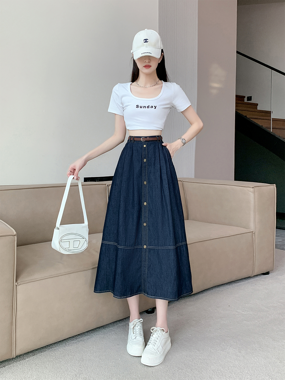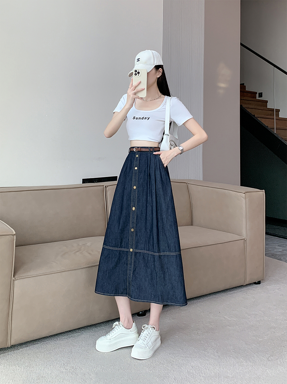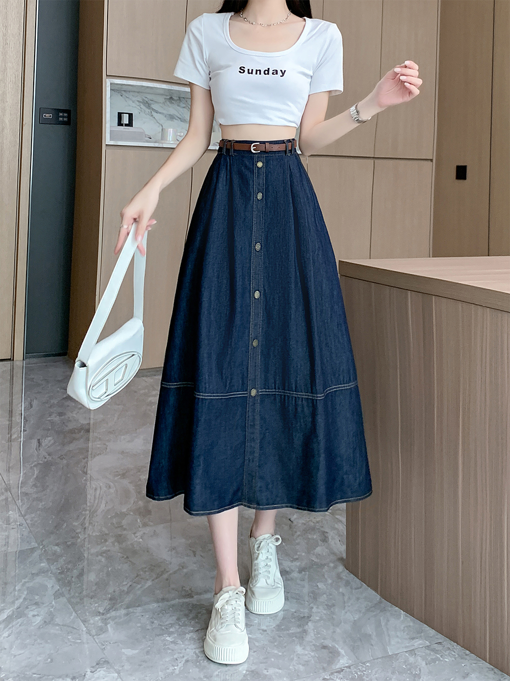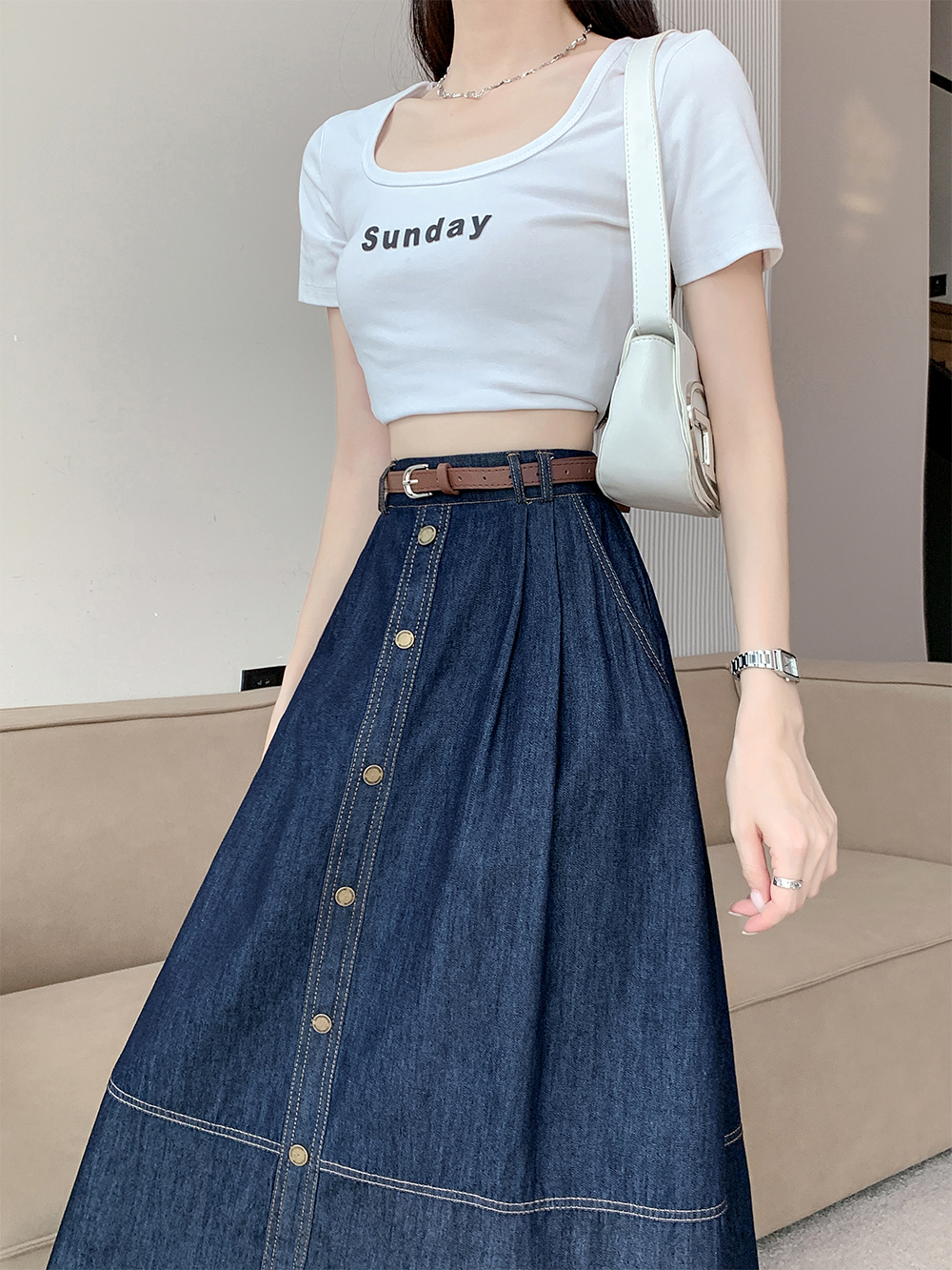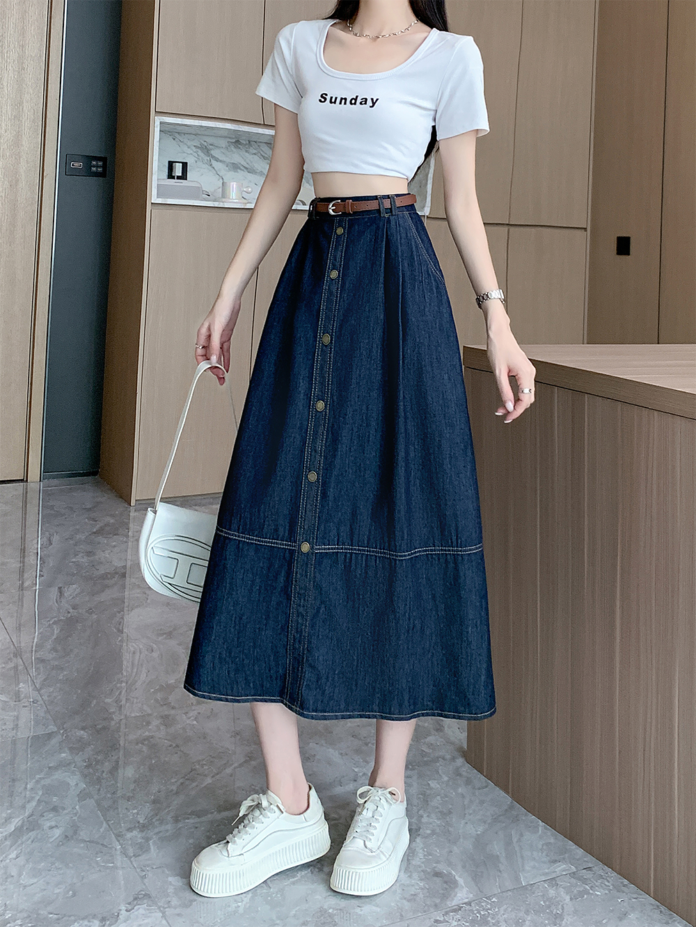 실사 빅 사이즈 여성 의류 2026 레트로 한 마디 데님 반신 스커트 하이웨이스트 슬림해 보이는 다용도 중간 길이 치마