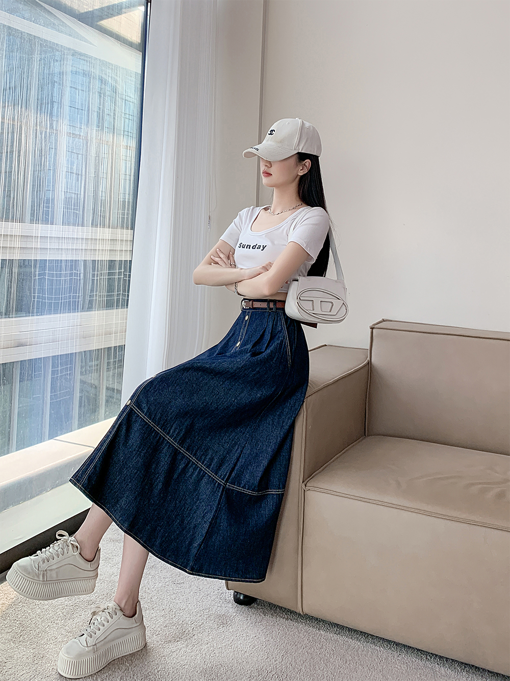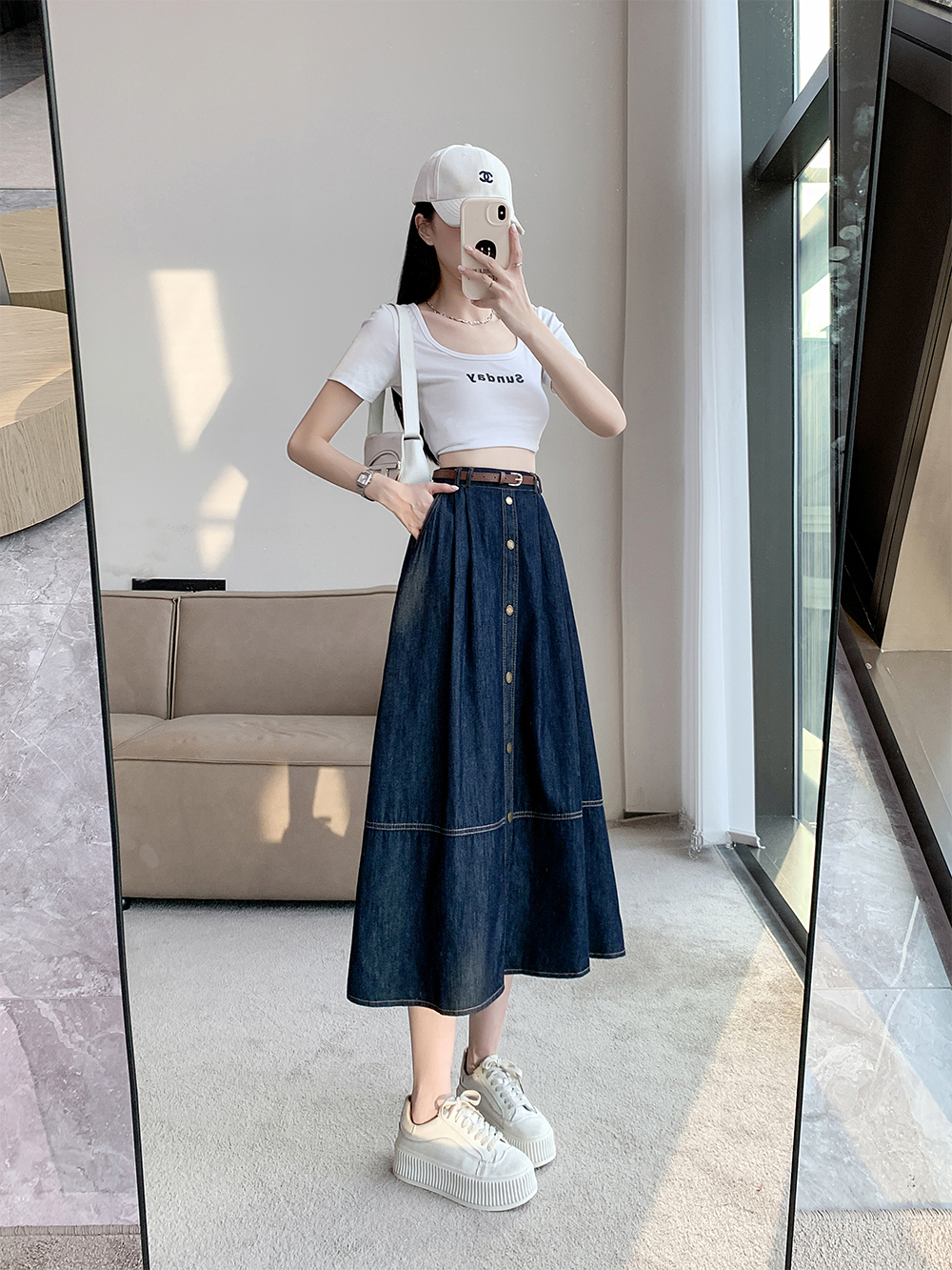 실사 빅 사이즈 여성 의류 2026 레트로 한 마디 데님 반신 스커트 하이웨이스트 슬림해 보이는 다용도 중간 길이 빅 플레어 스커트