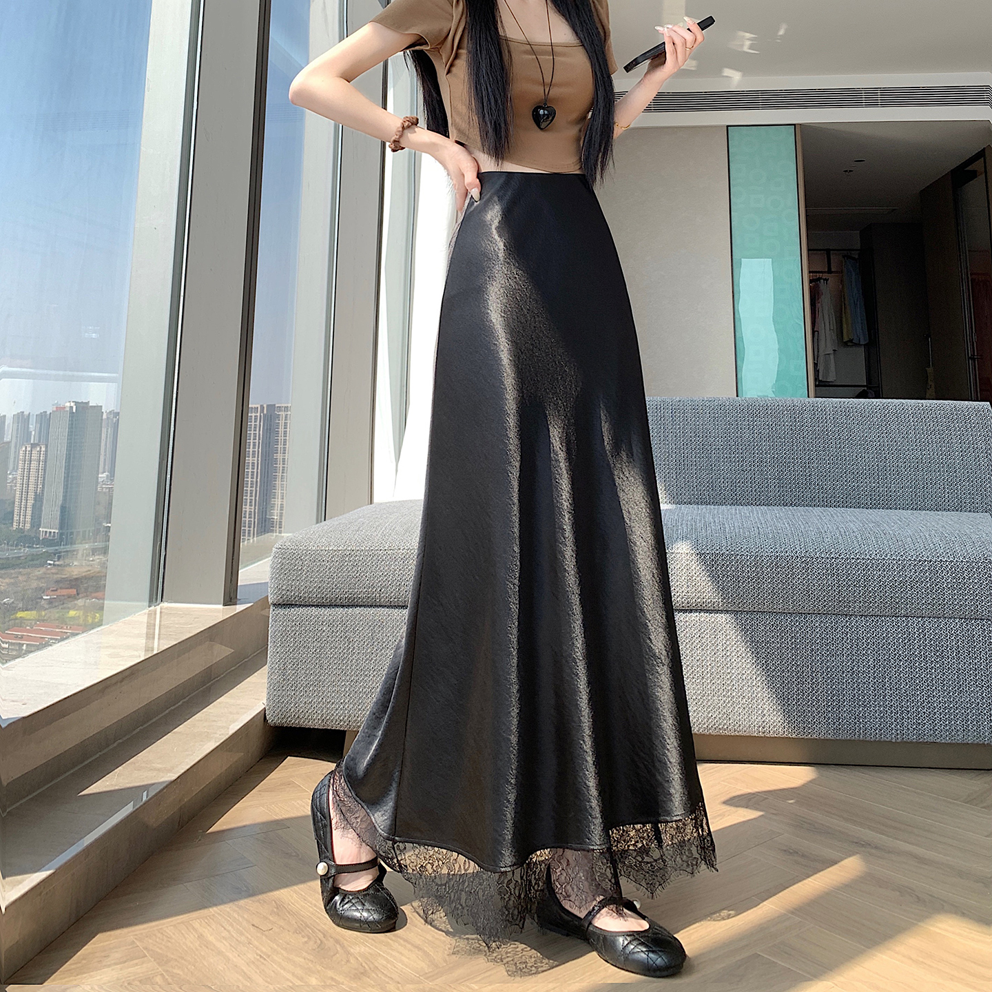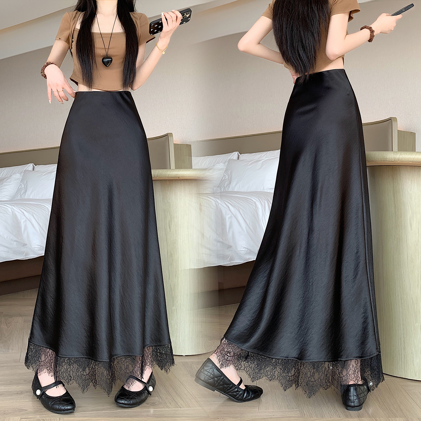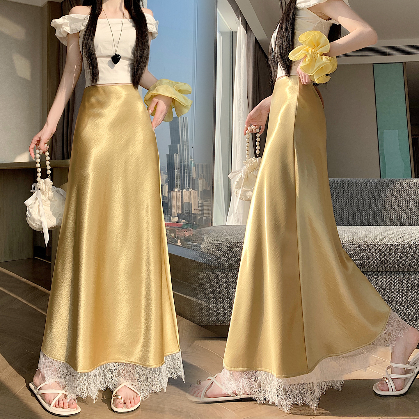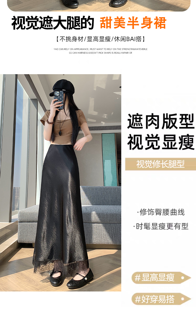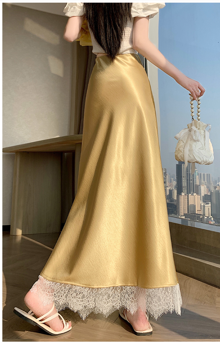 실사 2026 새로운 고급 아세트산 단조 얼굴 패치워크 레이스 프로 피부 타이트 스커트 인어 꼬리 롱 스커트 허리밴드 중간 길이 스커트
