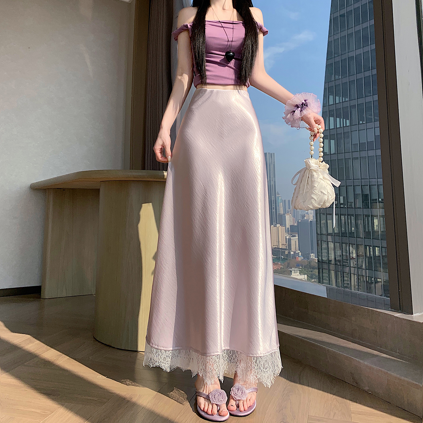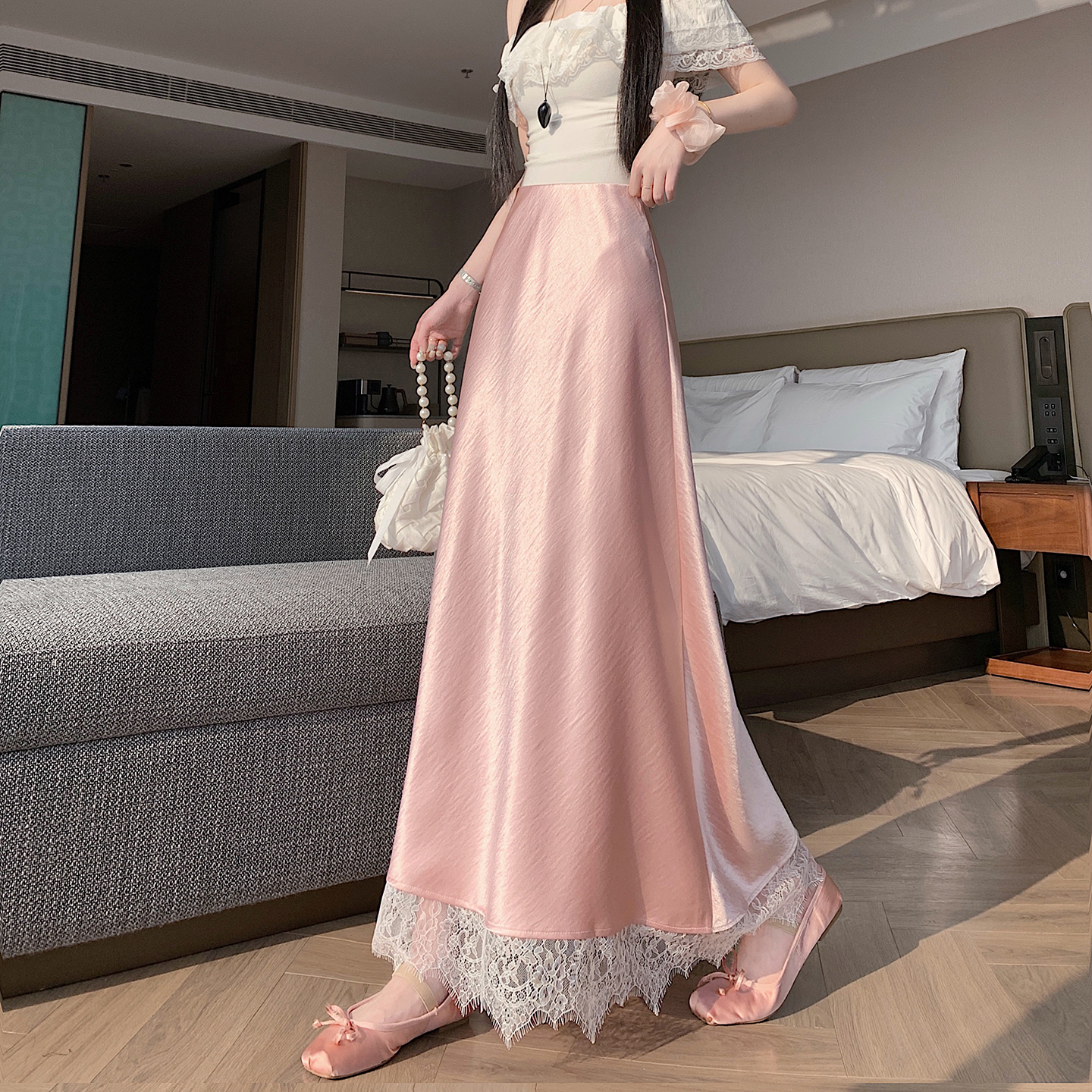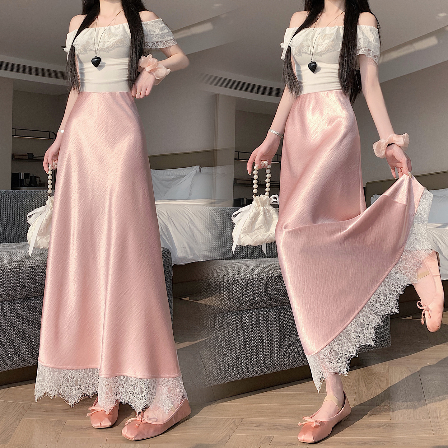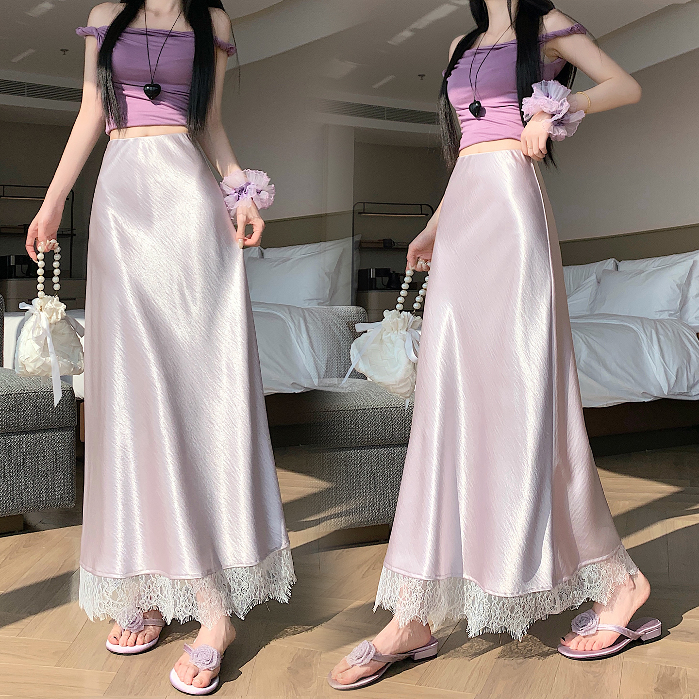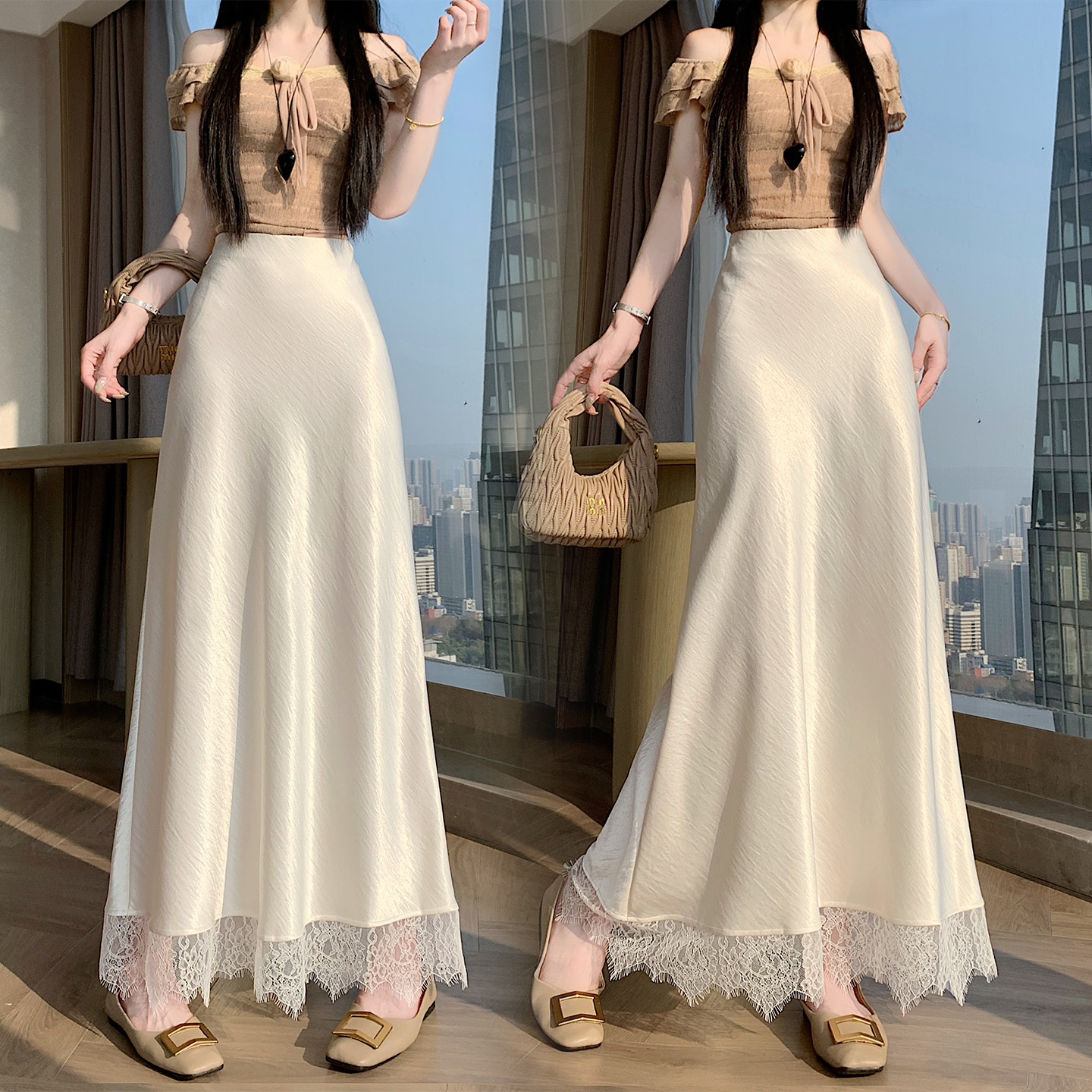 실사 2026 새로운 고급 아세트산 단조 얼굴 패치워크 레이스 프로 피부 타이트 스커트 인어 꼬리 롱 스커트 허리밴드 중간 길이 스커트