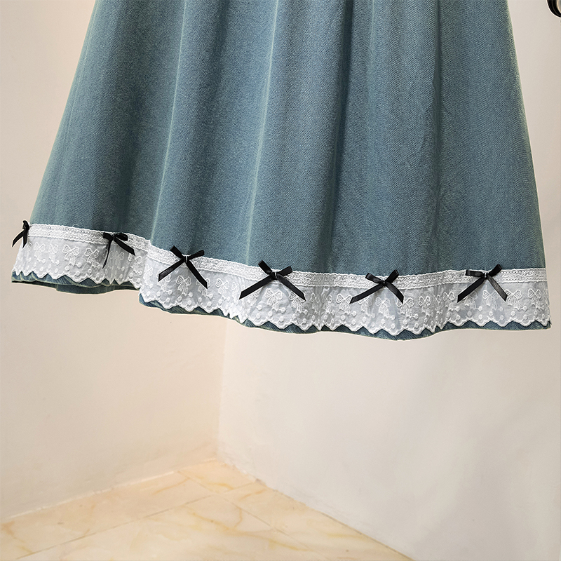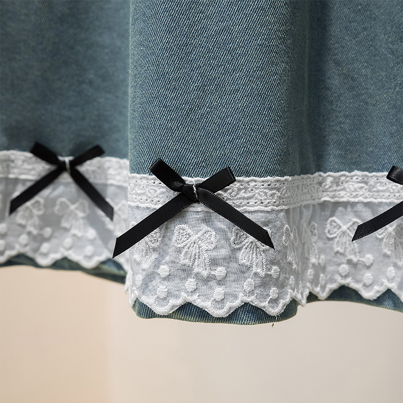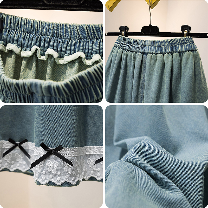 실사 빅 사이즈 여성 의류 2026 이른 봄 자수 패치워크 워시 물 데님 반신 스커트 파란색 빅 플레어 스커트