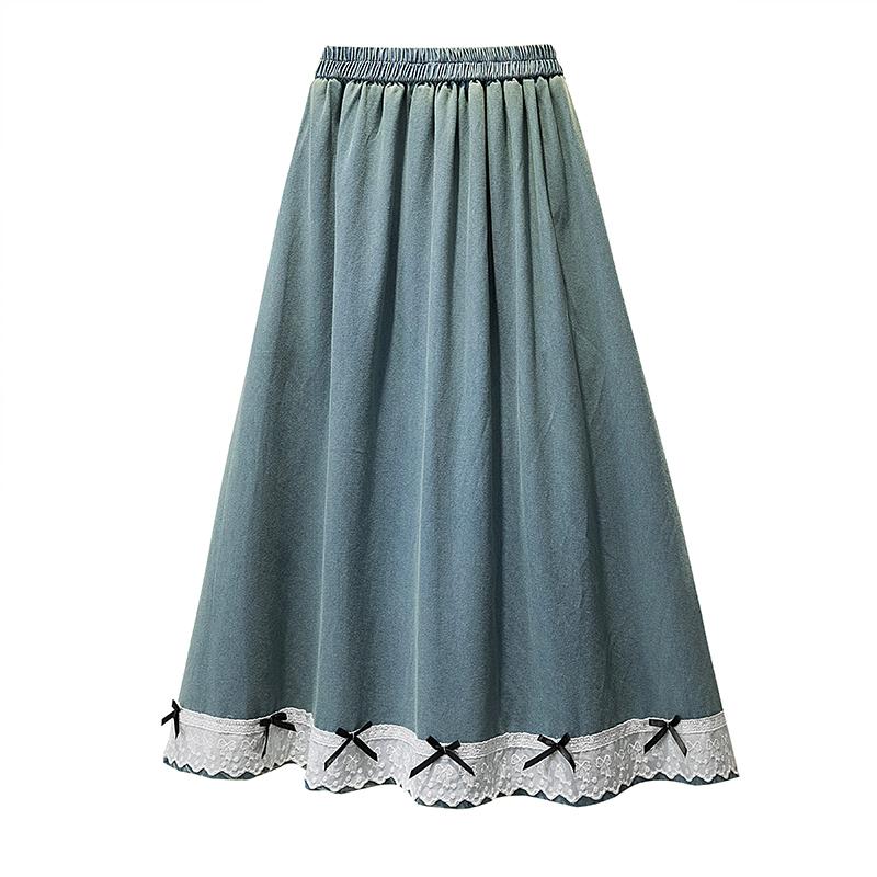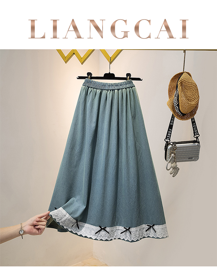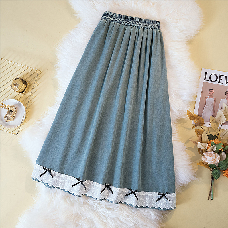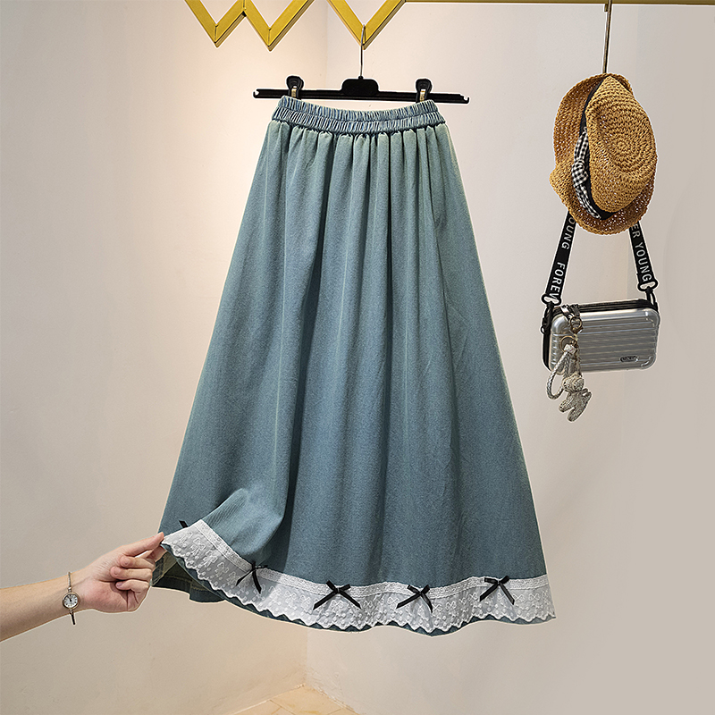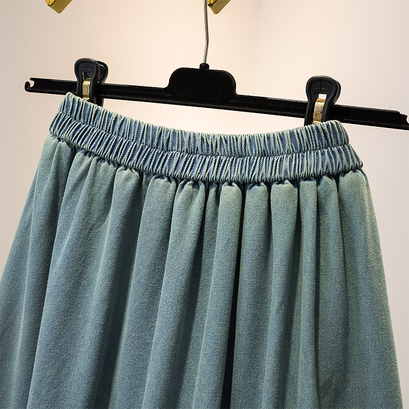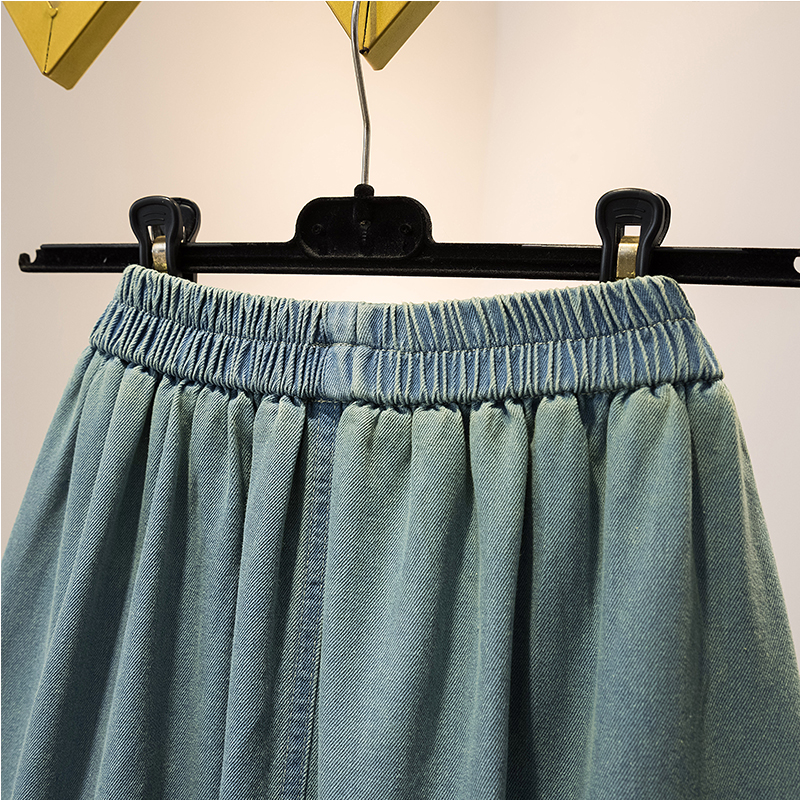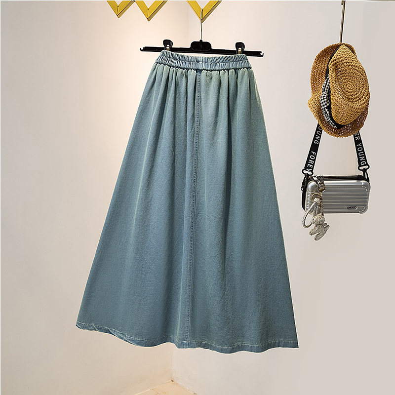 실사 빅 사이즈 여성 의류 2026 새로운 레트로 데님 롱 스커트 마이크로 지방 mm A라인 스커트 슬림해 보이는 반신 스커트