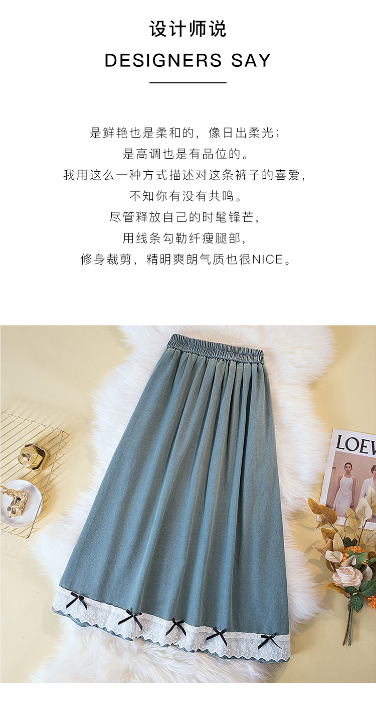 실사 빅 사이즈 여성 의류 2026 봄 한국 스타일 주간 실크 데님 반신 롱 스커트 마이크로 지방 mm 슬림해 보이는 빅 플레어 스커트