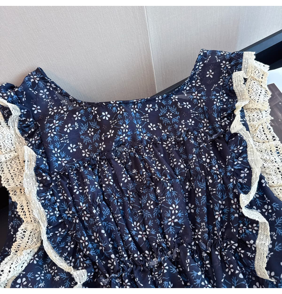 실사 한 부서 디자인 센스 꽃무늬 민소매 레이스 레이스 패치워크 여성 셔츠 루즈핏 다용도 맨위