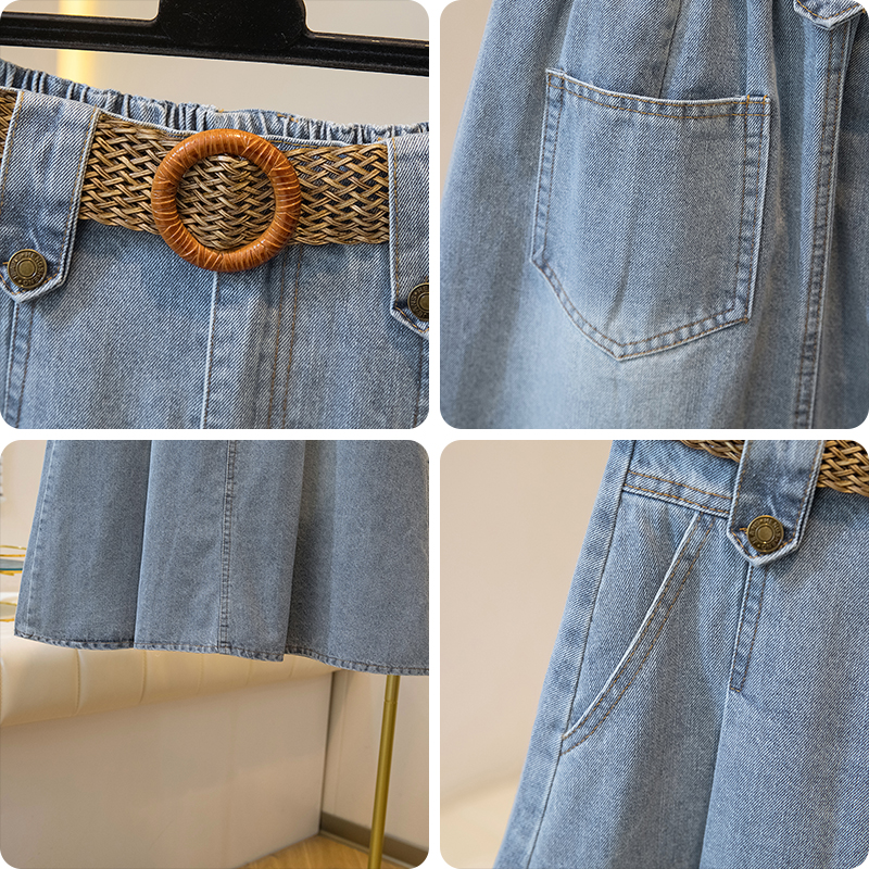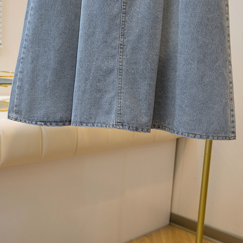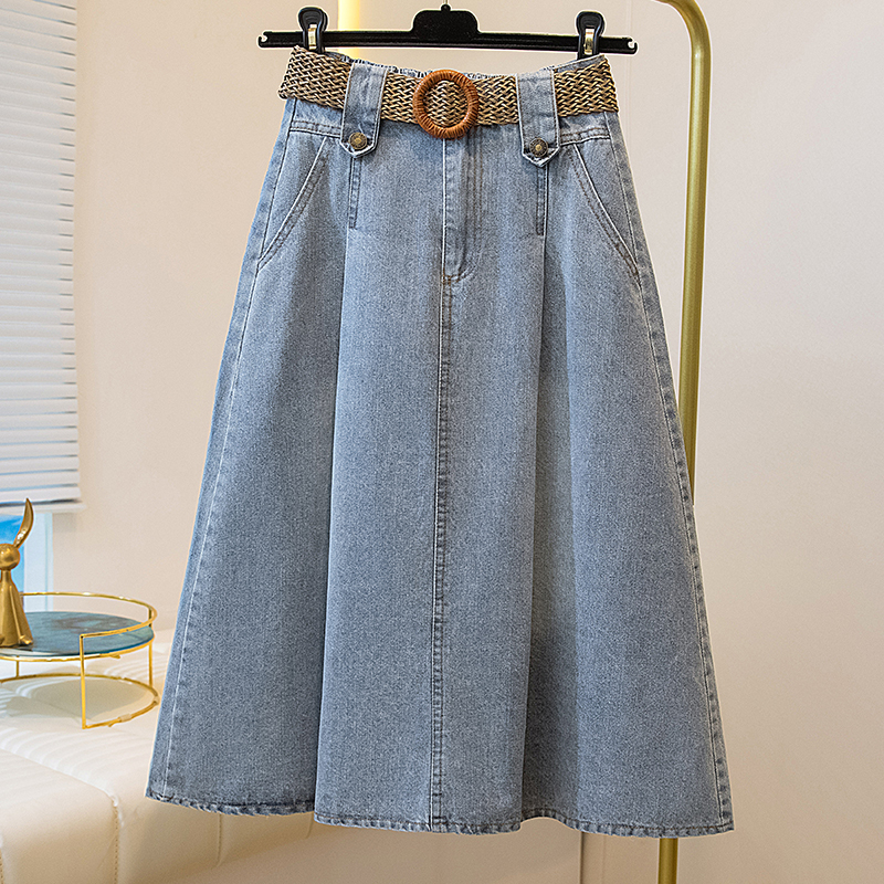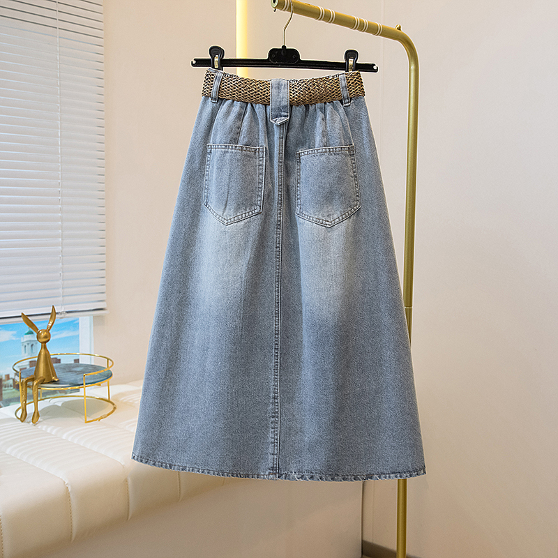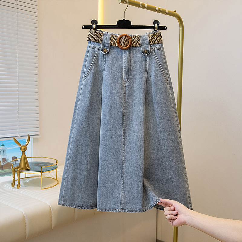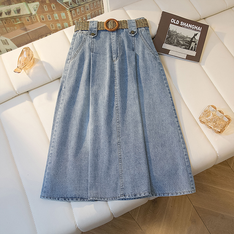 실사 빅 사이즈 여성 의류 2026 새로운 레트로 데님 롱 스커트 마이크로 지방 mm A라인 스커트 슬림해 보이는 반신 스커트