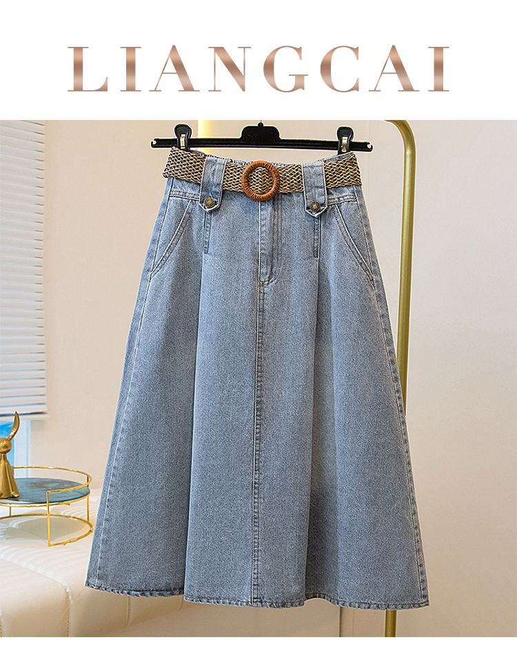 2026 봄 새로운 빅 사이즈 여성 의류 레트로 한 마디 데님 반신 스커트 하이웨이스트 슬림해 보이는 다용도 치마 여성