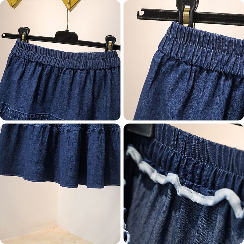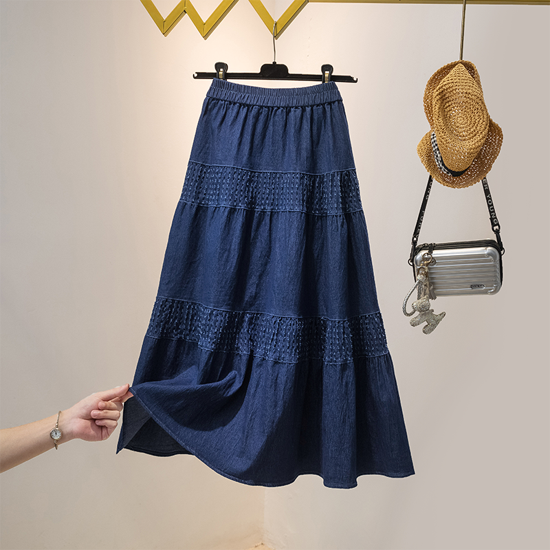 실사 빅 사이즈 여성 의류 2026 새로운 레트로 데님 롱 스커트 마이크로 지방 mm A라인 스커트 슬림해 보이는 반신 스커트