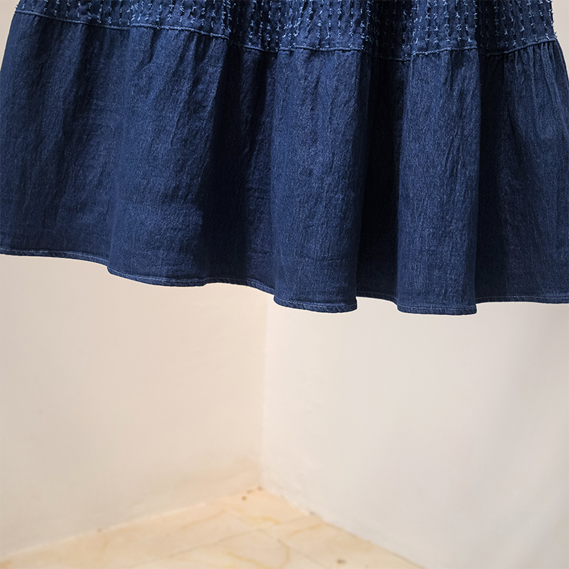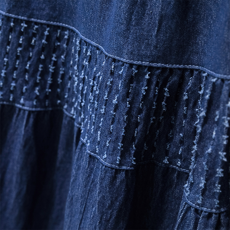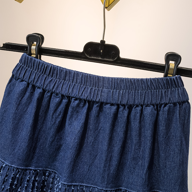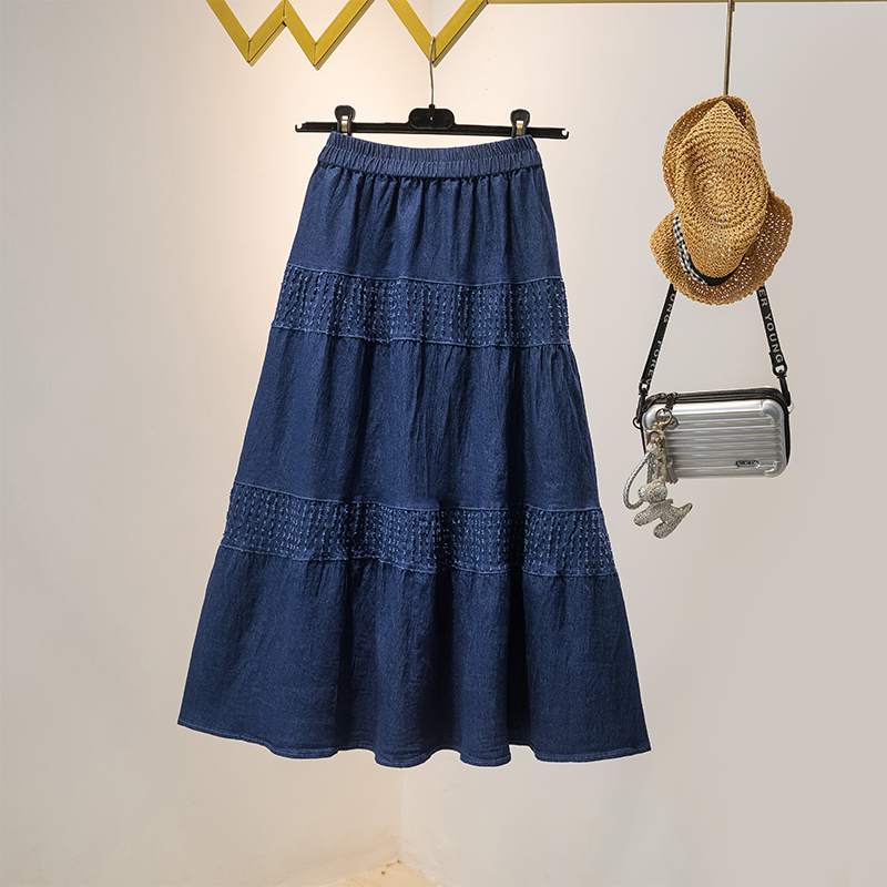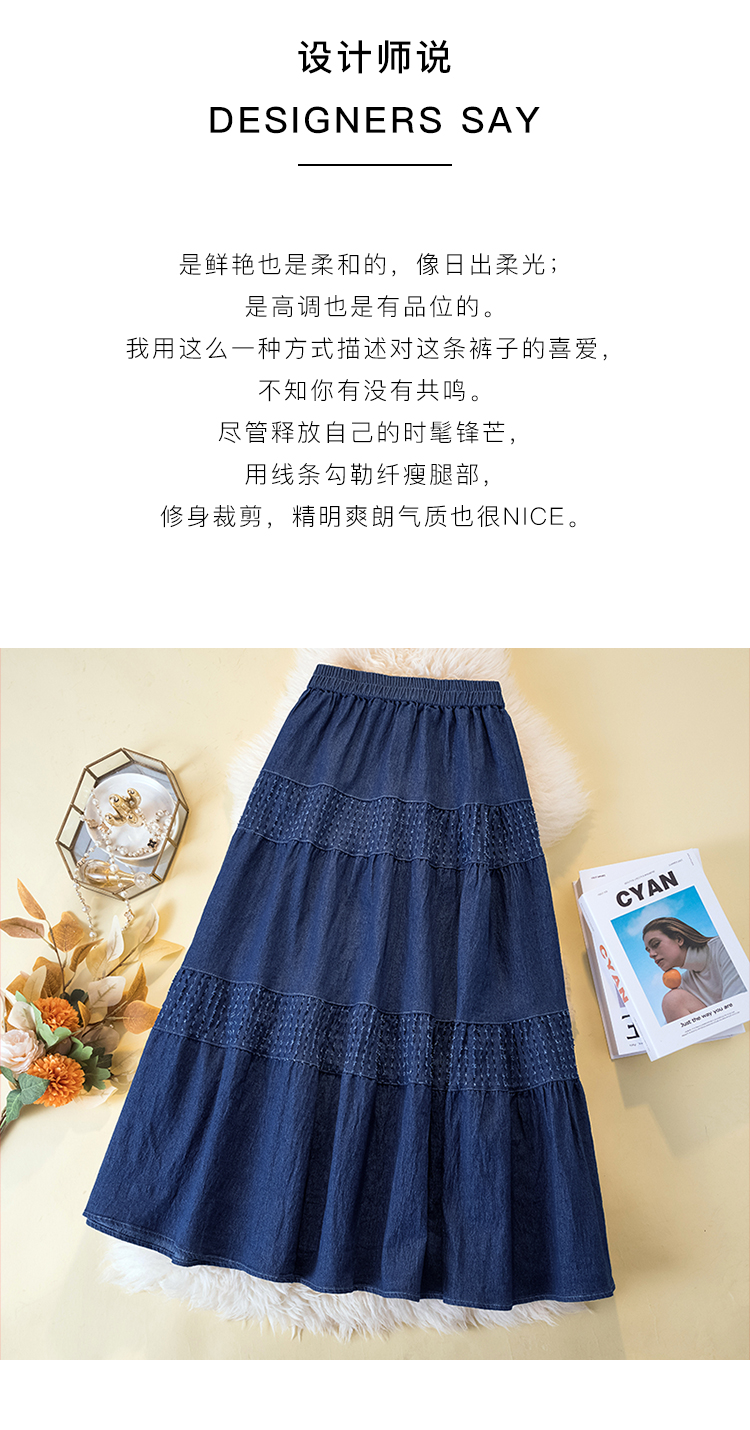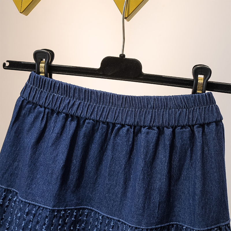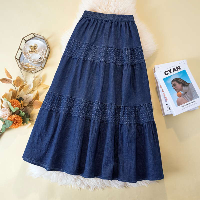 실사 빅 사이즈 여성 의류 2026 이른 봄 자수 패치워크 워시 물 데님 반신 스커트 파란색 빅 플레어 스커트