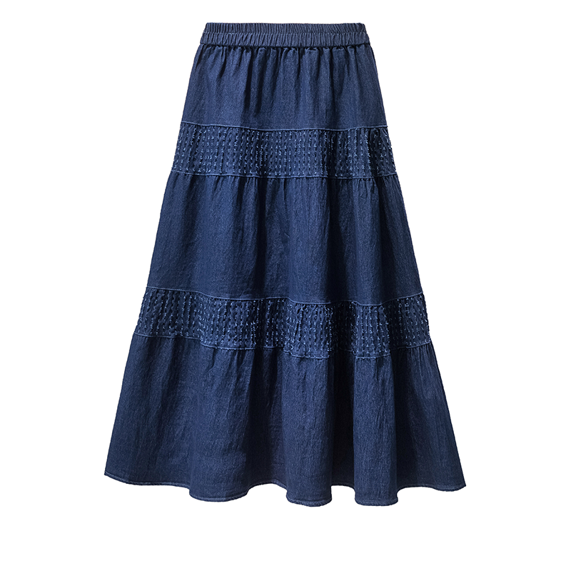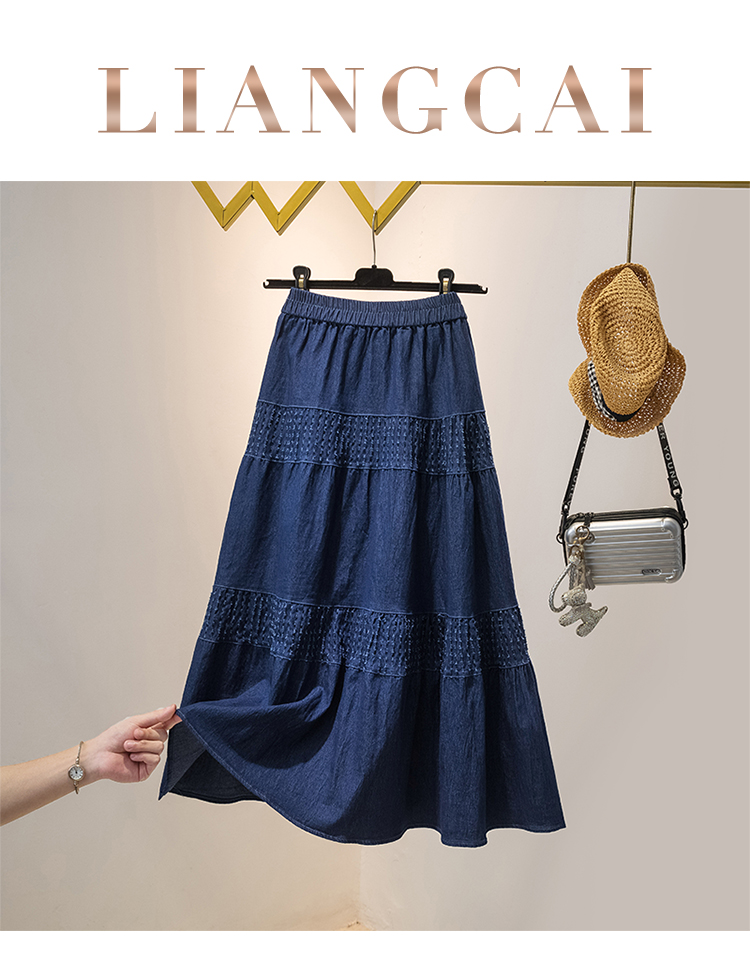 실사 빅 사이즈 여성 의류 2026 봄 한국 스타일 주간 실크 데님 반신 롱 스커트 마이크로 지방 mm 슬림해 보이는 빅 플레어 스커트