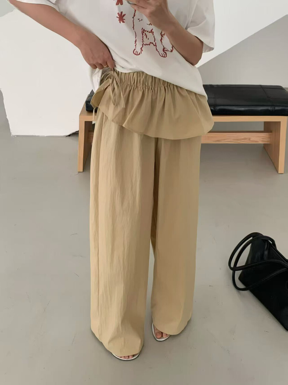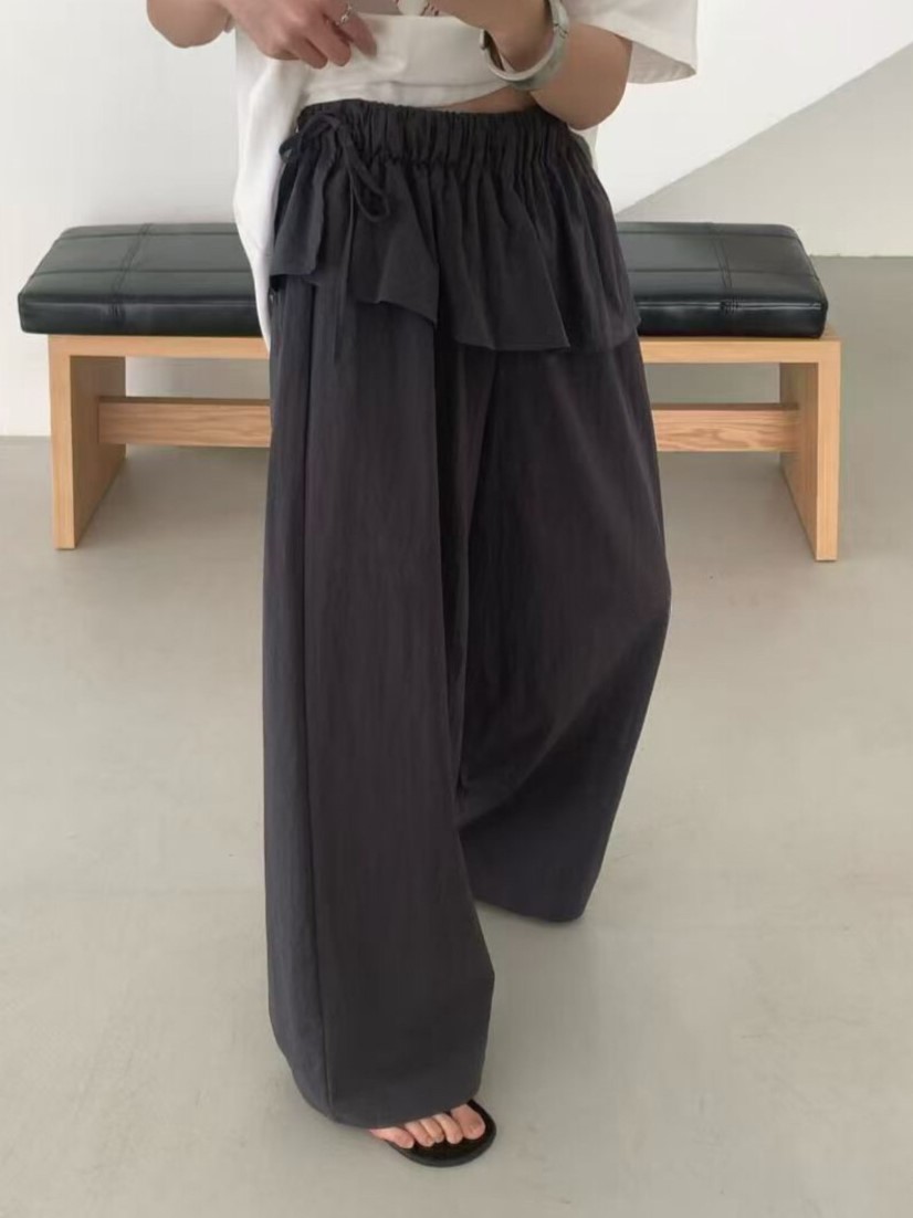 여름 켜기 새로운 미니멀리즘 단색 펌프 로프 하이웨이스트 루즈핏 와이드 레그 팬츠 캐주얼 바지