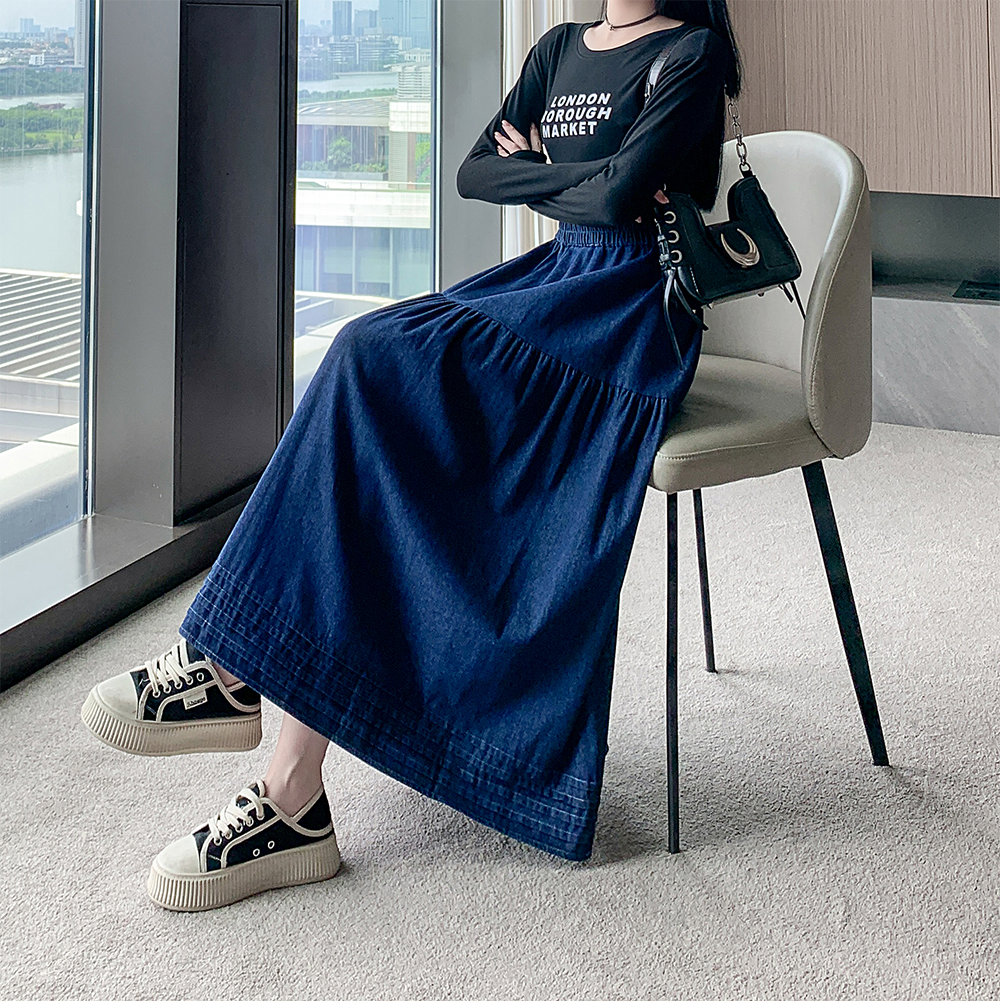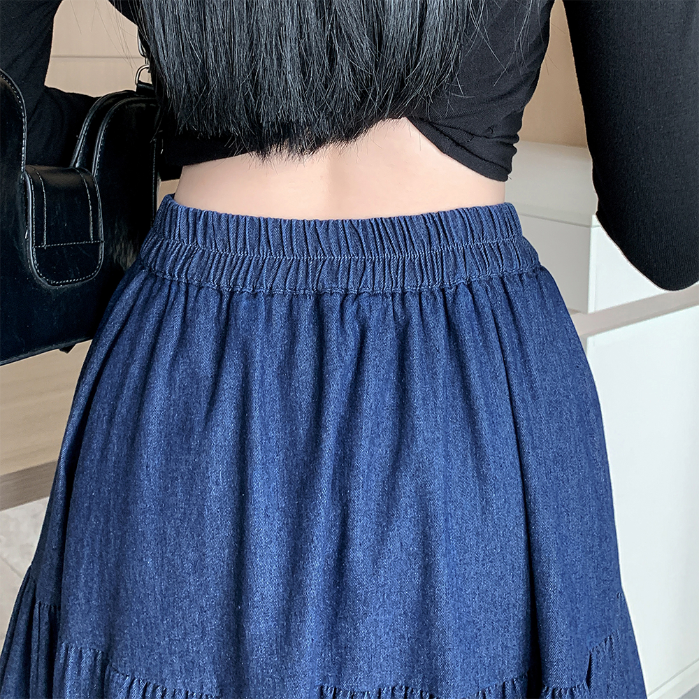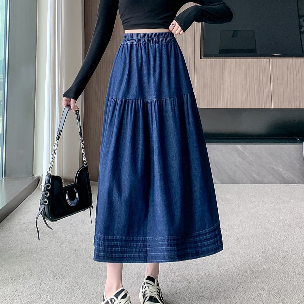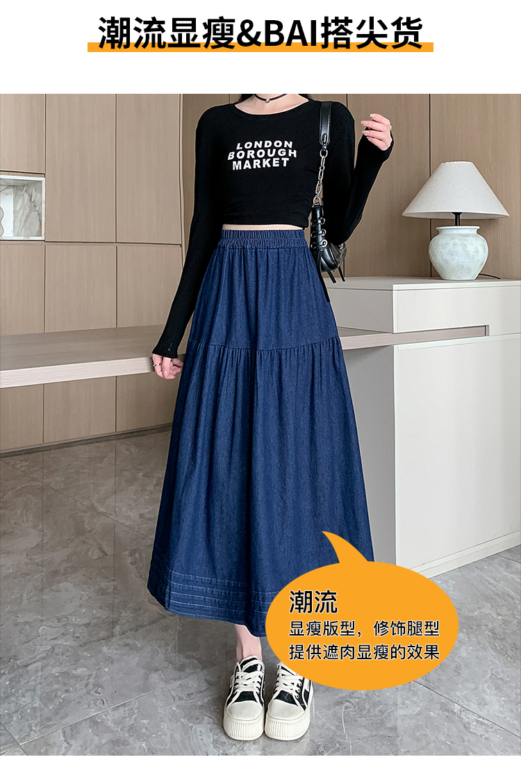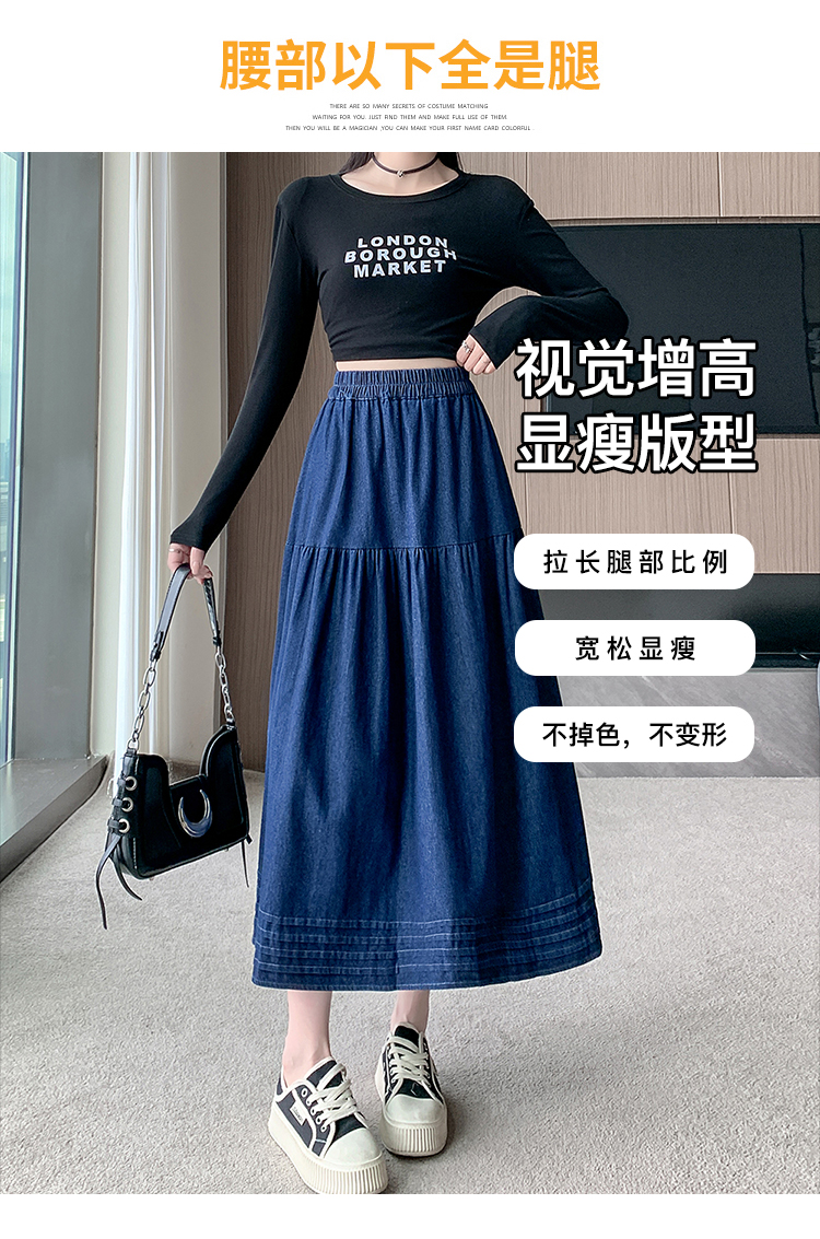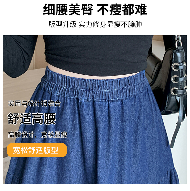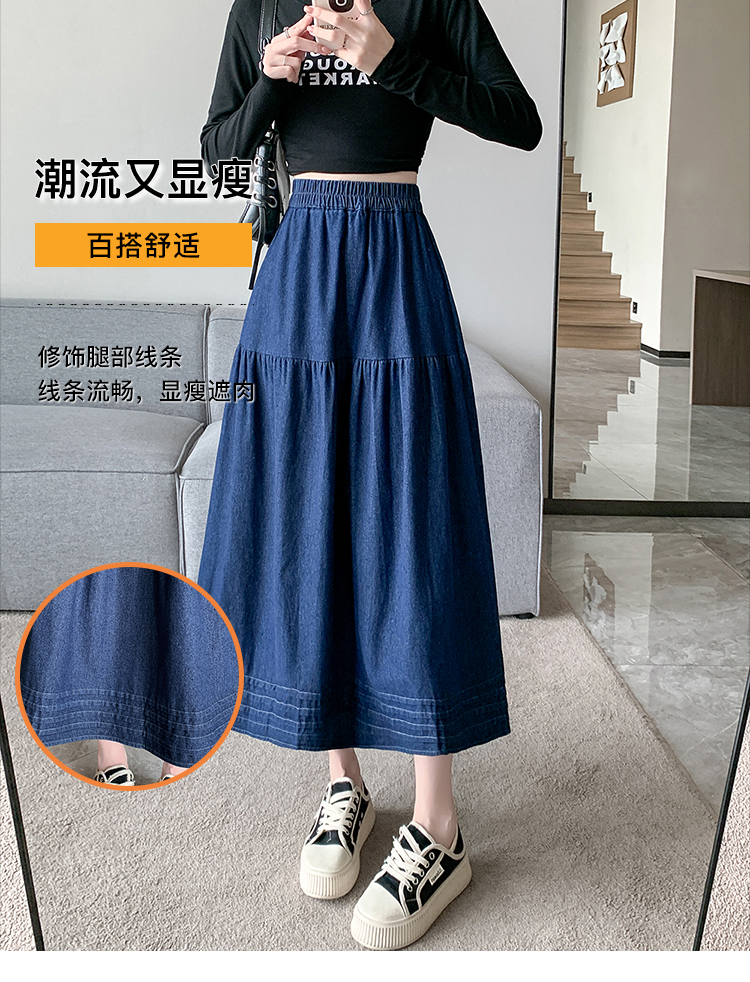 실사 빅 사이즈 여성 의류 2026 새로운 레트로 데님 롱 스커트 마이크로 지방 mm A라인 스커트 슬림해 보이는 반신 스커트