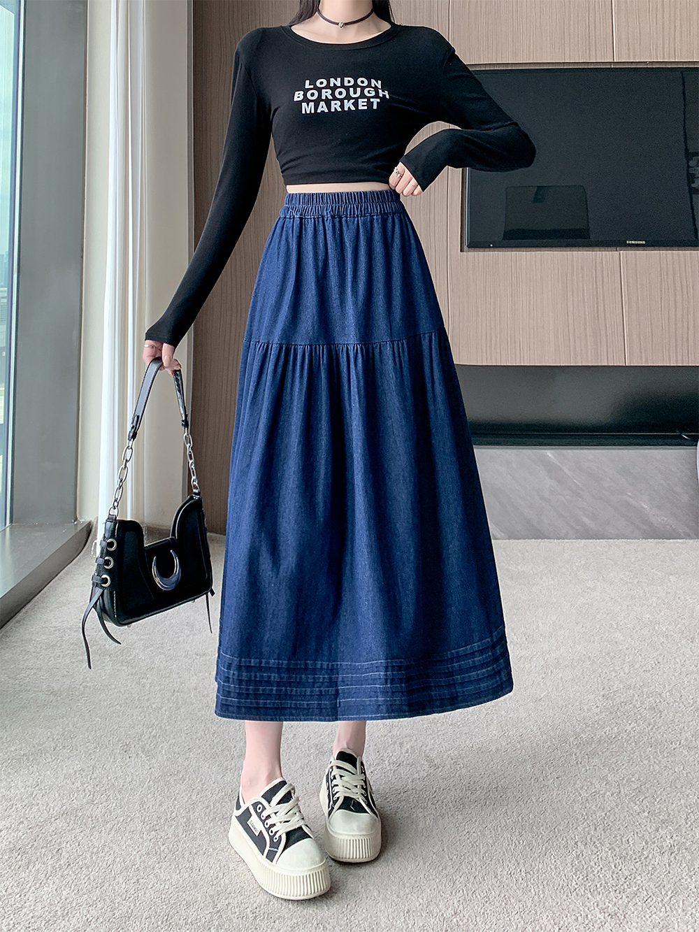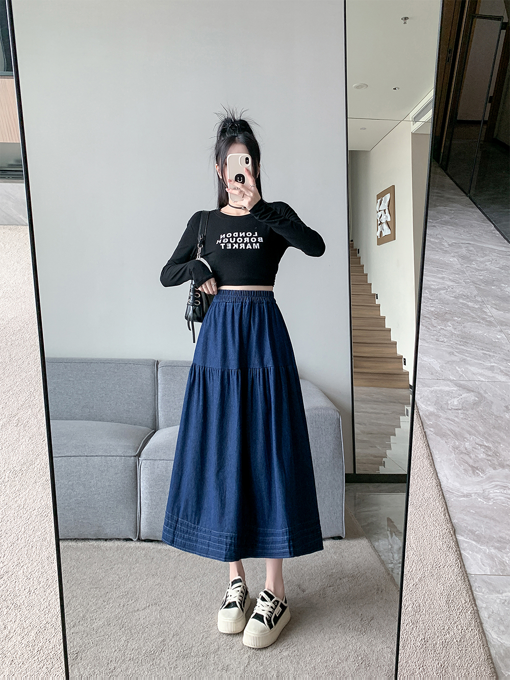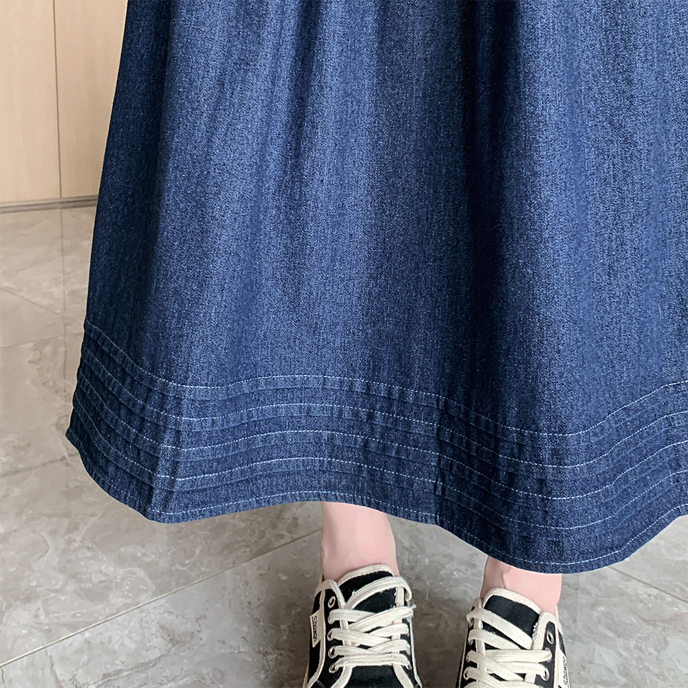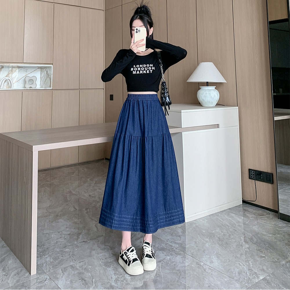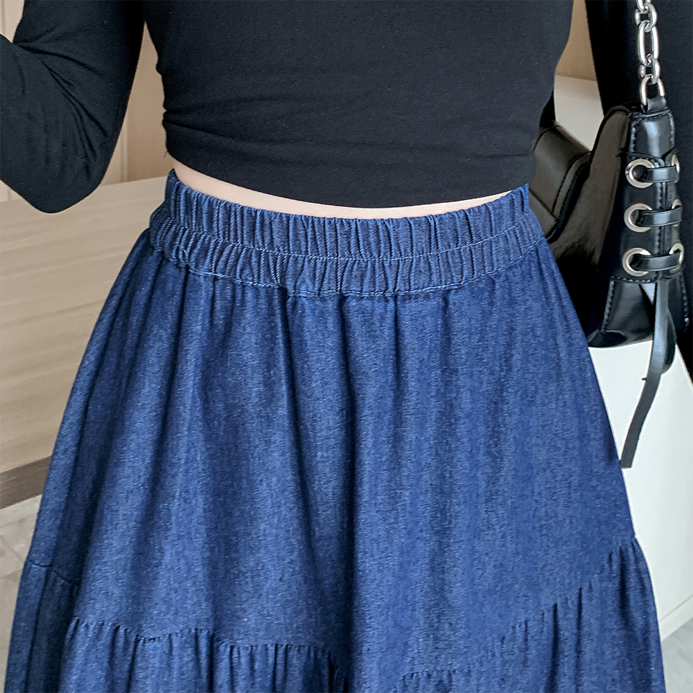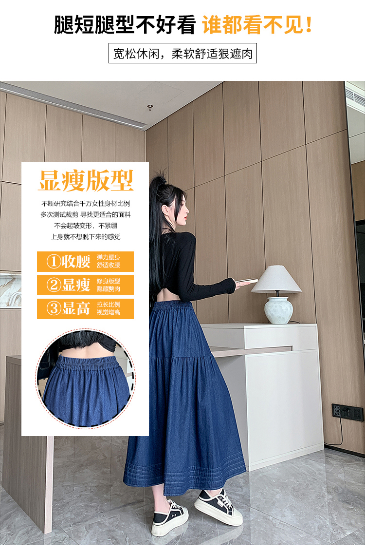 실사 빅 사이즈 여성 의류 2026 새로운 레트로 데님 롱 스커트 마이크로 지방 mm A라인 스커트 슬림해 보이는 반신 스커트