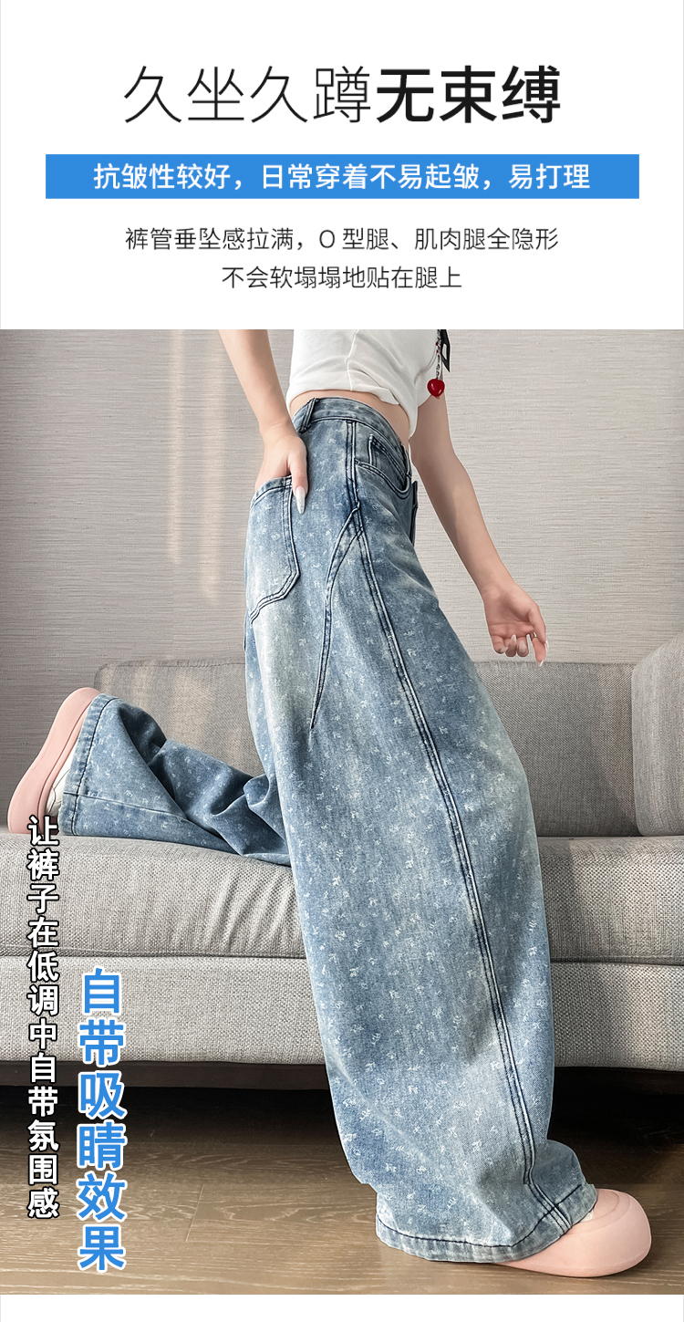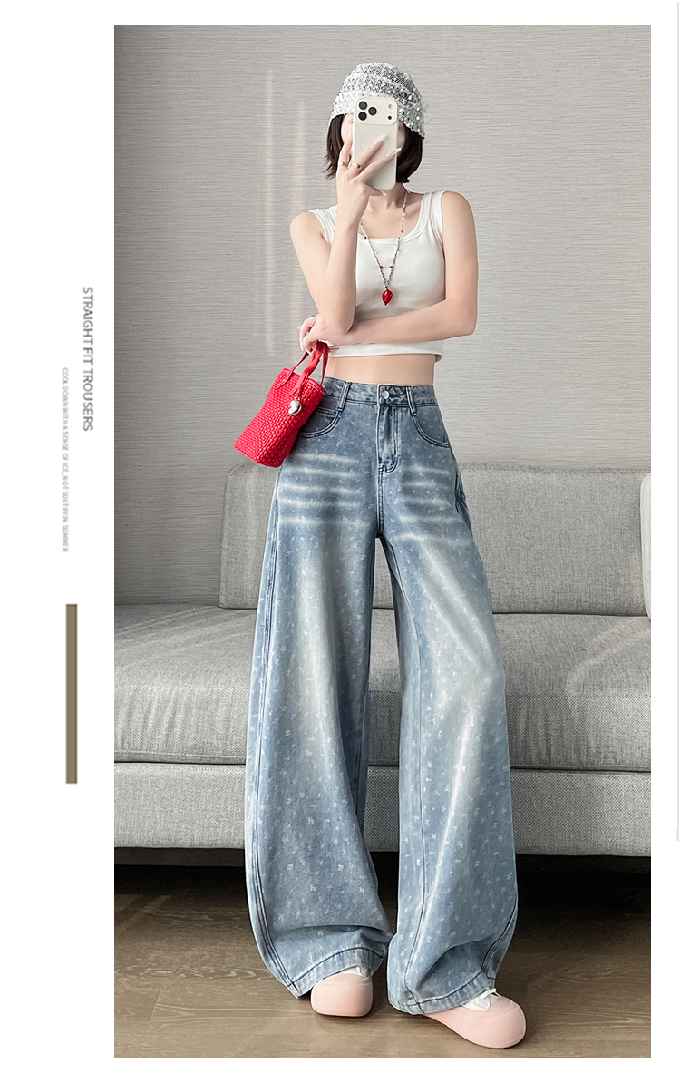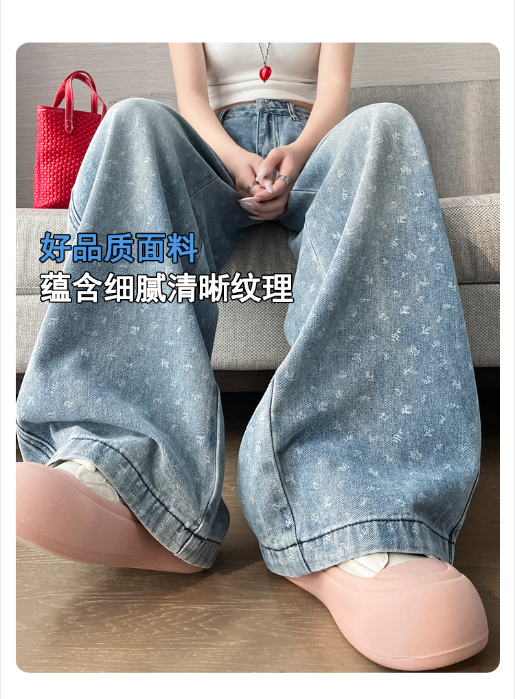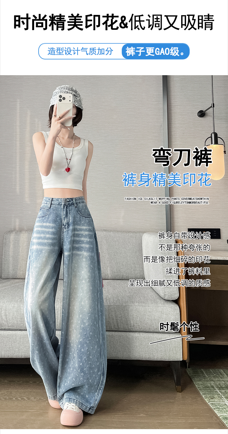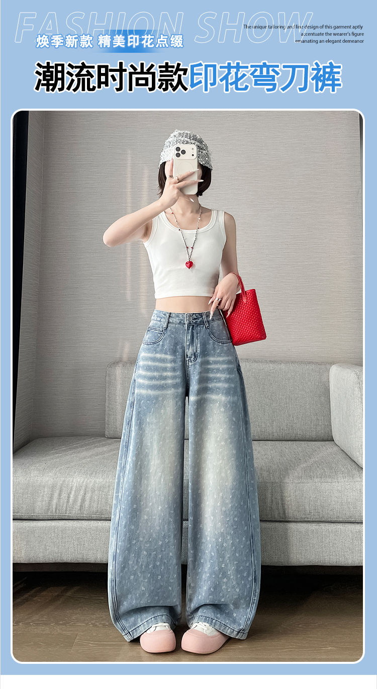 실사 디자인 센스 프린트 청바지 2026 봄 여름 루즈핏 슬림해 보이는 모통이 칼 와이드 레그 팬츠 하이웨이스트 다용도 긴 바지