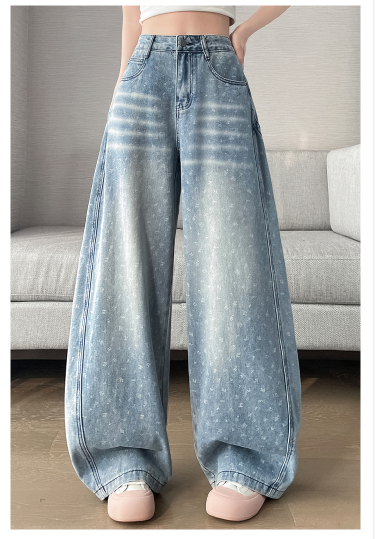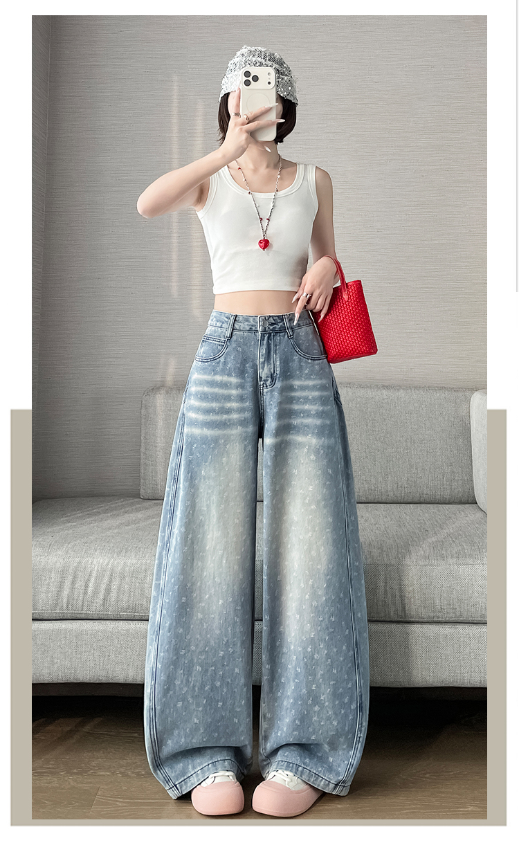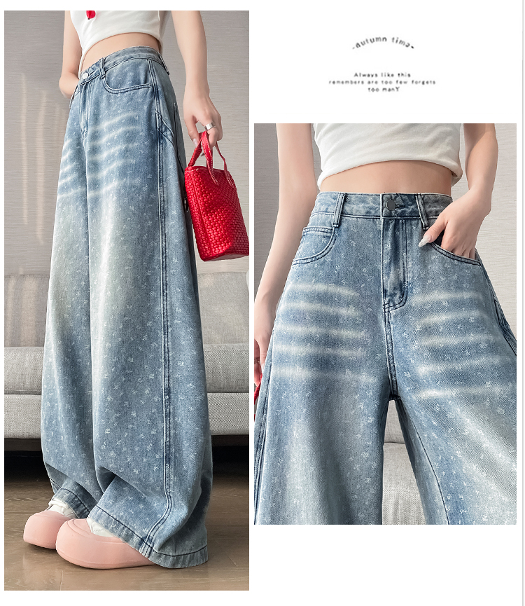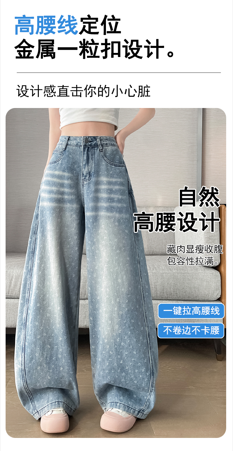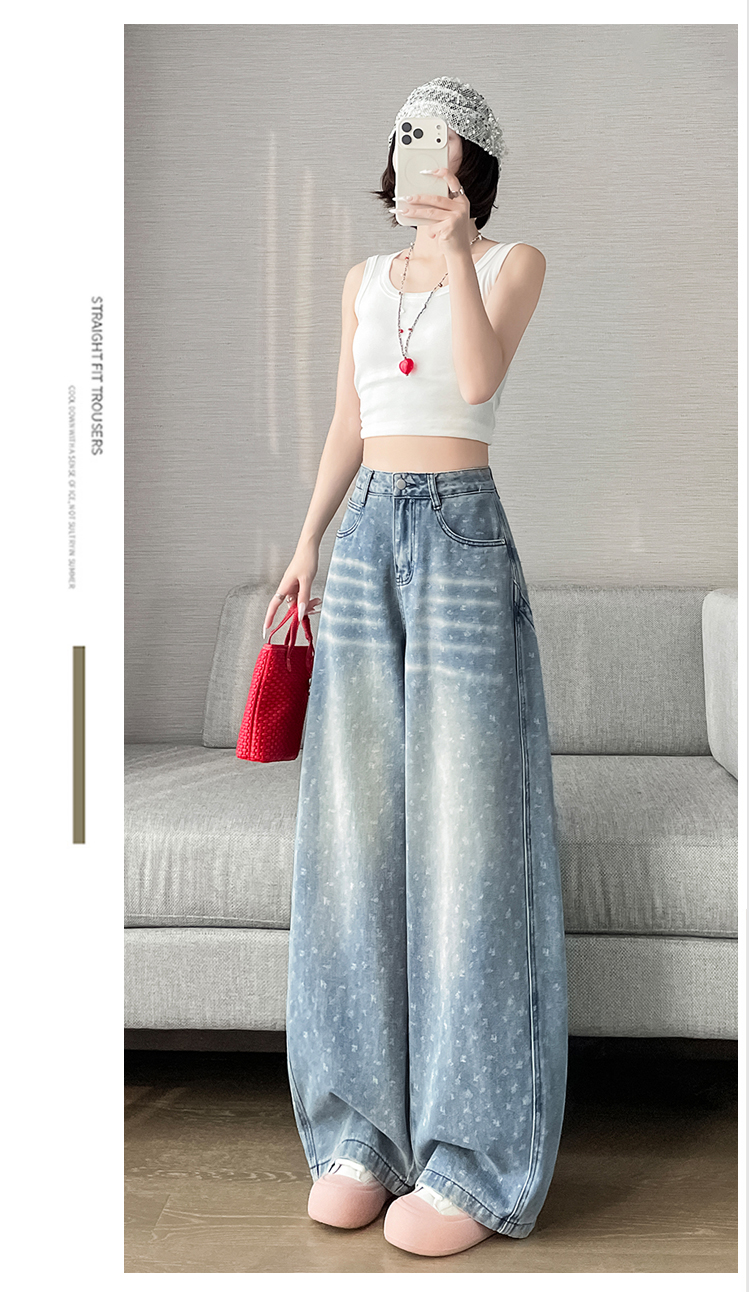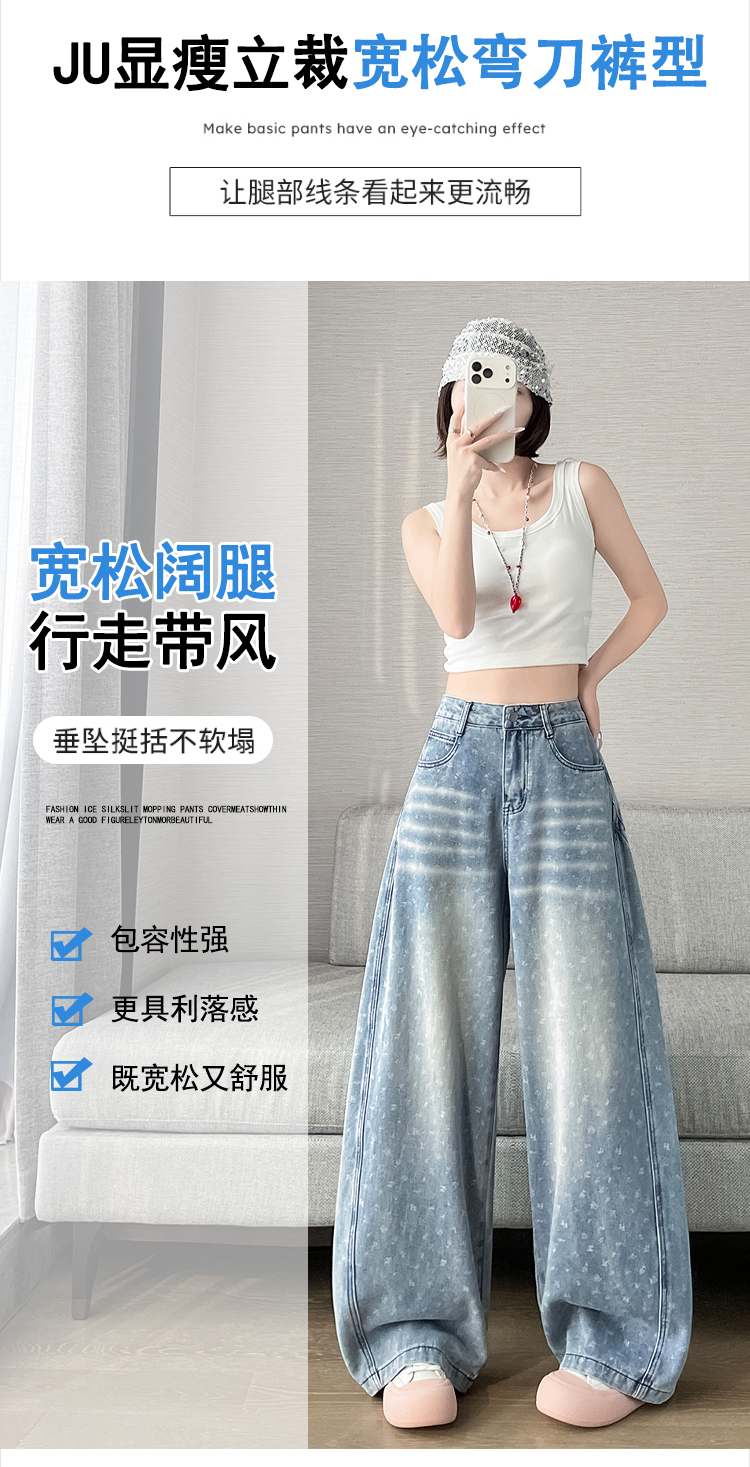 실사 디자인 센스 프린트 청바지 2026 봄 여름 루즈핏 슬림해 보이는 모통이 칼 와이드 레그 팬츠 하이웨이스트 다용도 긴 바지