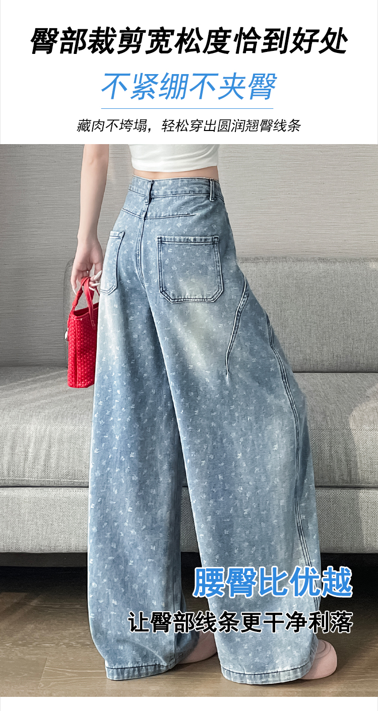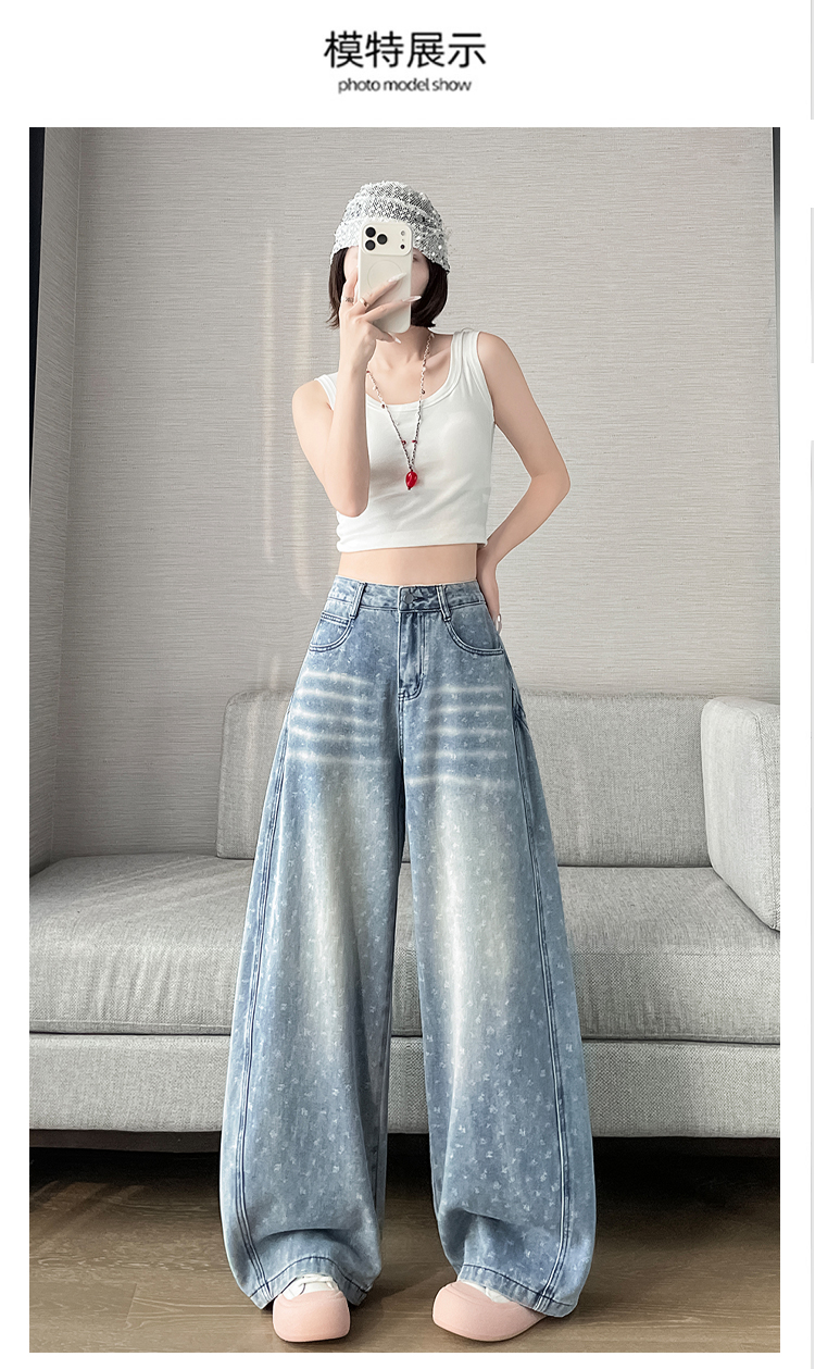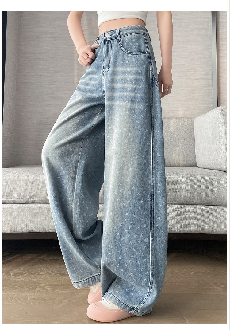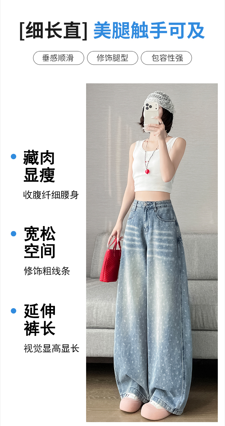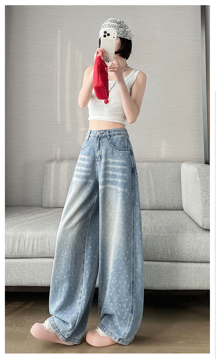 실사 디자인 센스 프린트 청바지 2026 봄 여름 루즈핏 슬림해 보이는 모통이 칼 와이드 레그 팬츠 하이웨이스트 다용도 긴 바지