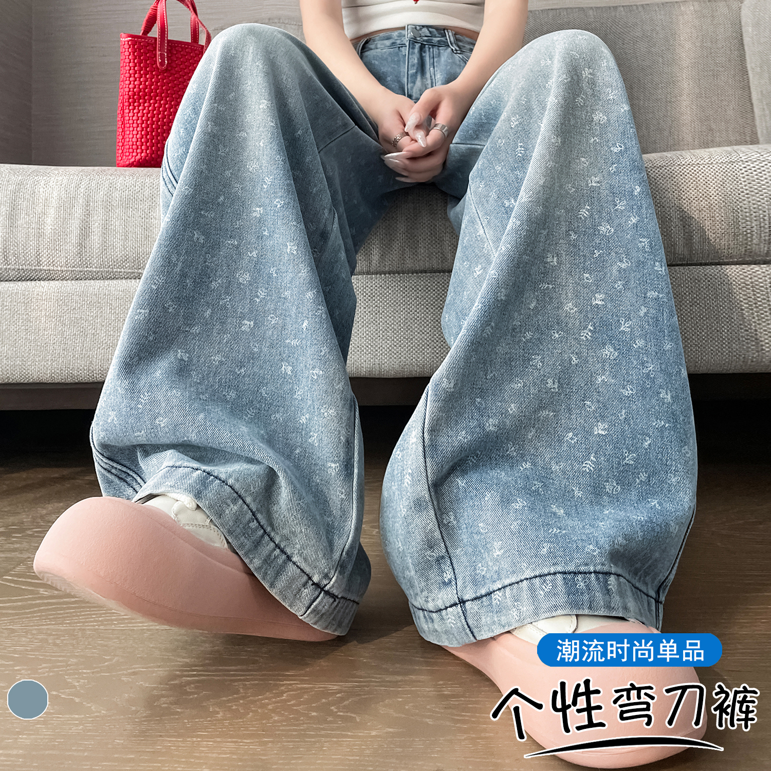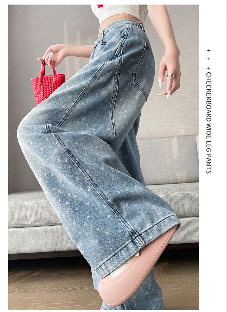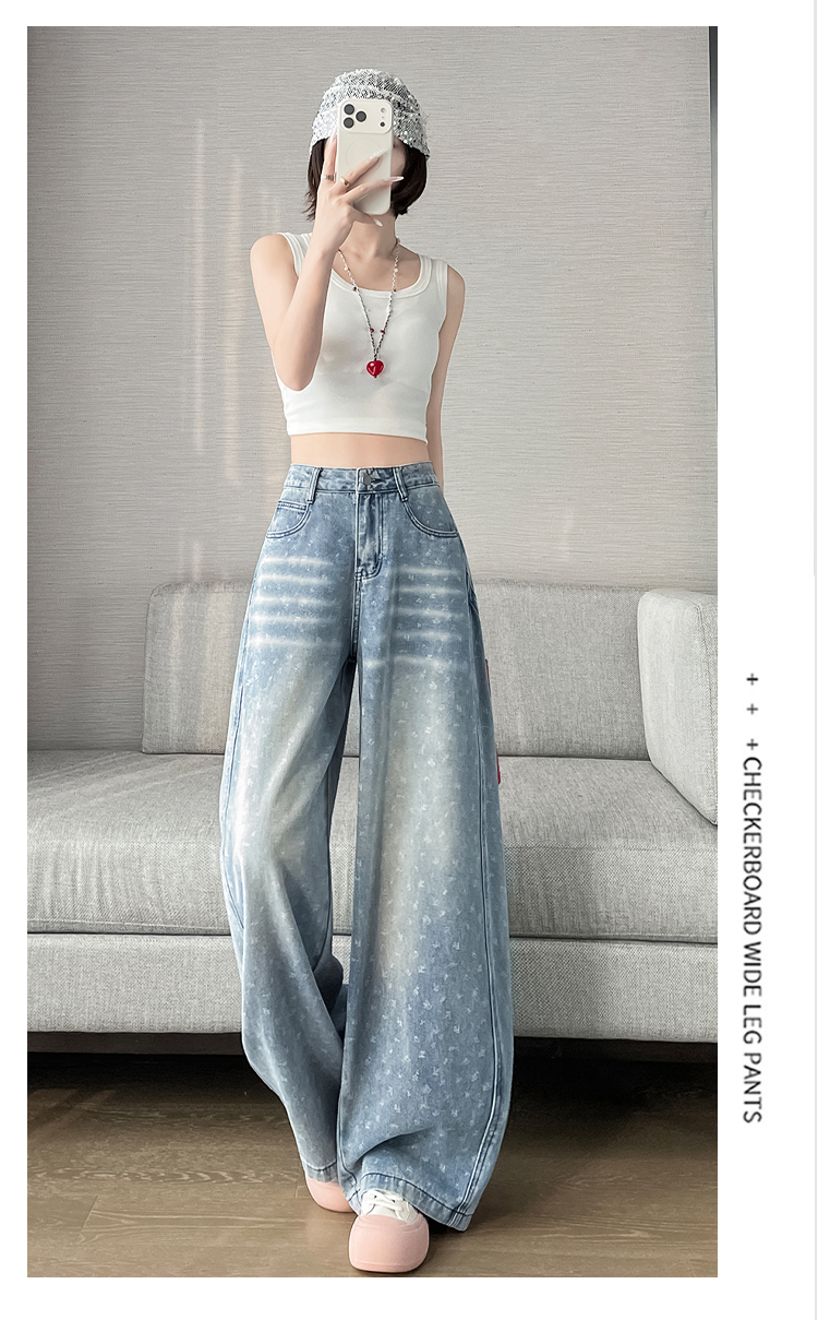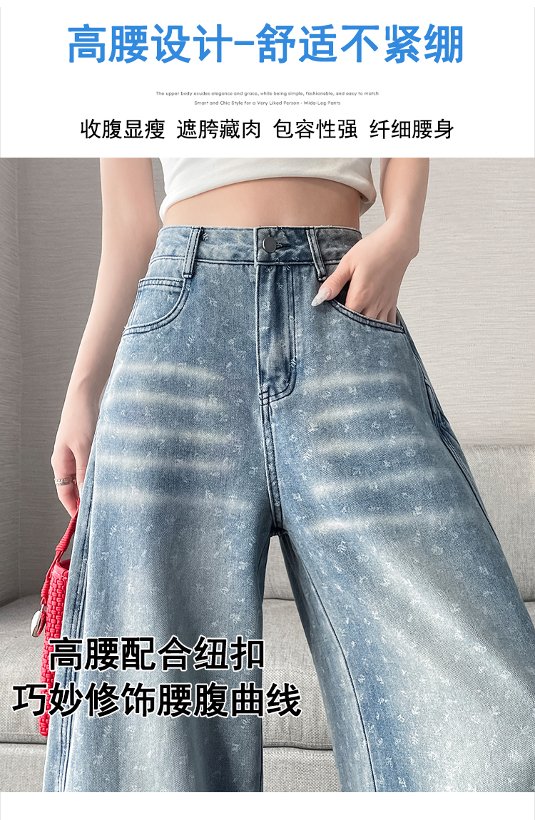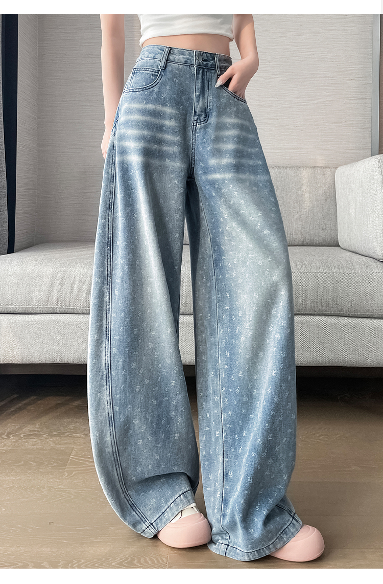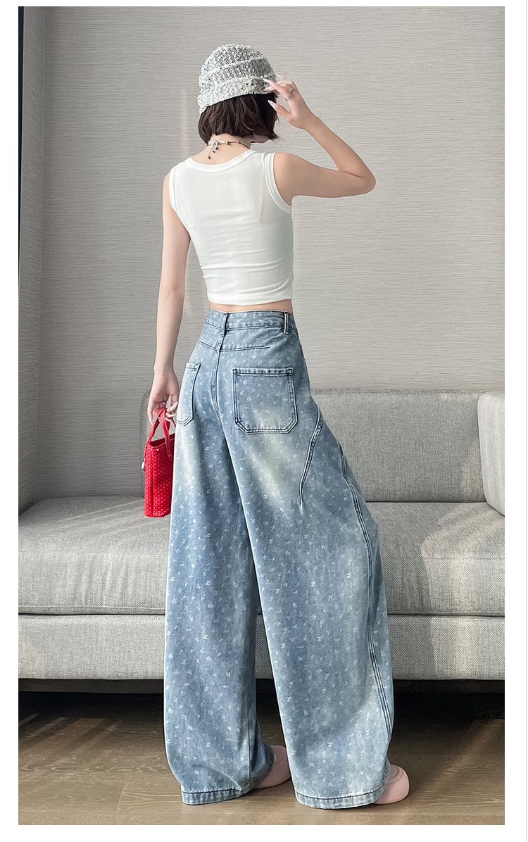 실사 디자인 센스 프린트 청바지 2026 봄 여름 루즈핏 슬림해 보이는 모통이 칼 와이드 레그 팬츠 하이웨이스트 다용도 긴 바지