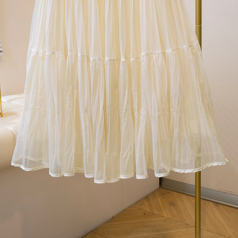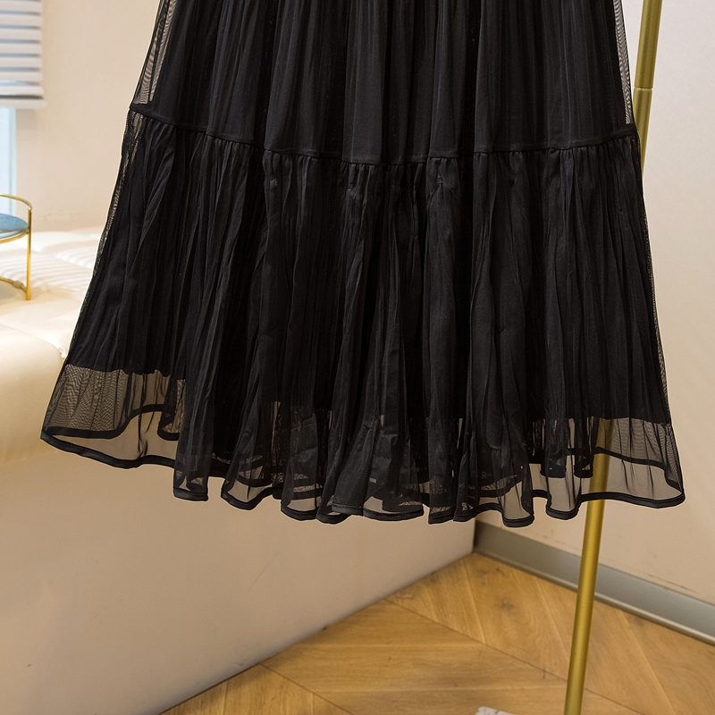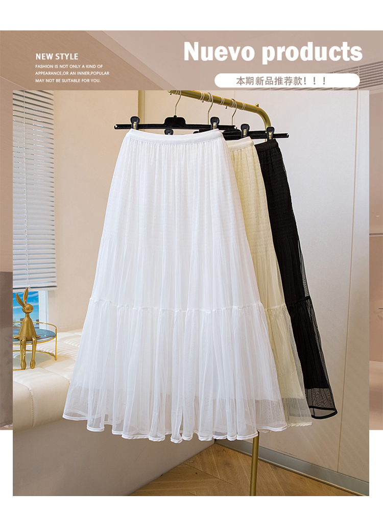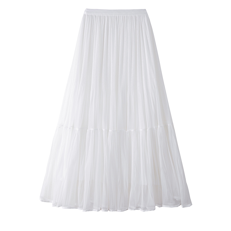 실사 여름 새로운 망사 패치워크 퍼프 스커트 빅 사이즈 여성 의류 반신 스커트