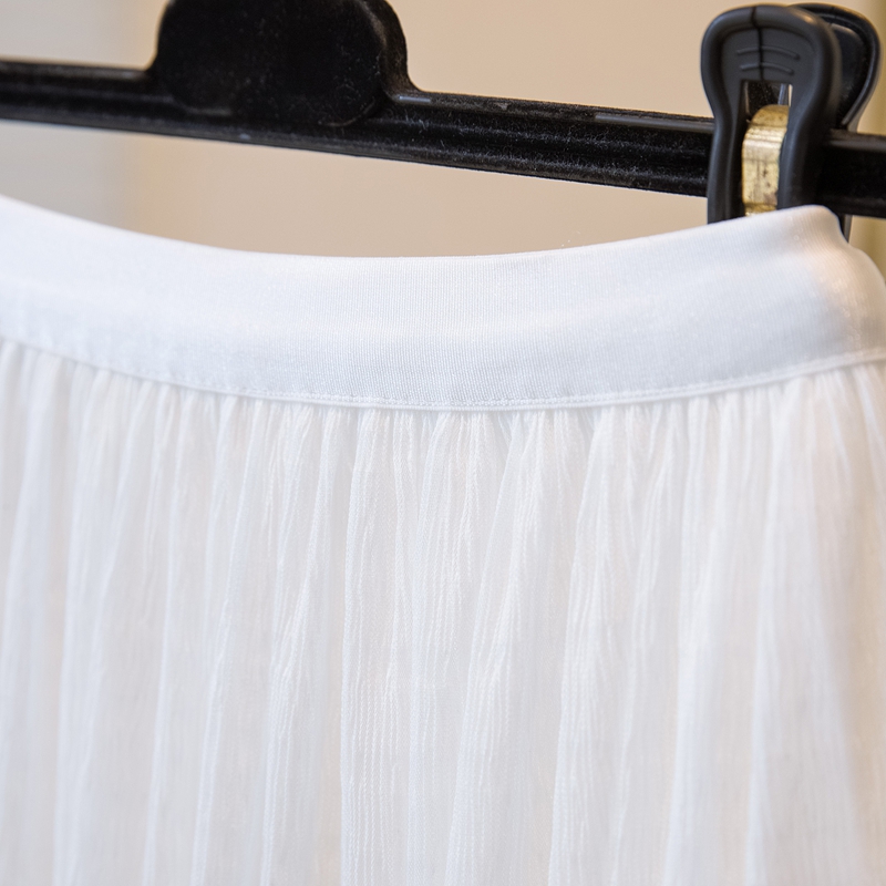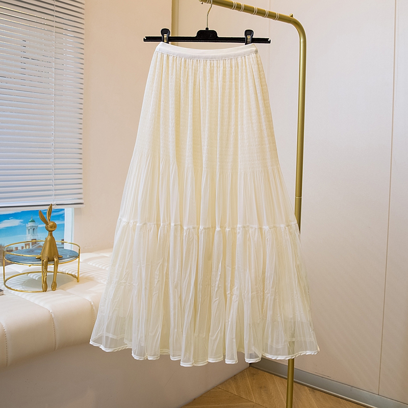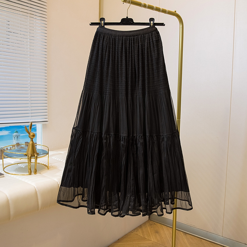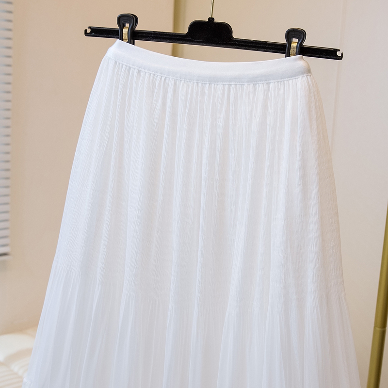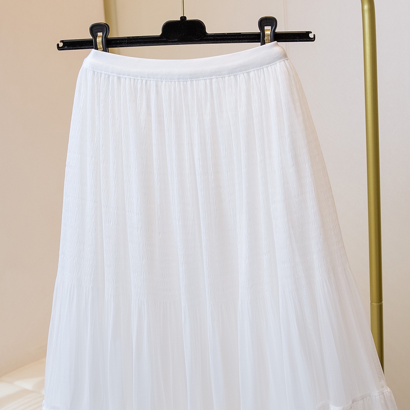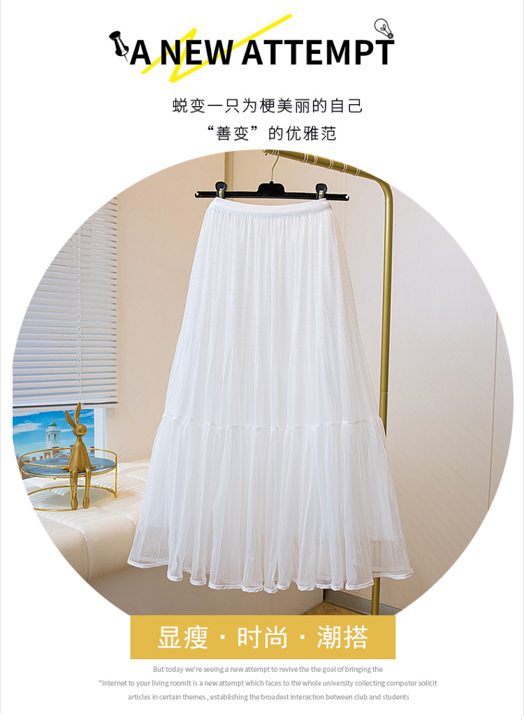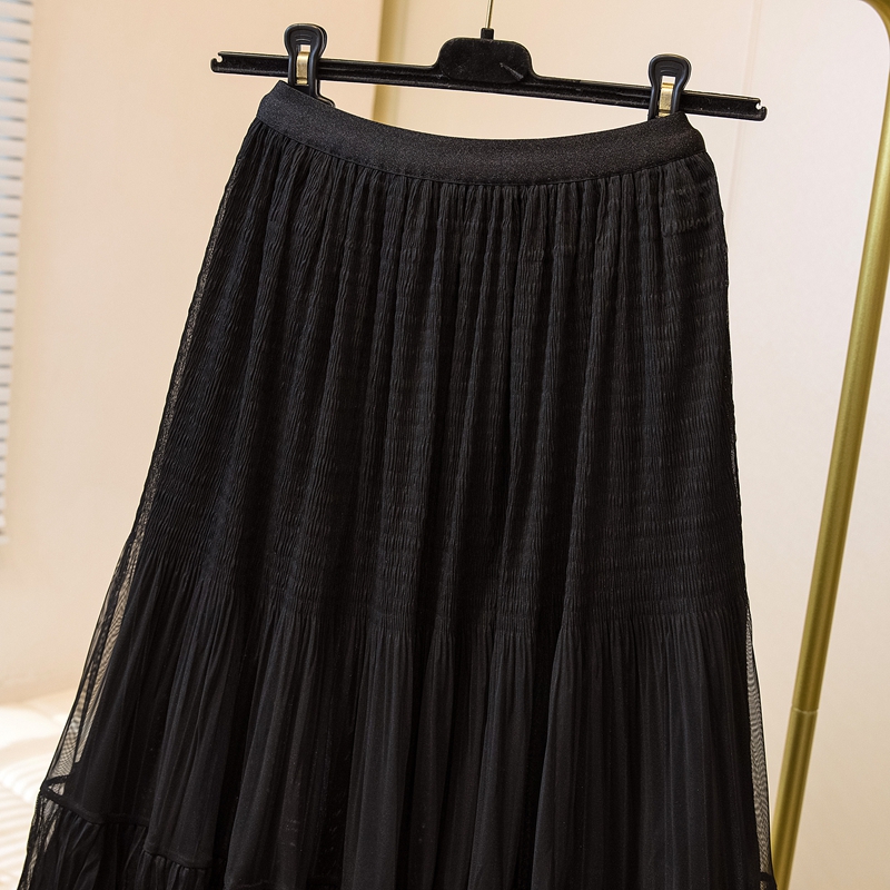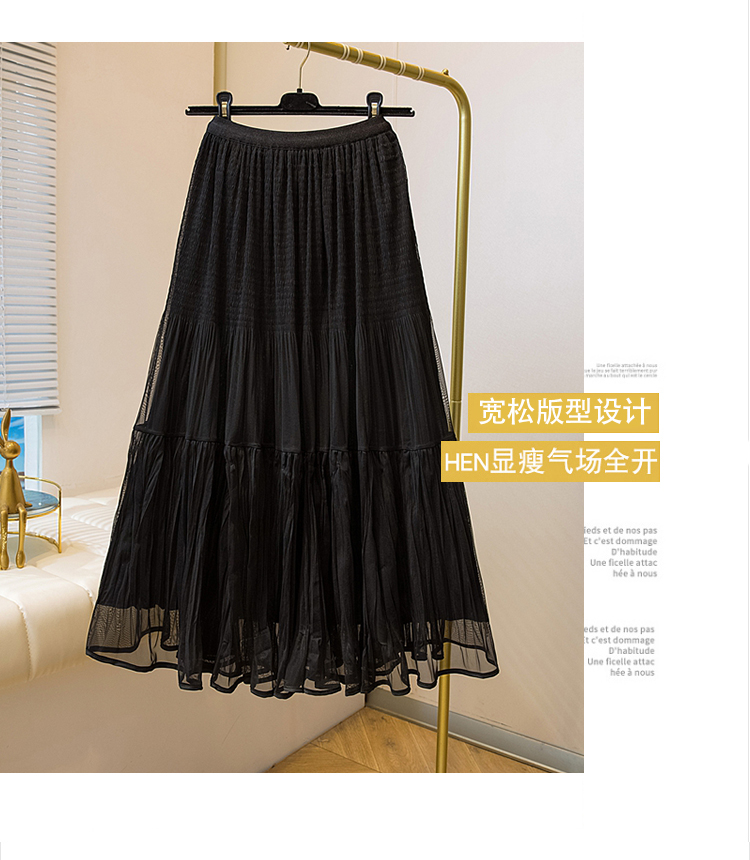 실사 빅 사이즈 여성 의류 여름 새로운 연령 감소 루즈핏 슬림해 보이는 도루 센스 망사 플리츠 반신 스커트 양성 및 음성 둘 착용