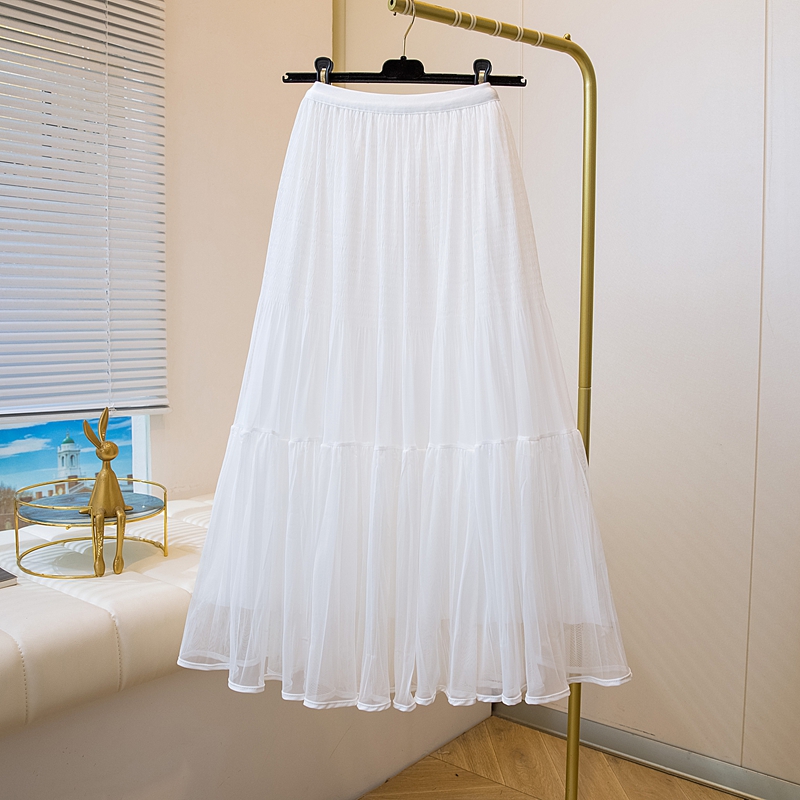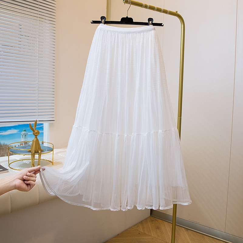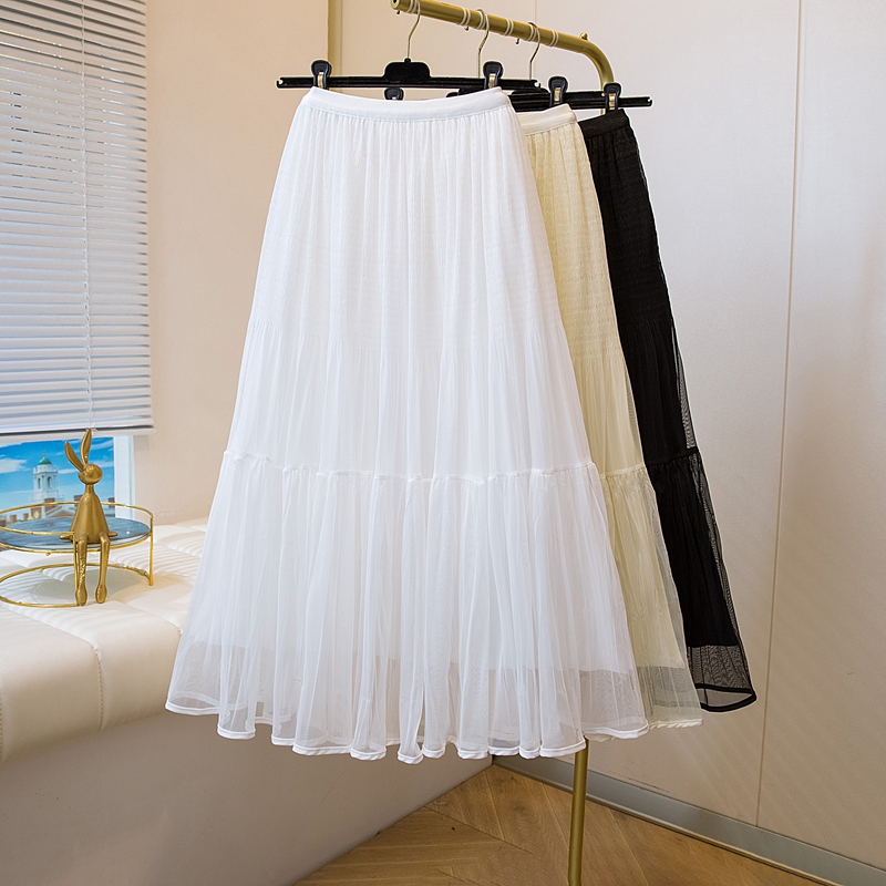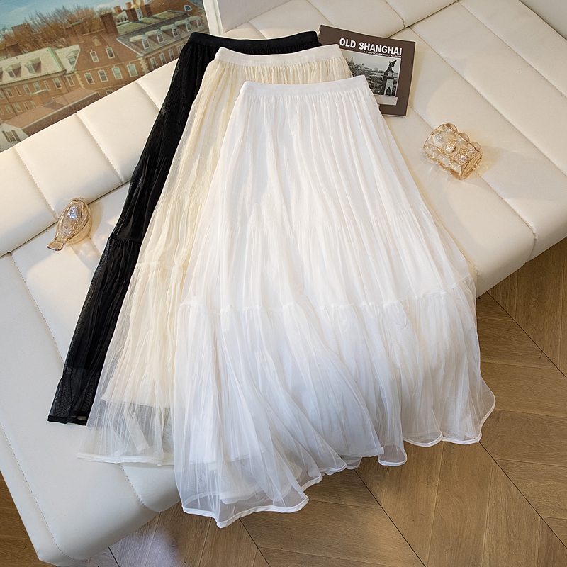 실사 반신 스커트 여성 거즈 스커트 하이웨이스트 A라인 스커트 케이크 드레스 부드러운 바람 큰 진자 중간 길이 치마 빅 사이즈 반신 스커트