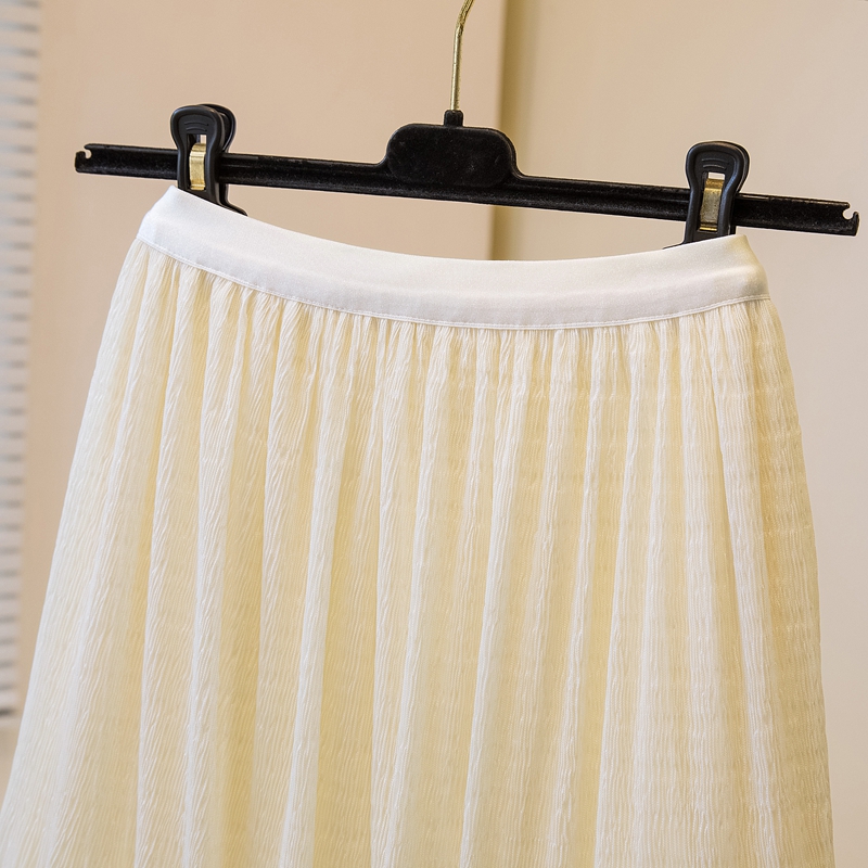 실사 여름 새로운 플리츠 쉬폰 반신 스커트 캐주얼 빅 사이즈 반신 스커트