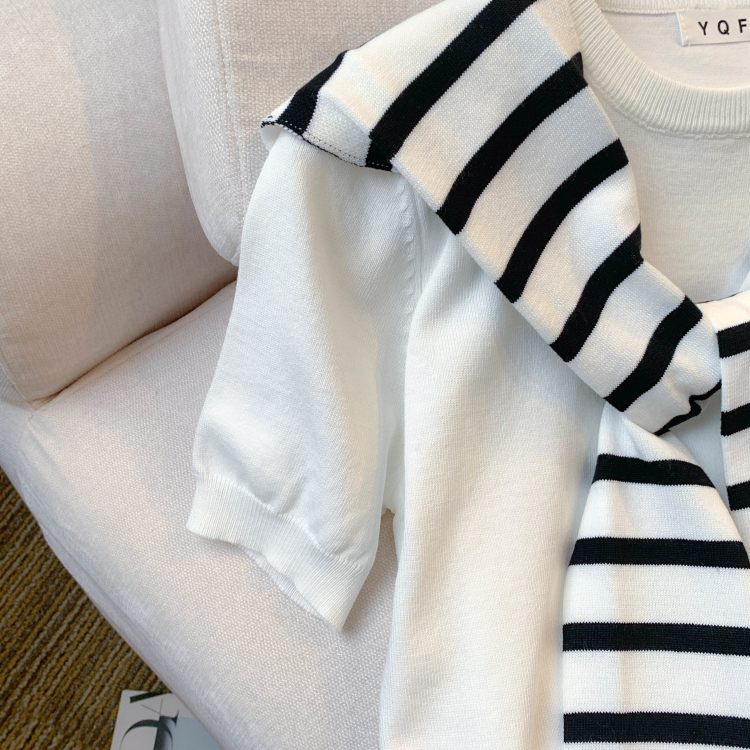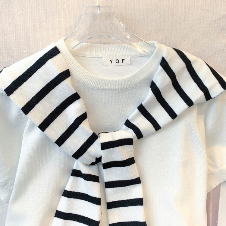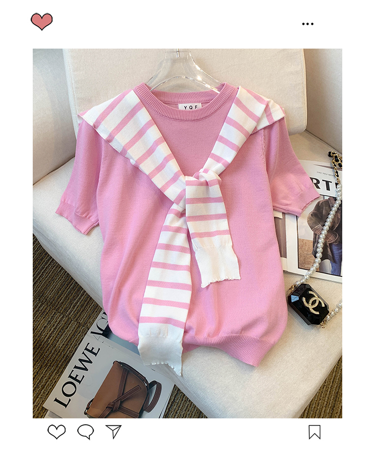 실사 대 물품 2026 봄 여름 새로운 디자인 센스 반팔 티셔츠 얇은 스타일 니트 스웨터 맨위 여성 경기 숄