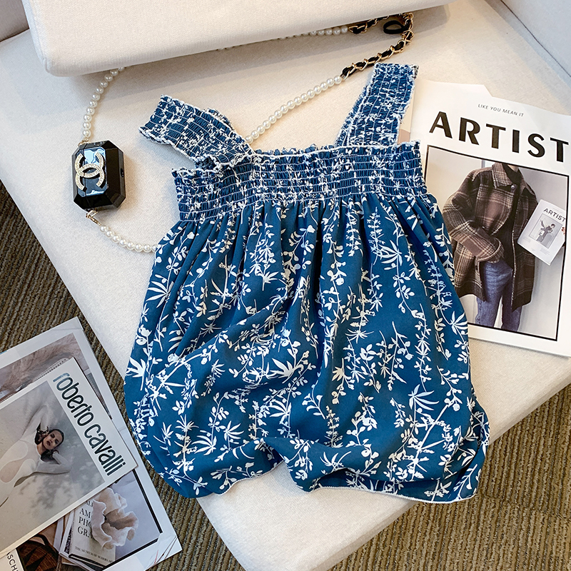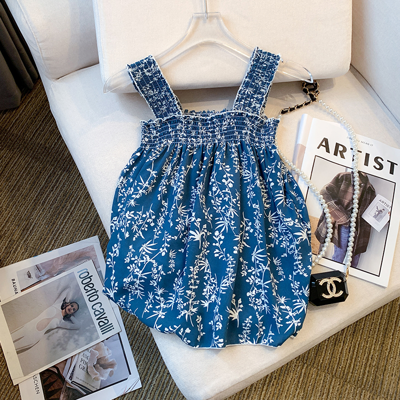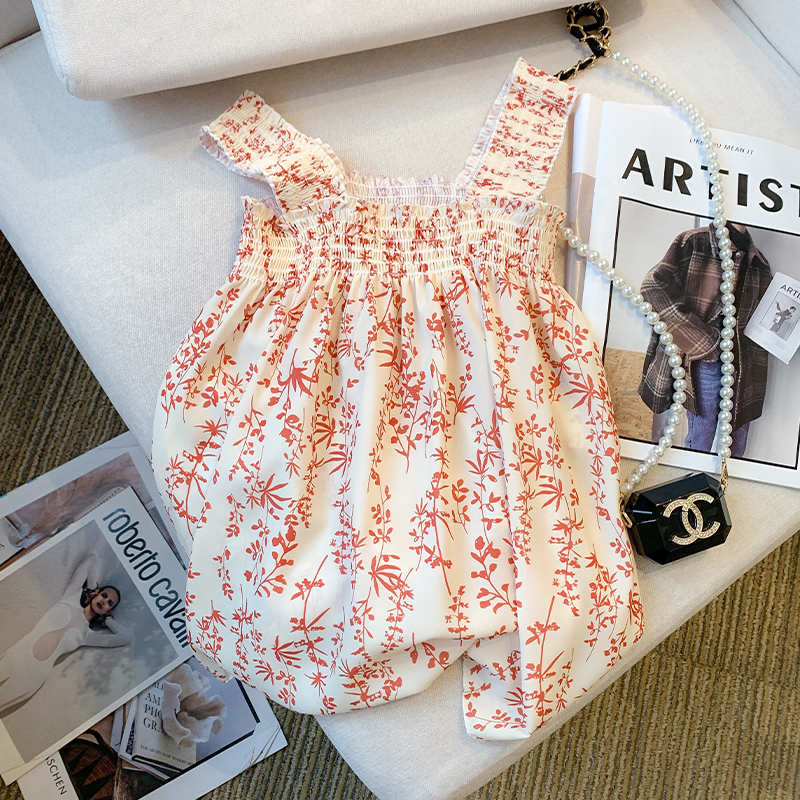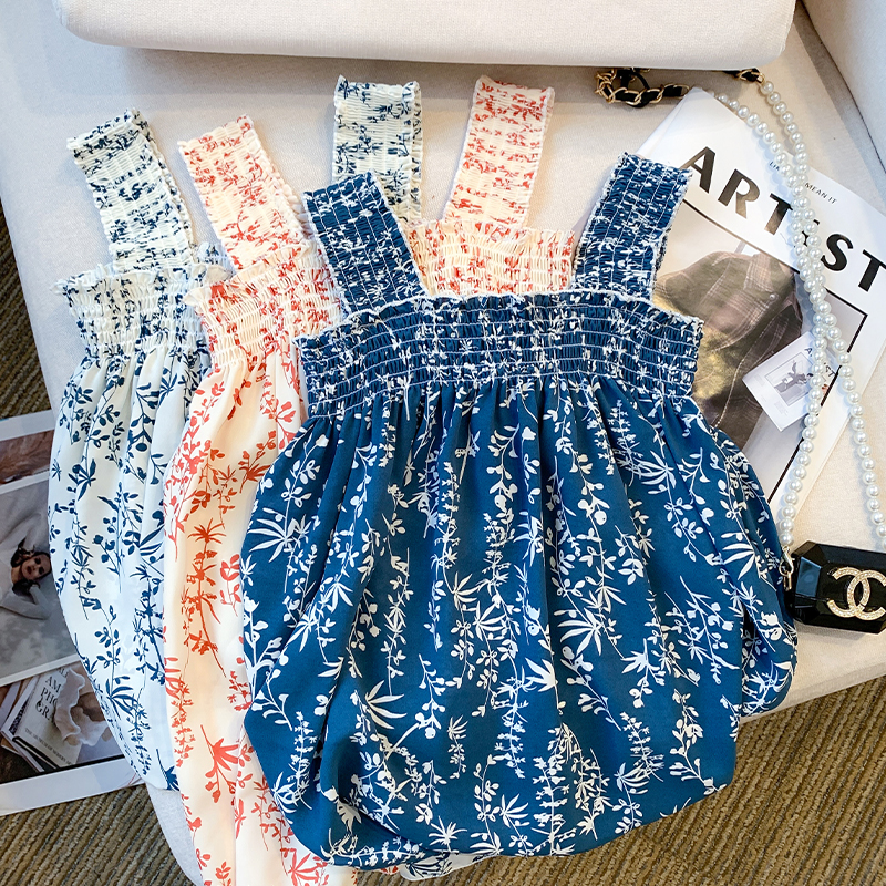 실사 대 물품 2026 여름 새로운 ins 디자인 센스 꽃무늬 쉬폰 블라우스 슬립 민소매 달콤함 맨위 여성