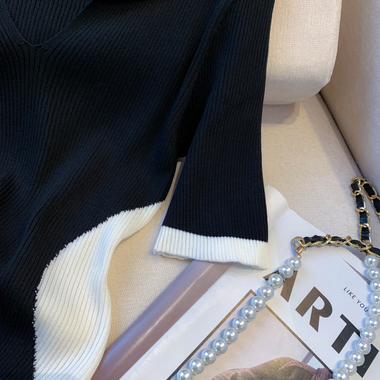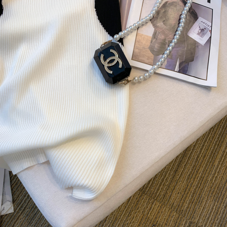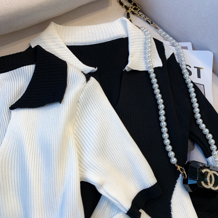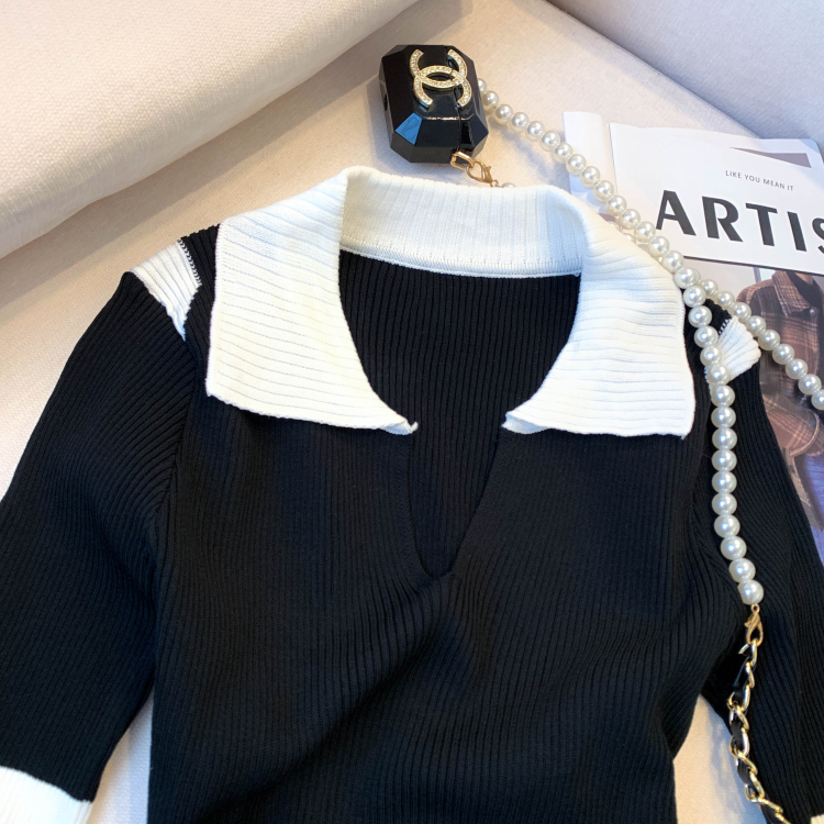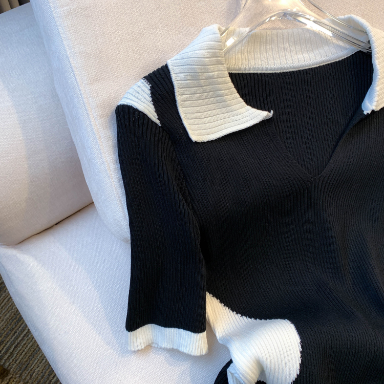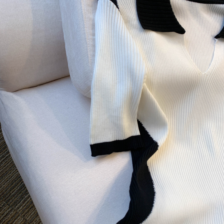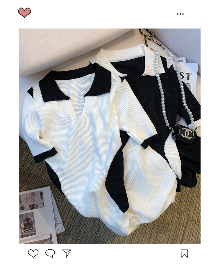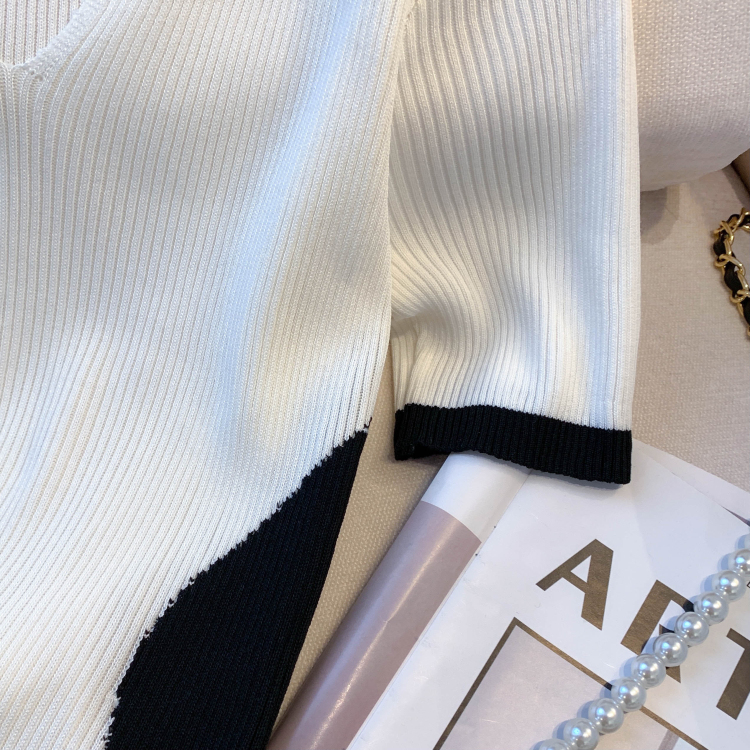 실사 대 물품 2026 여름 새로운 디자인 센스 배색 라운드 넥 반팔 티셔츠 품격 얼음 실크 니트 여성