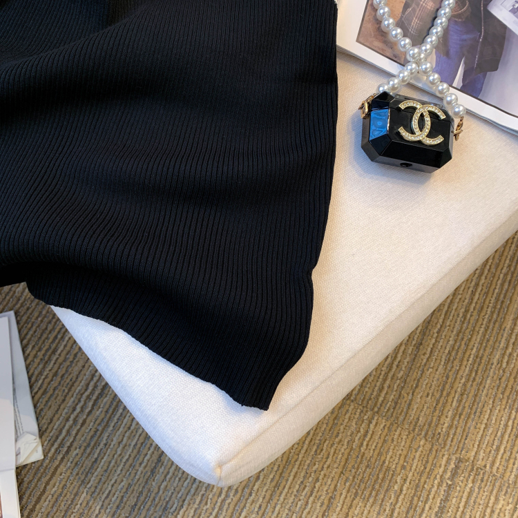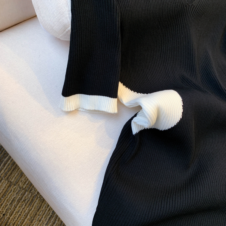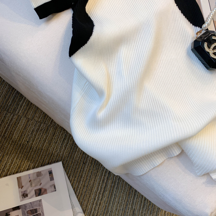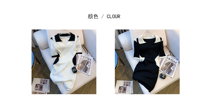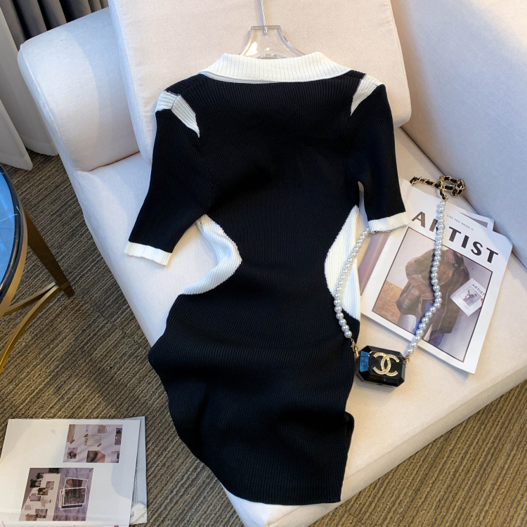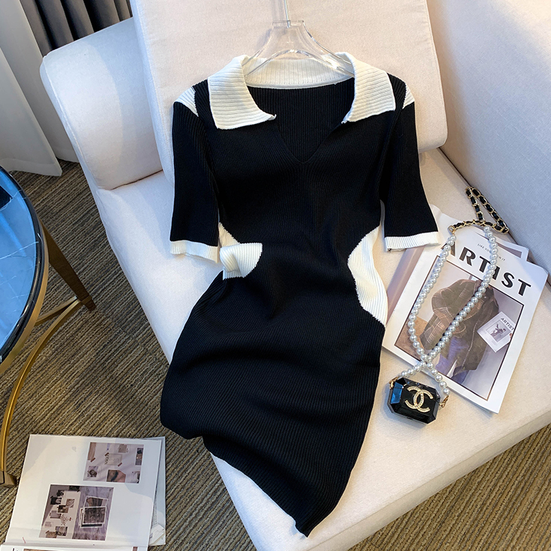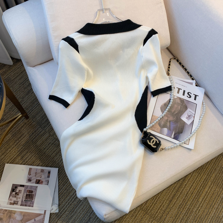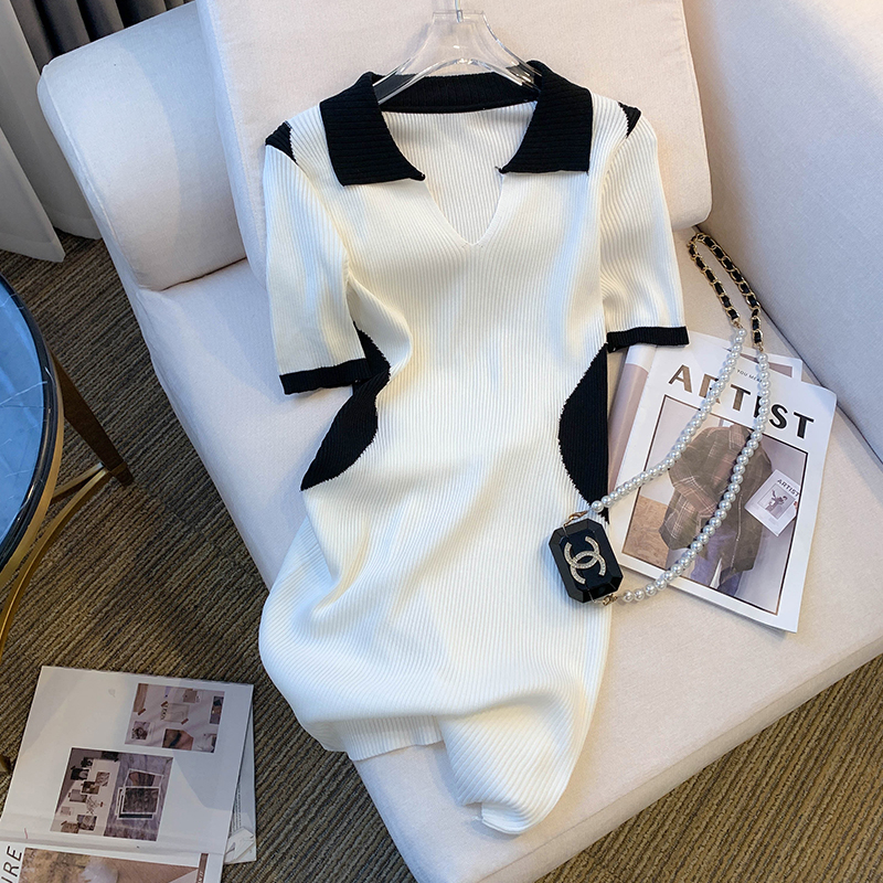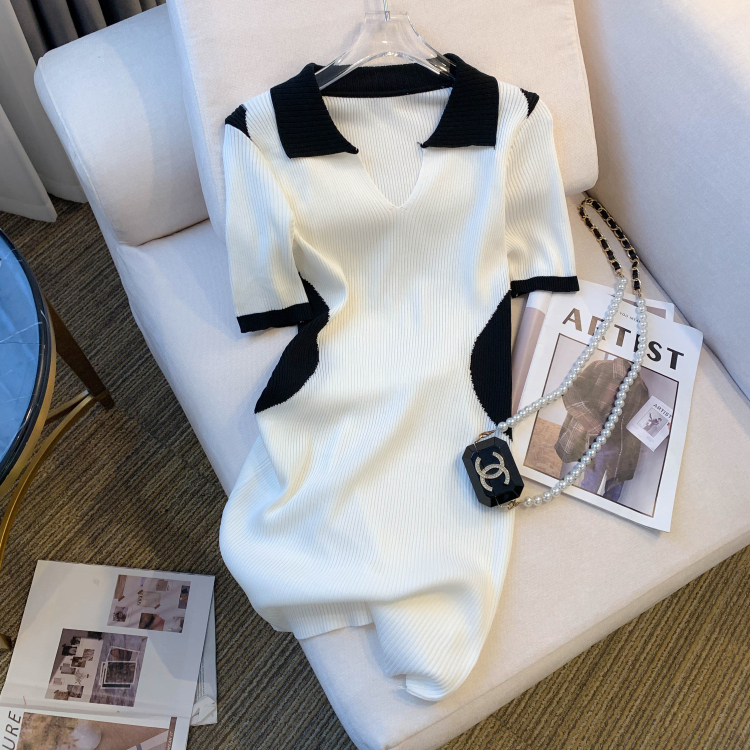 실사 대 물품 2026 여름 새로운 디자인 센스 작은 대중 배색 허리 수축 슬림해 보이는 니트 원피스 여성 드레스