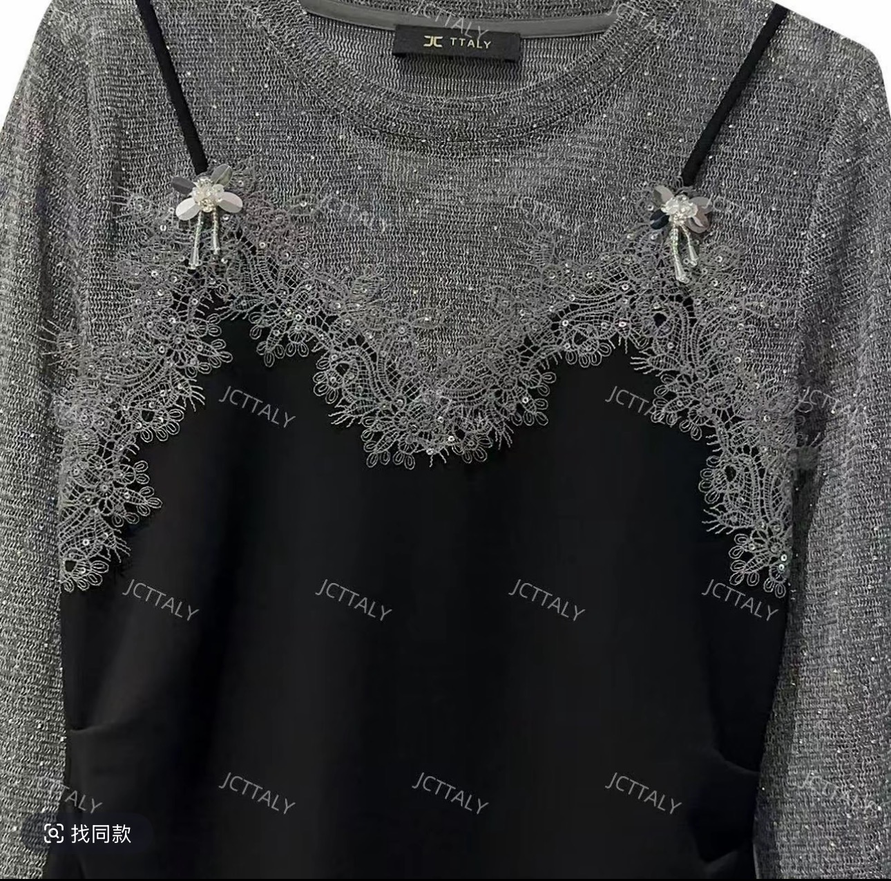 04 28 jmshopmiu 부서 교과서 자카드 구덩이 기사 니트 원피스 여성 V넥 레이스 캐미솔