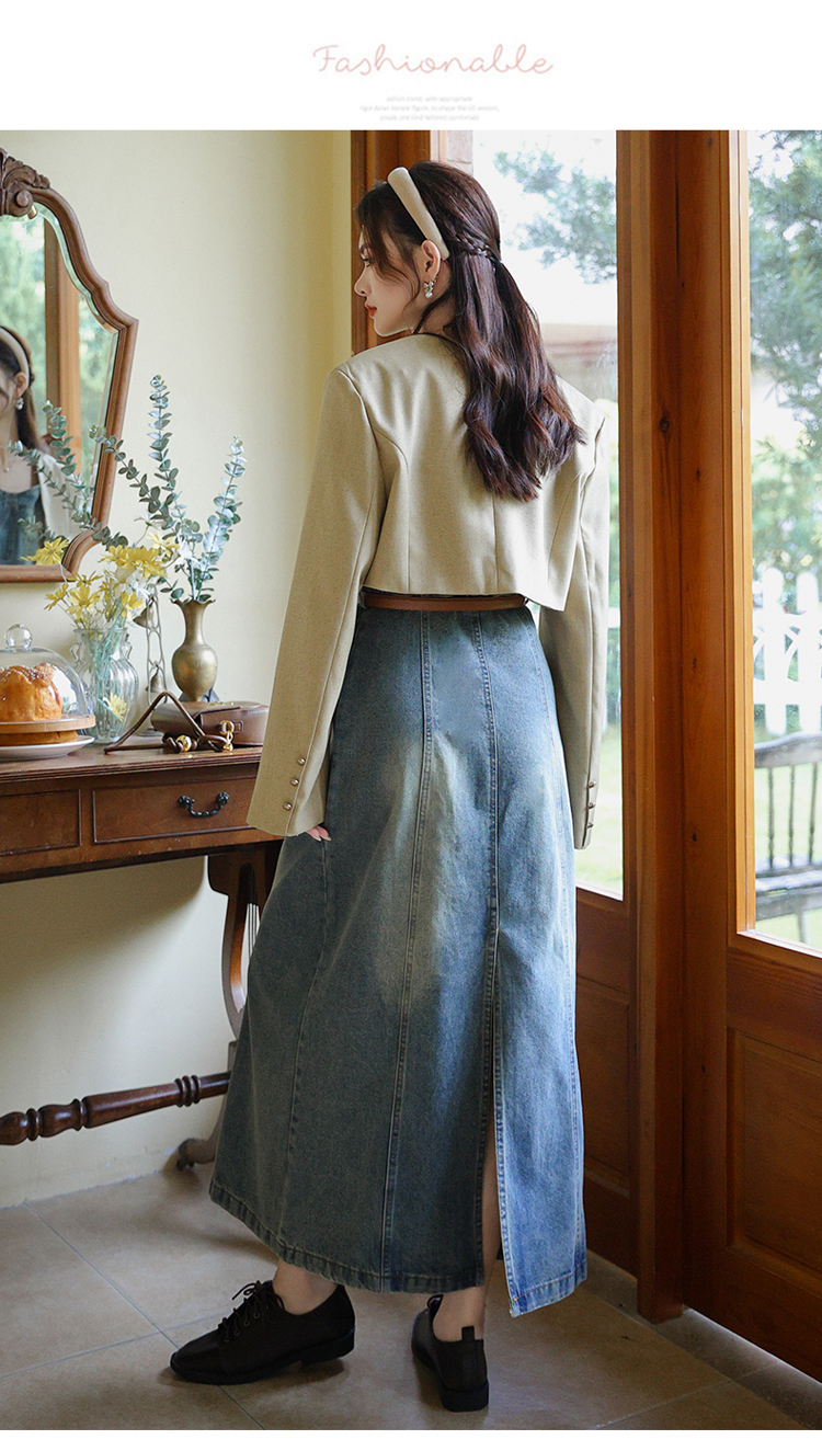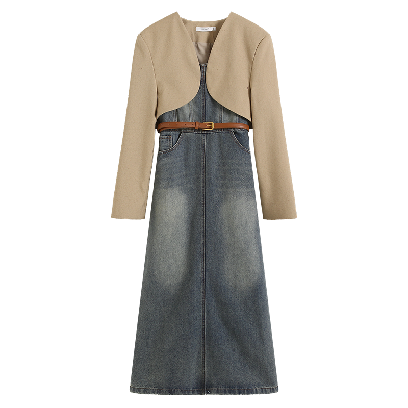 봄 여름 마이크로 지방 mm 코디 에이즈 환자 작은 양복 재킷 레트로 워시 물 마 오래된 슬립 데님 드레스 여성복