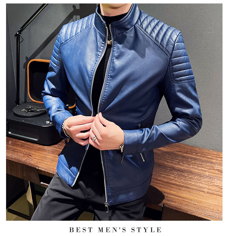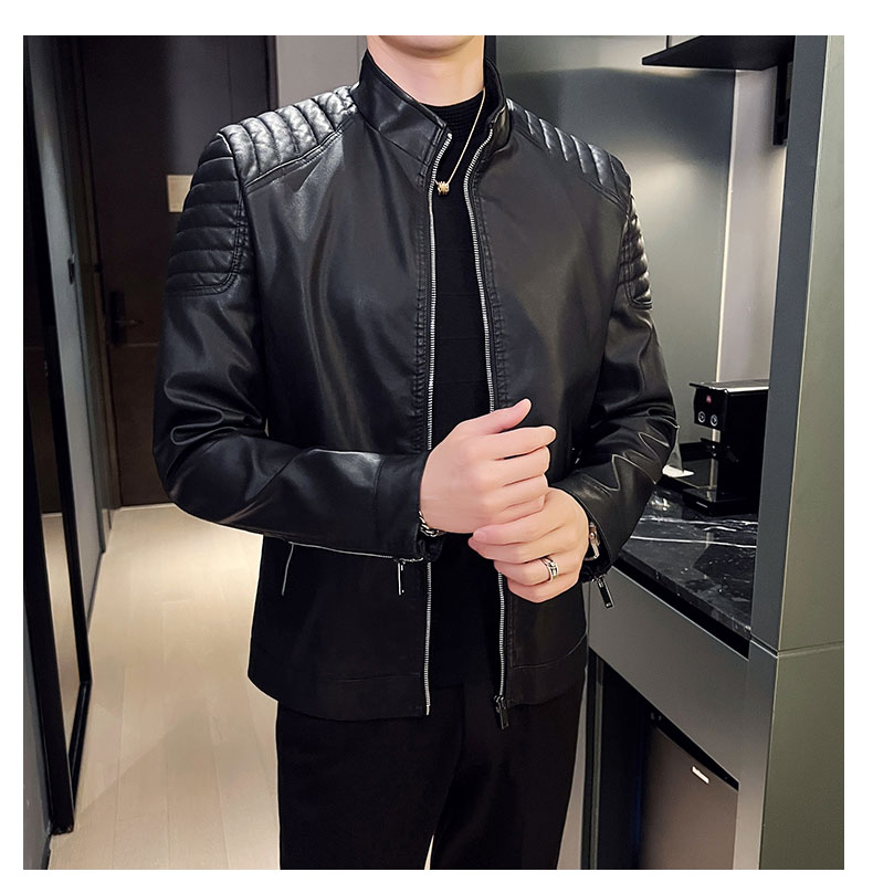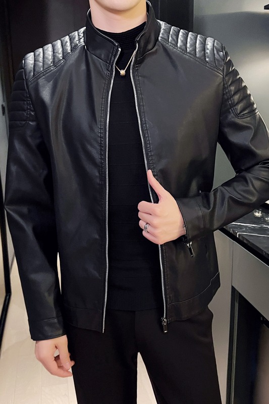 국경 간 가을 겨울 오토바이 재킷 청소년 남성 스탠드 칼라 pu 재킷 캐주얼 스탠드 칼라 가죽 재킷 방풍 보온 재킷