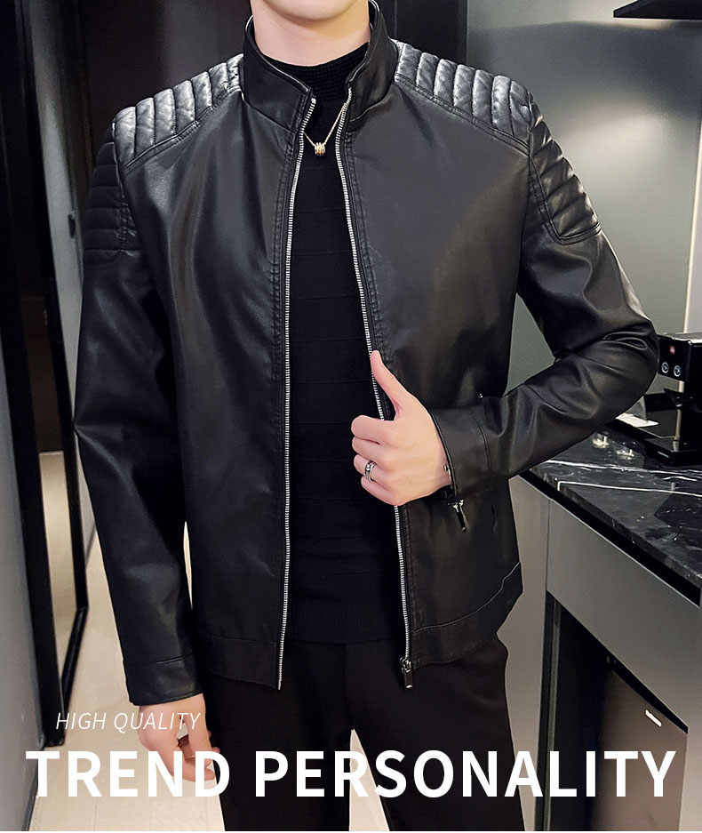 국경 간 가죽 재킷 남성 재킷 가을 겨울 조수 브랜드 스탠드 칼라 오토바이 서비스 방풍 잘 생긴 몸매 가꾸기 악당 잘 생긴 PU 가죽 남자 재킷