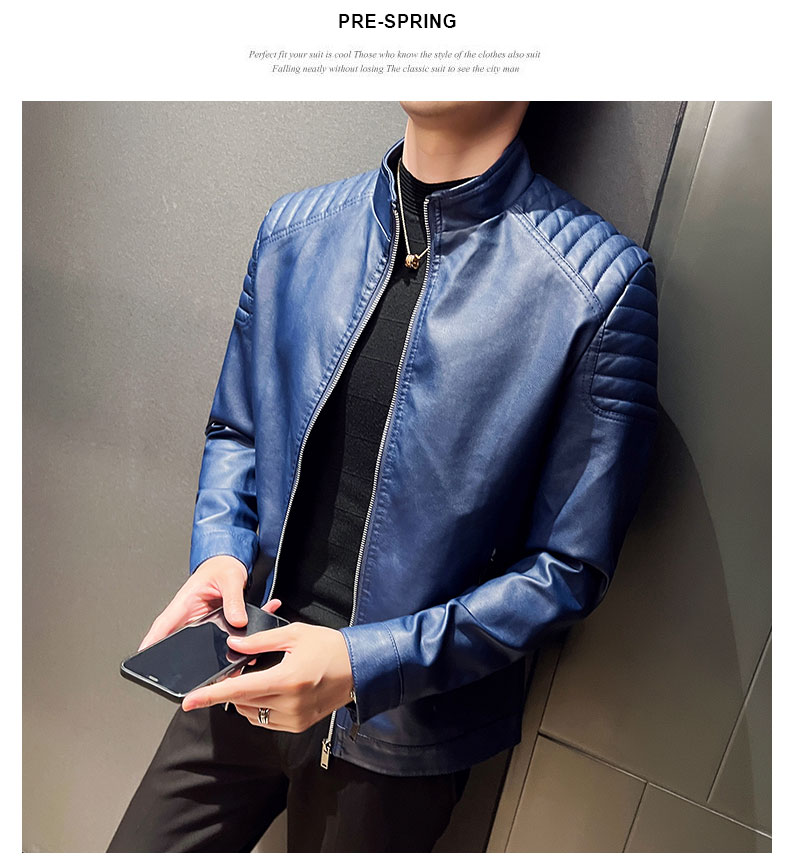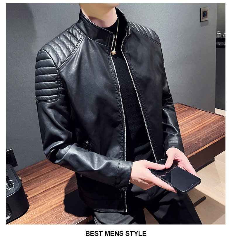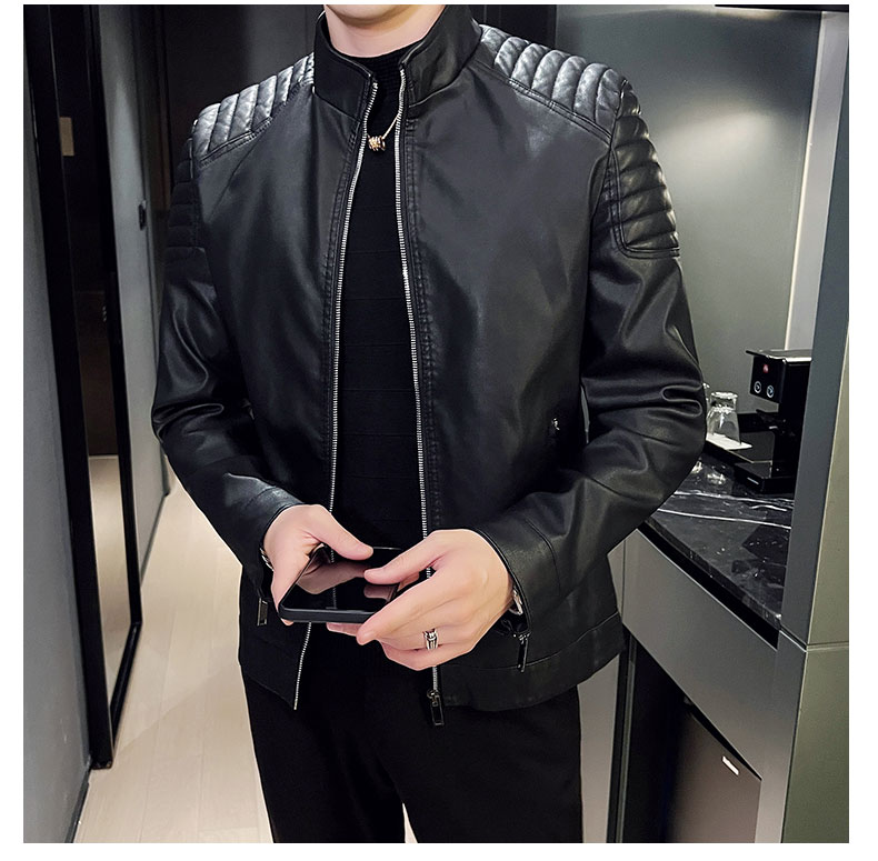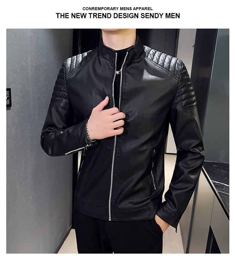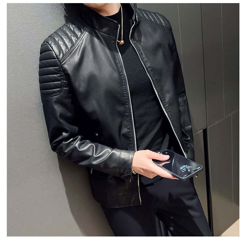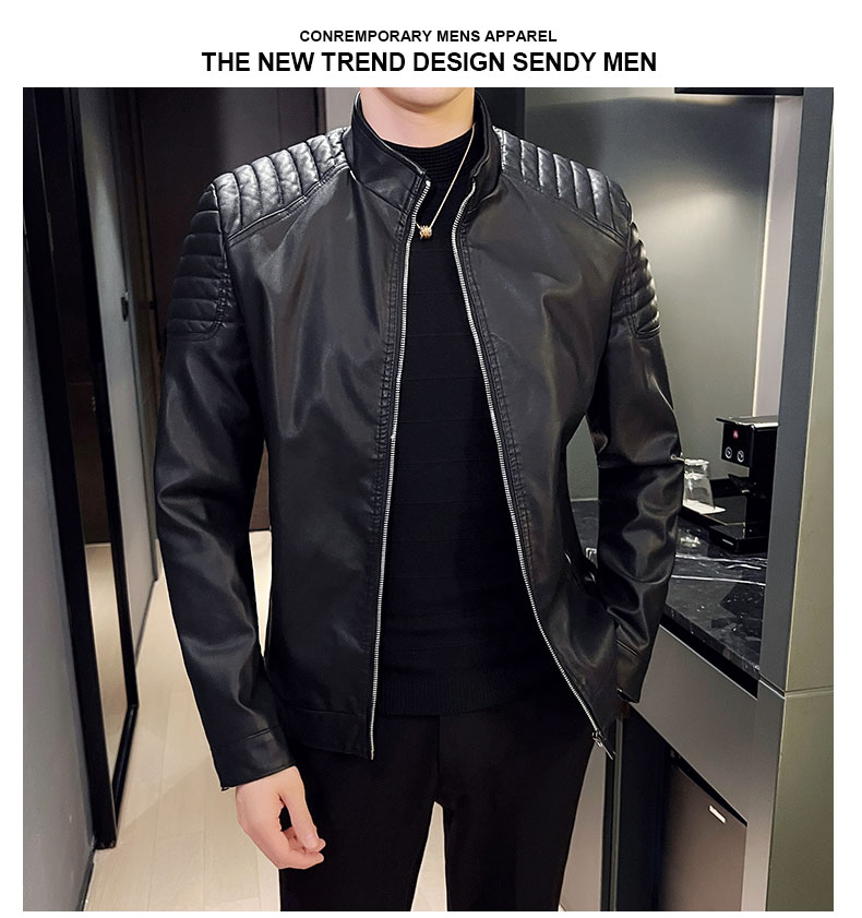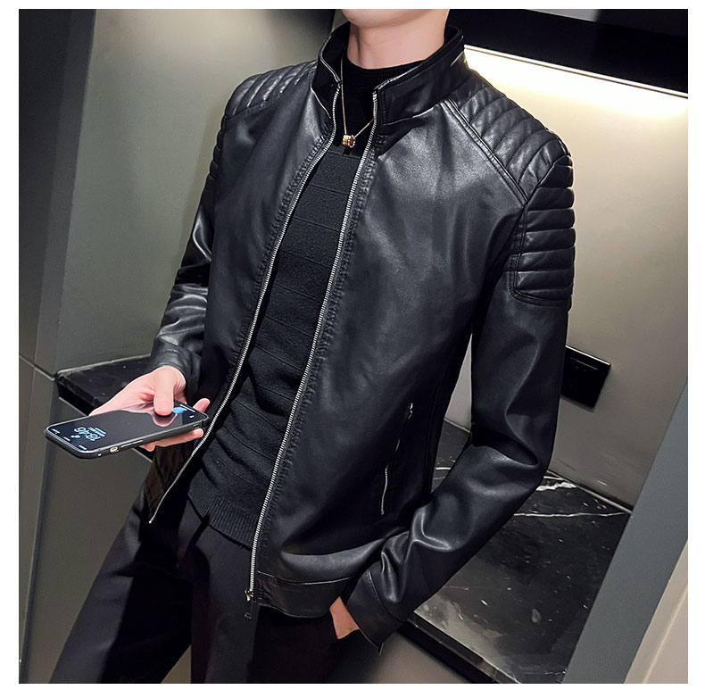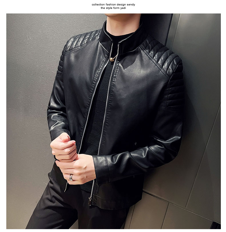 국경 간 봄 가을 오토바이 재킷 청소년 남성 스탠드 칼라 pu 재킷 캐주얼 스탠드 칼라 가죽 재킷 방풍 보온 재킷