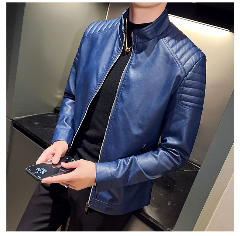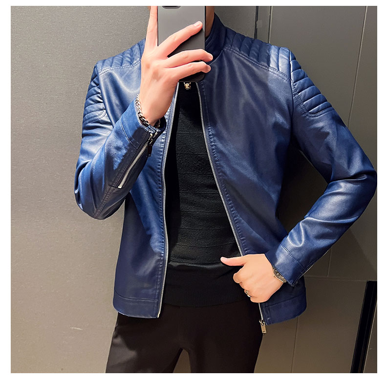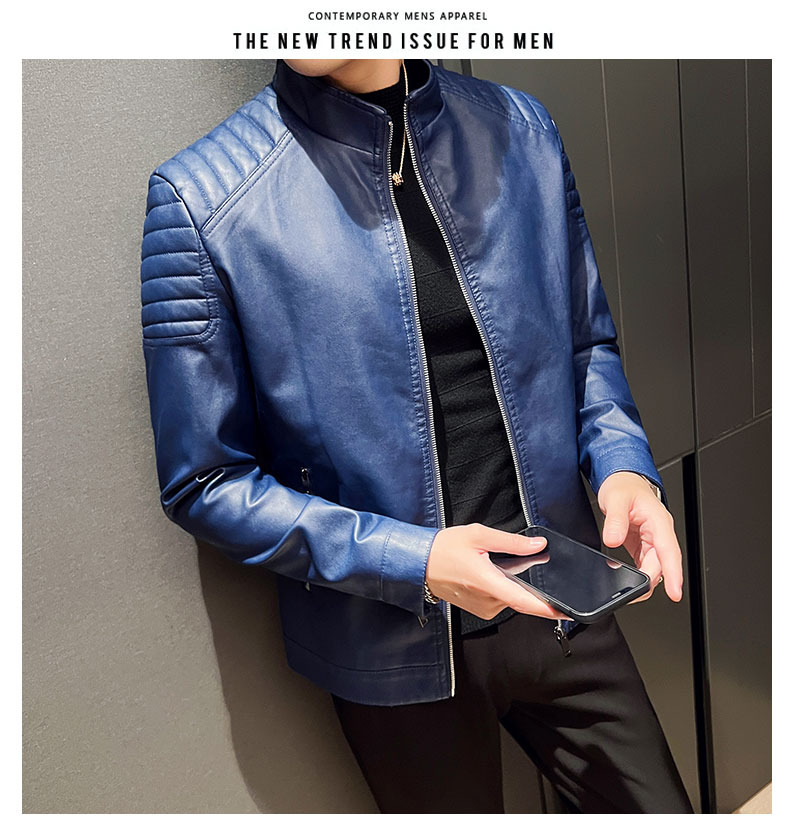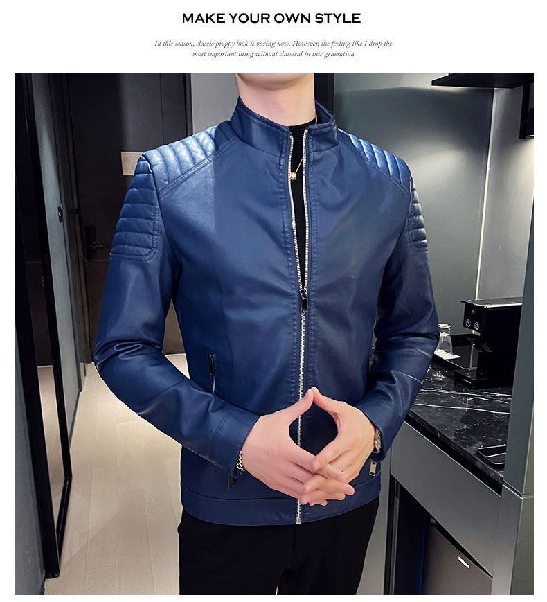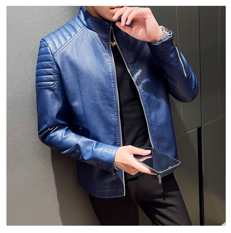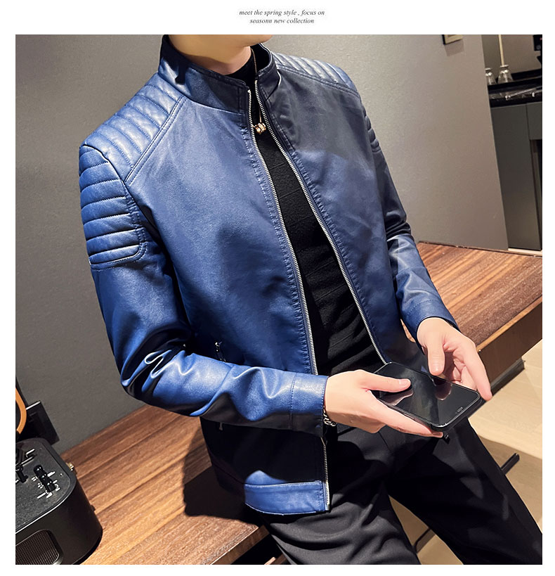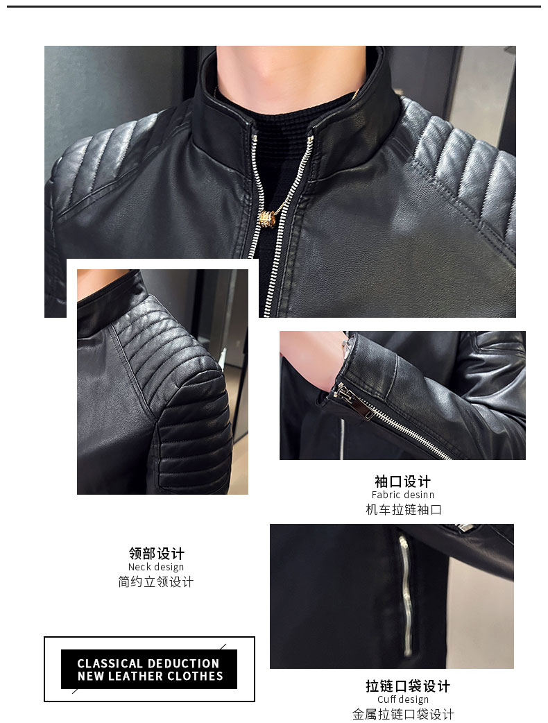 국경 간 봄 가을 오토바이 재킷 청소년 남성 스탠드 칼라 pu 재킷 캐주얼 스탠드 칼라 가죽 재킷 방풍 보온 재킷
