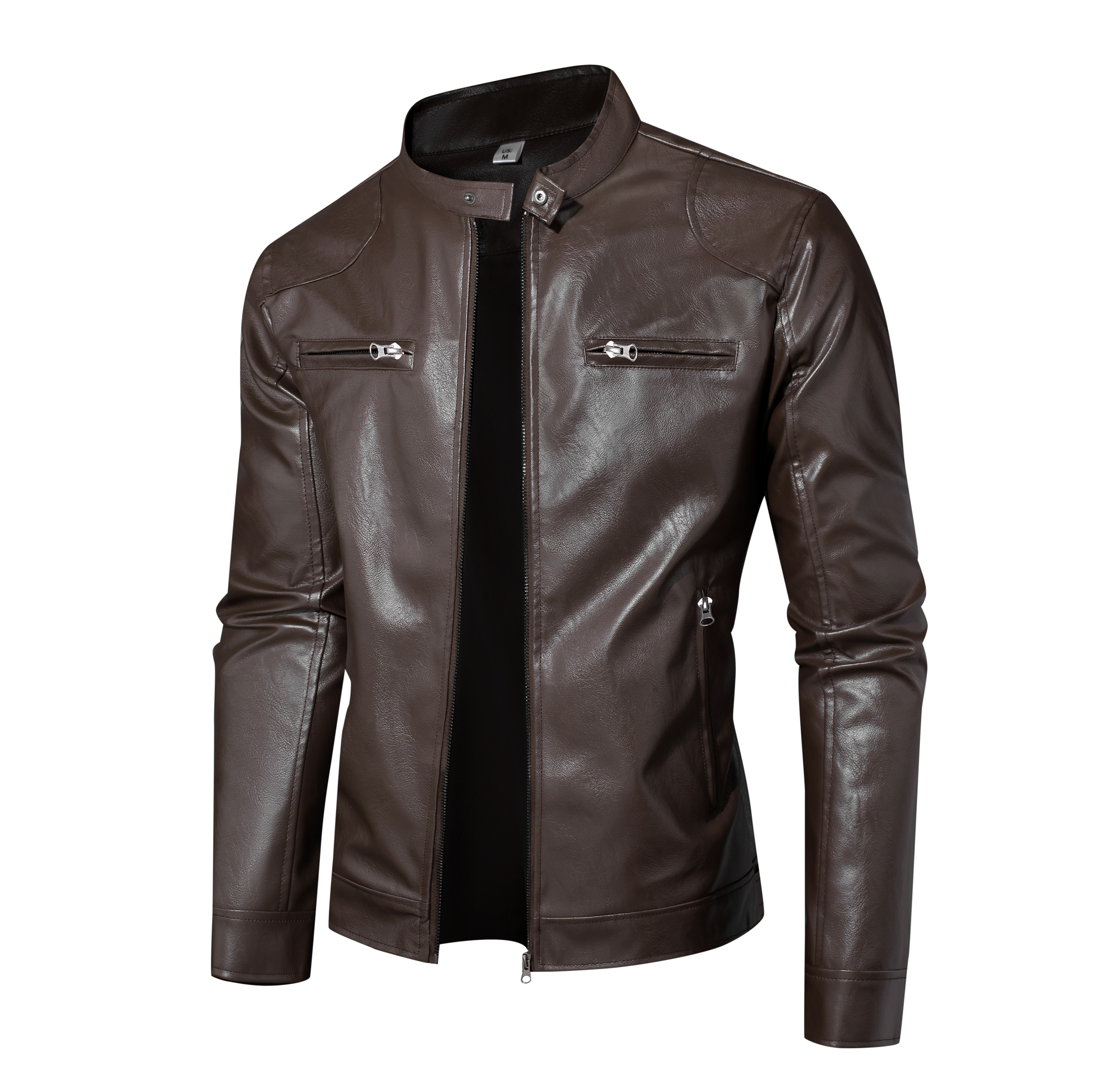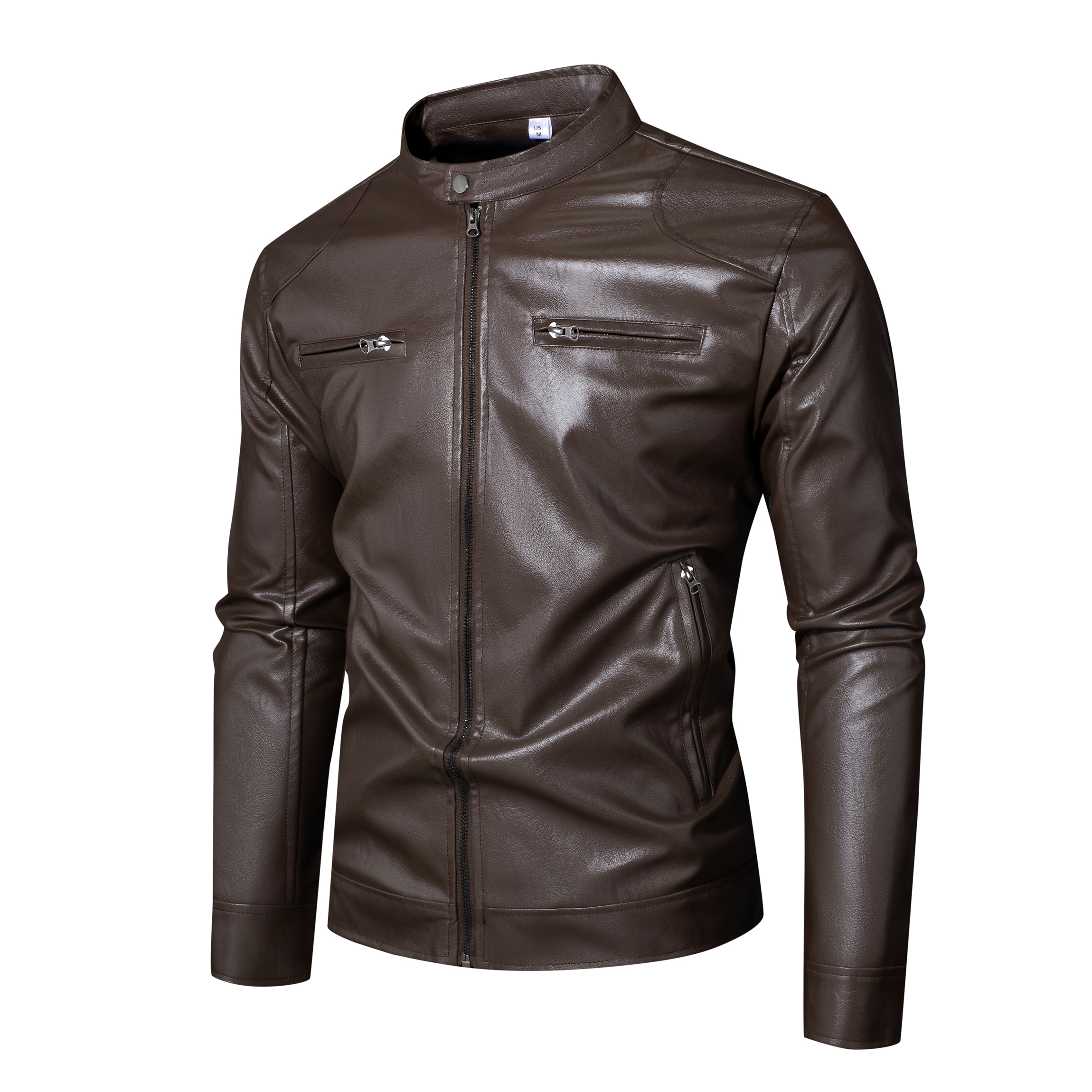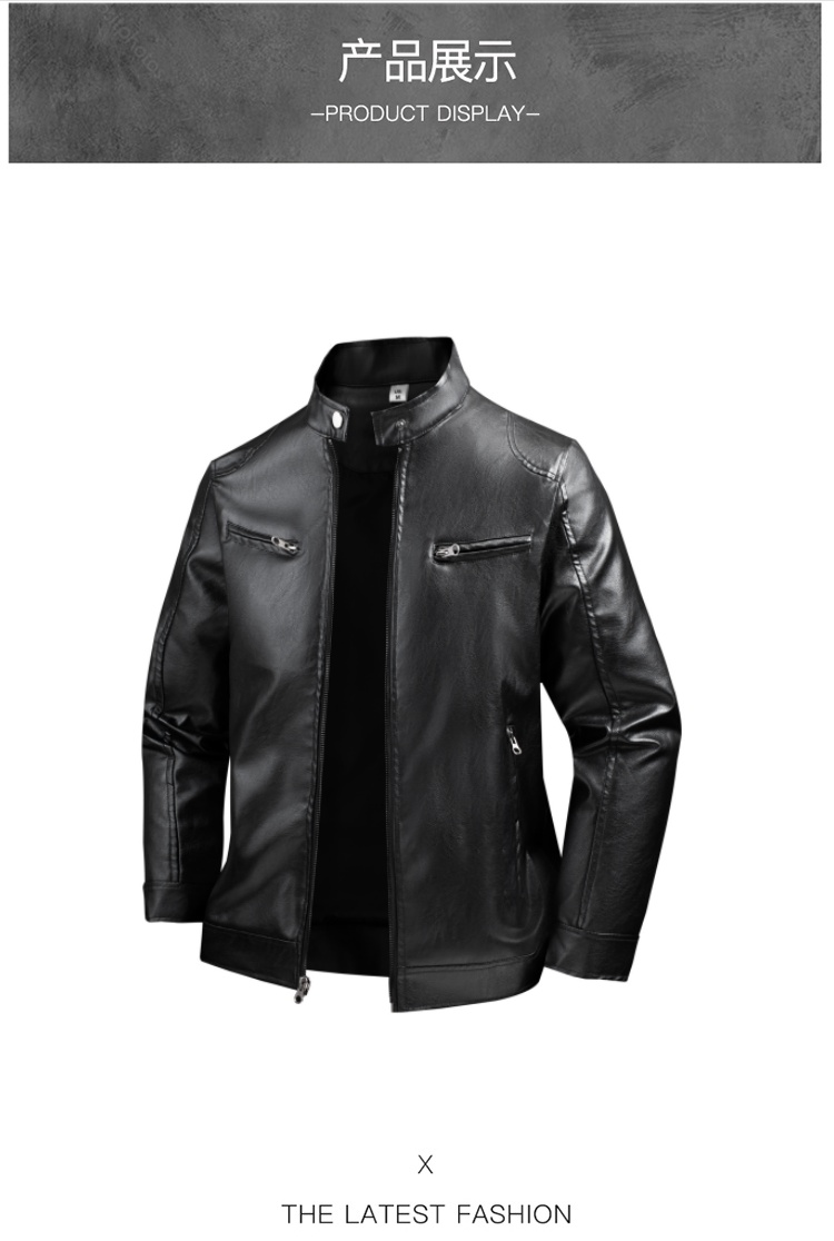 국경 간 가을 겨울 오토바이 재킷 청소년 남성 스탠드 칼라 pu 재킷 캐주얼 스탠드 칼라 가죽 재킷 방풍 보온 재킷