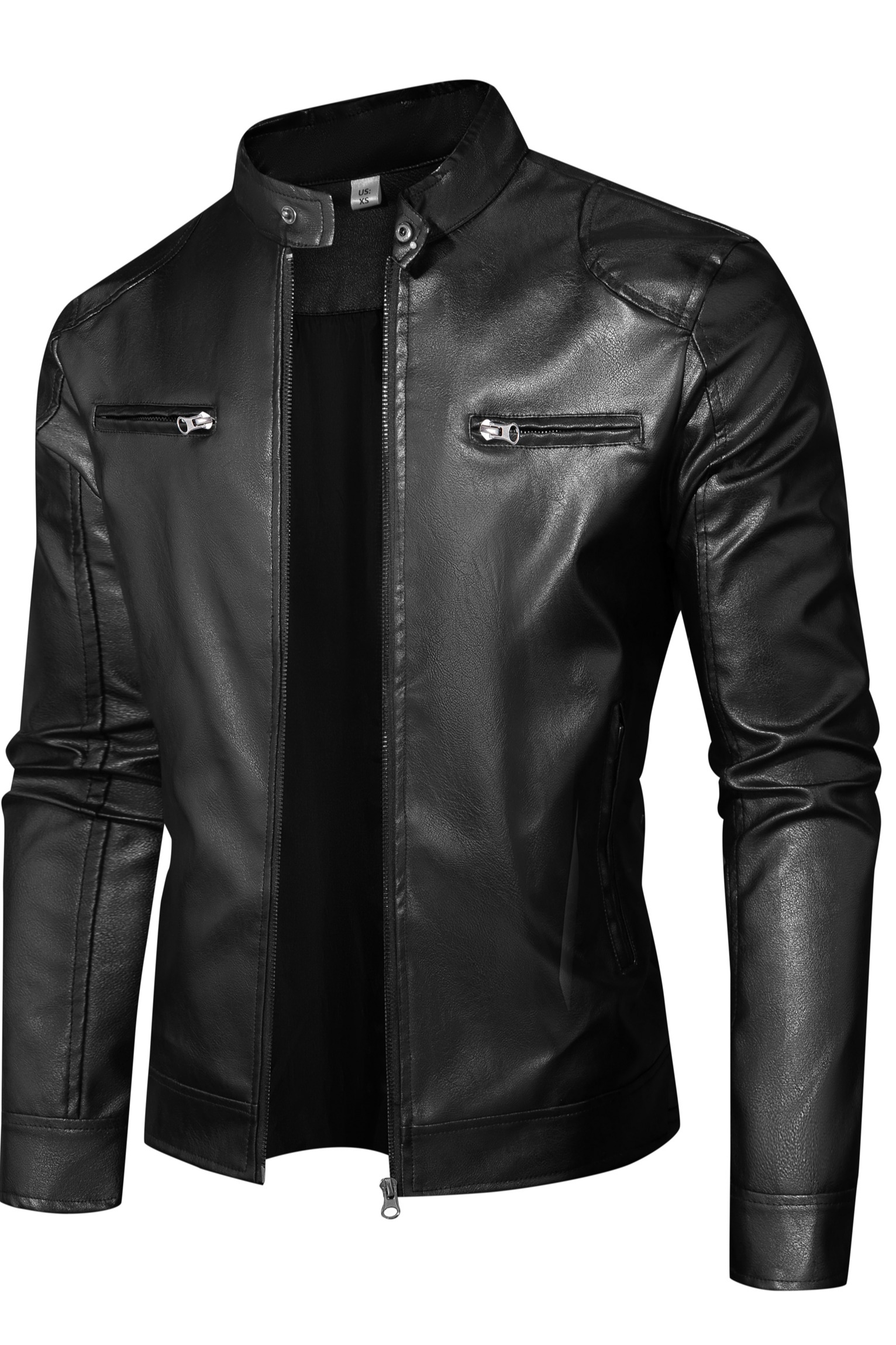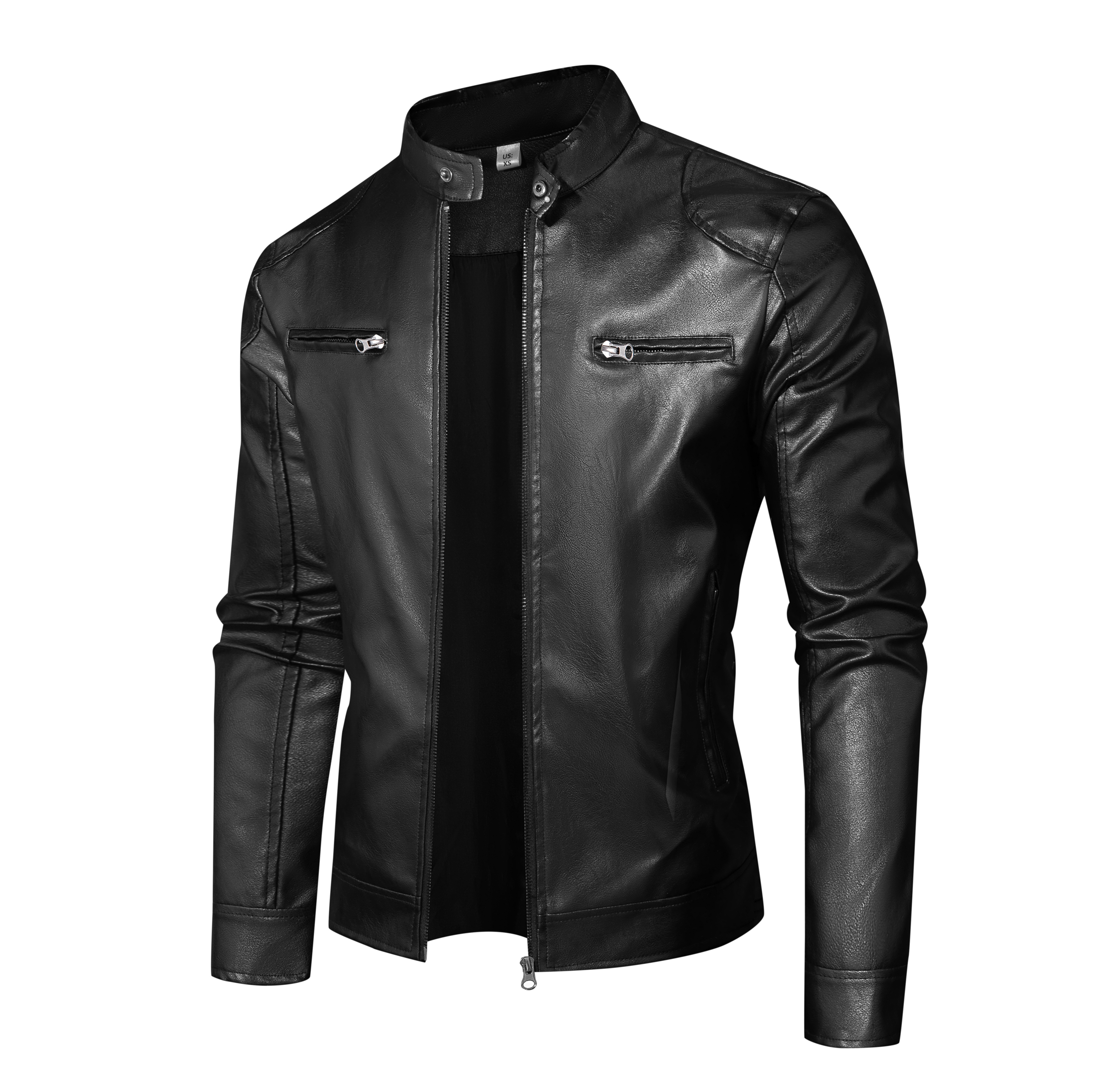 국경 간 폭발 남성 오토바이 pu 가죽 재킷 봄 가을 새로운 얇은 코트 단색 스탠드 칼라 몸매 가꾸기 잘 생긴 가죽 자켓