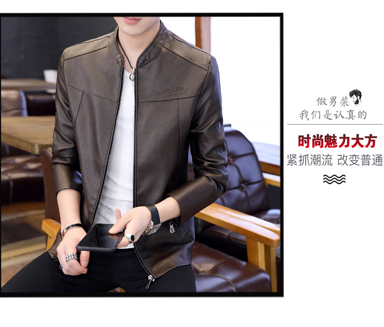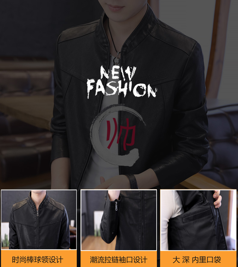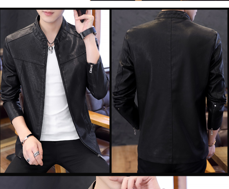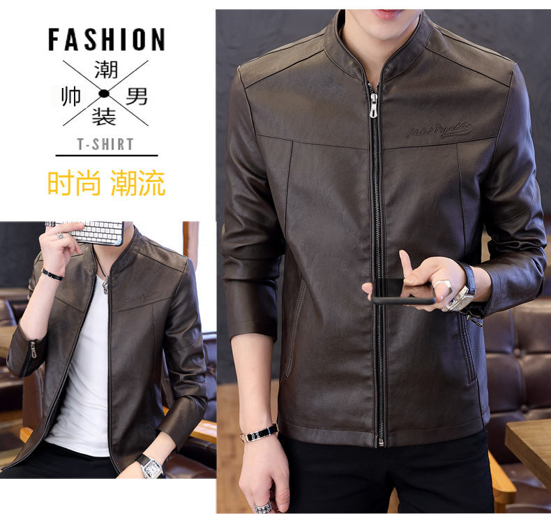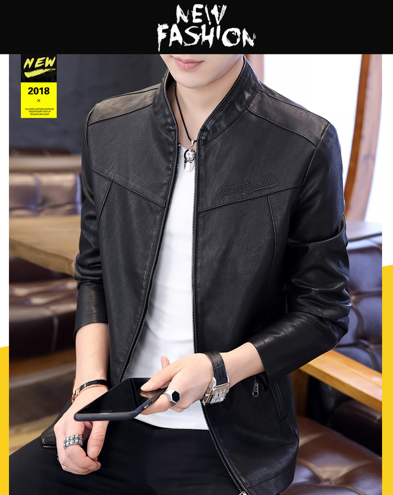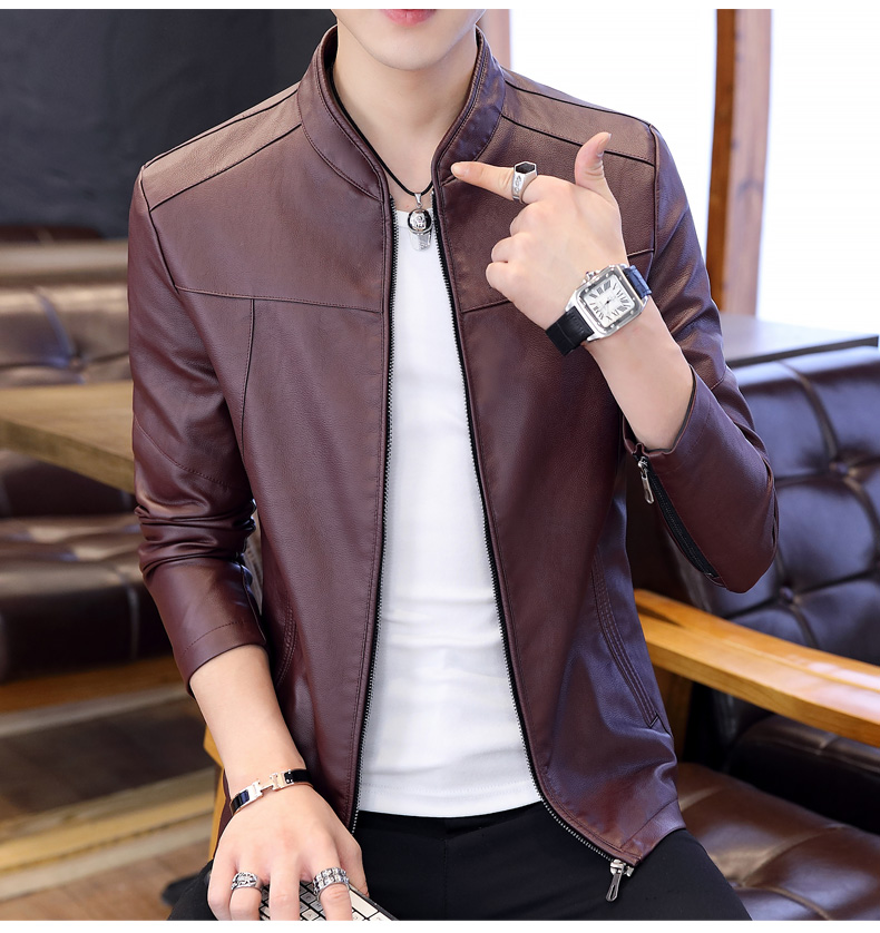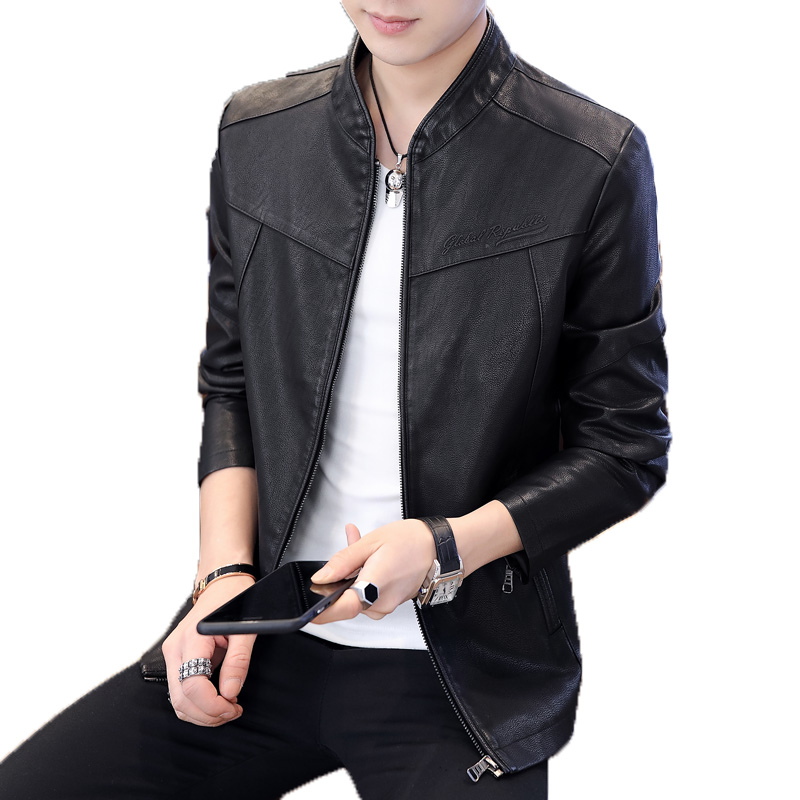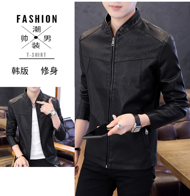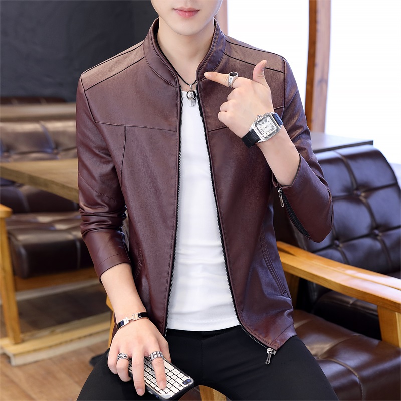 국경 간 봄과 가을 옷 가죽 재킷 남자 새로운 한국 스타일 트렌드 패션 스탠드 칼라 몸매 가꾸기 pu 가죽 자켓 잘 생긴 청년 재킷