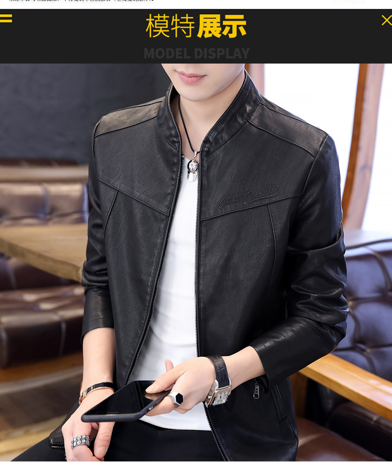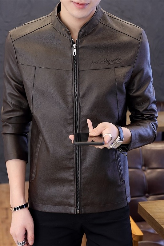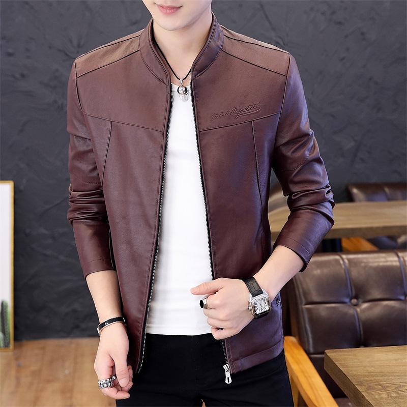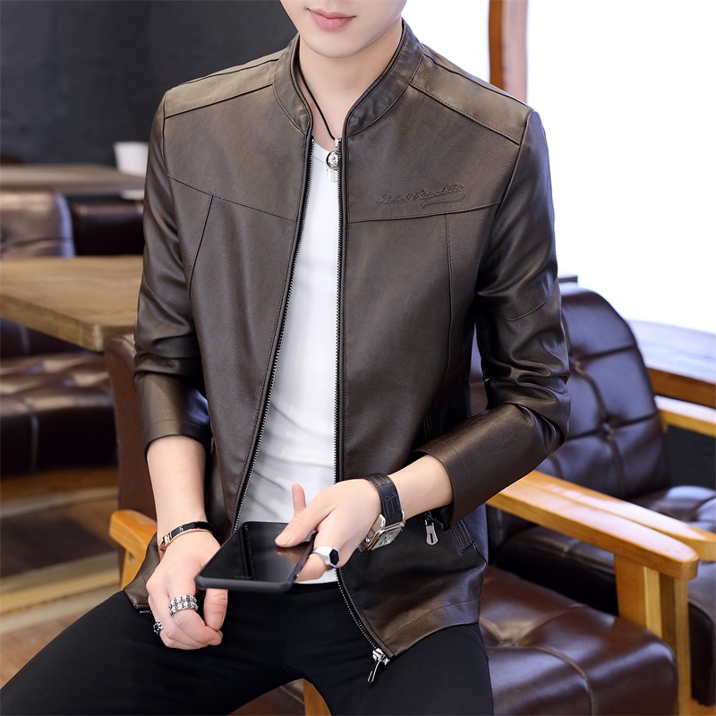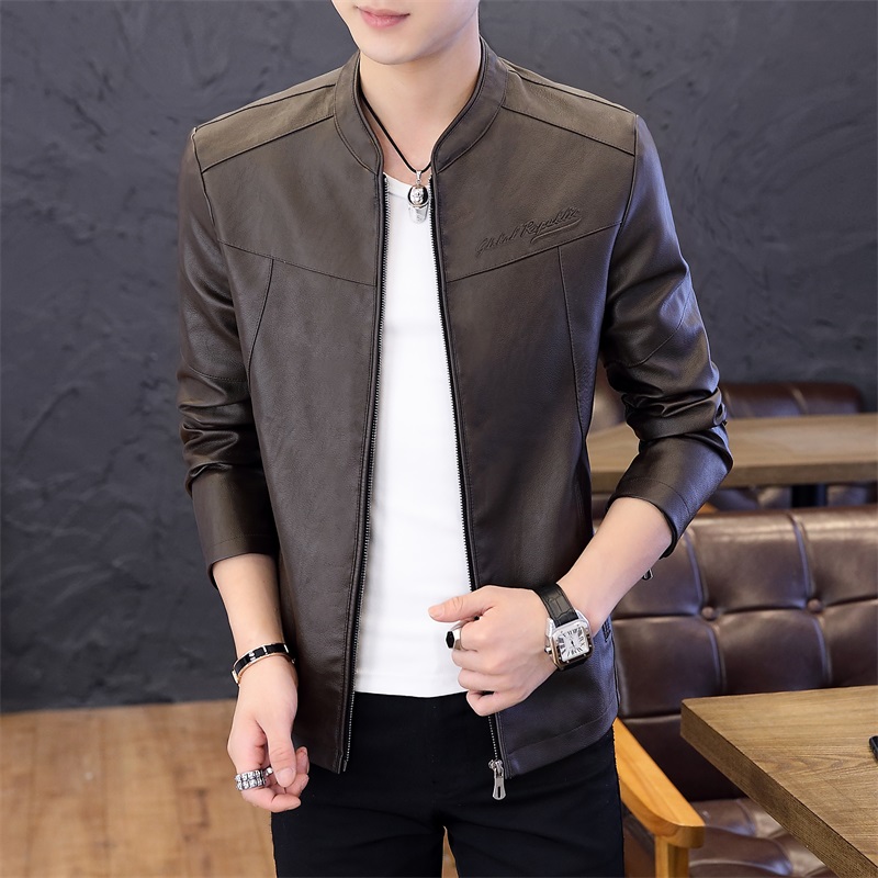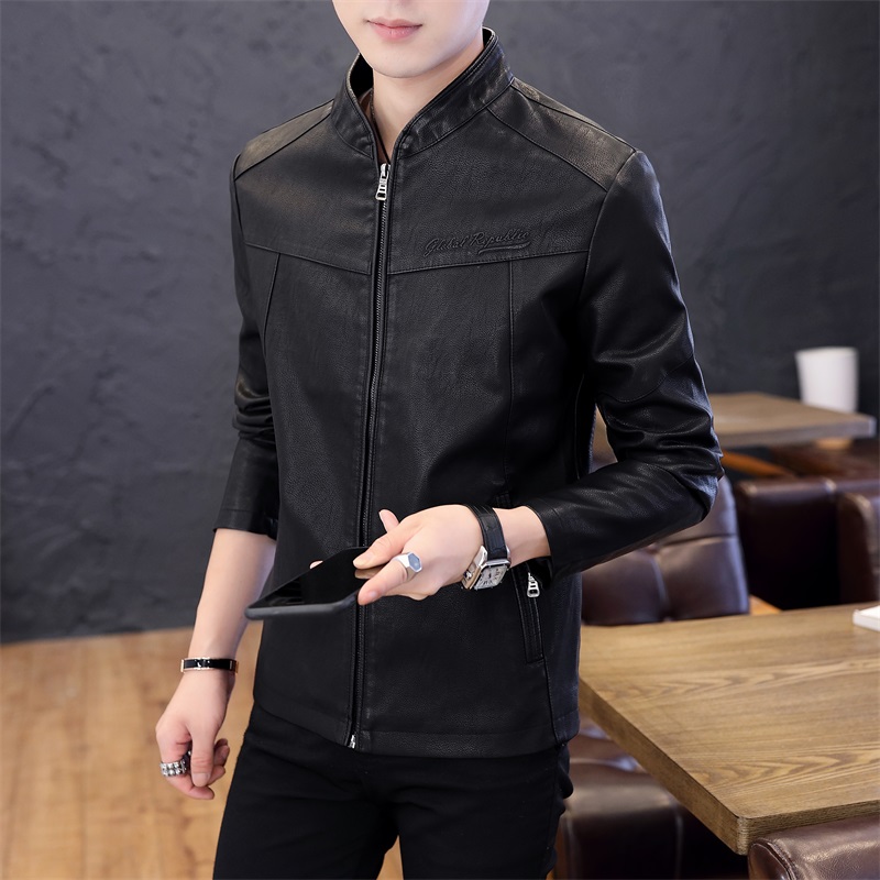 국경 간 봄 가을 오토바이 재킷 청소년 남성 스탠드 칼라 pu 재킷 캐주얼 스탠드 칼라 가죽 재킷 방풍 보온 재킷