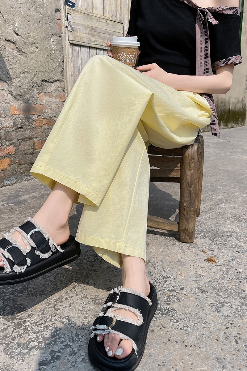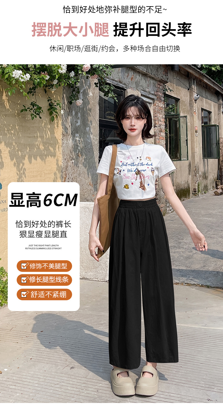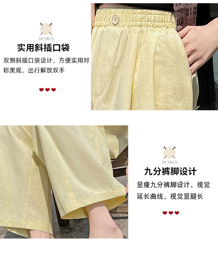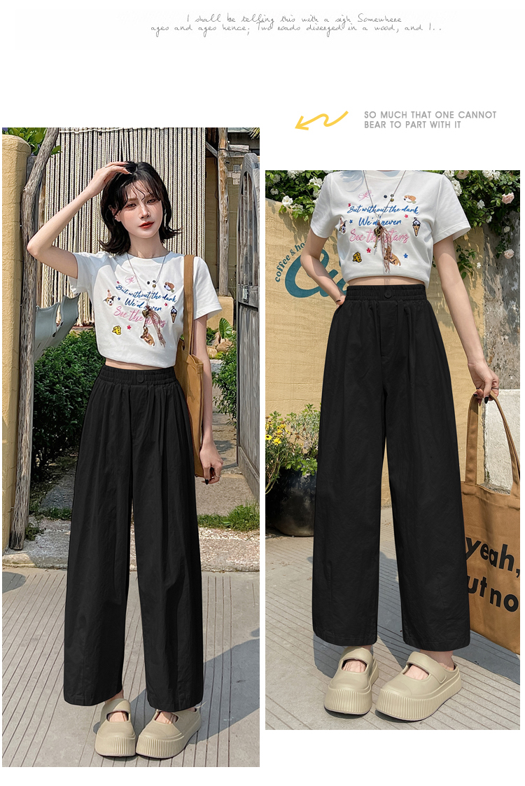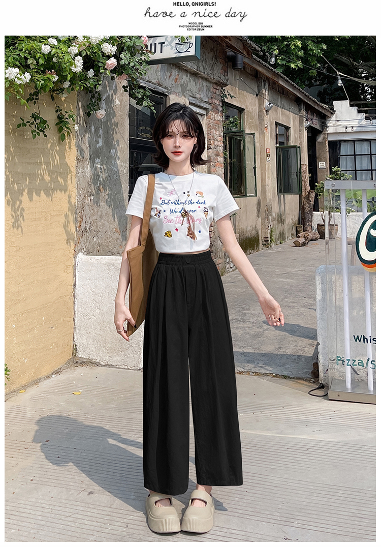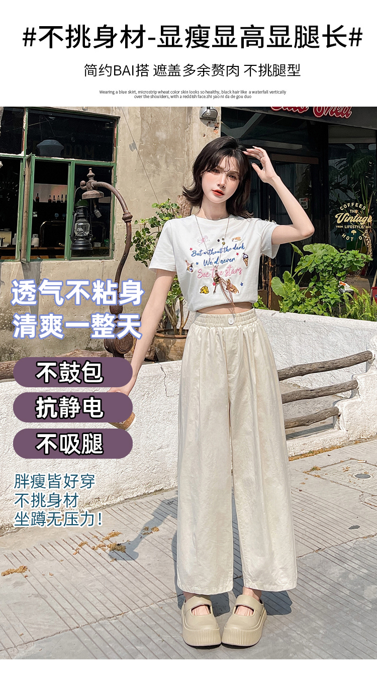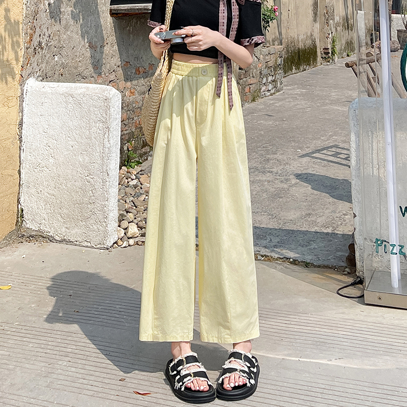 실사 여름 새로운 워시 물 면 밴딩 하이웨이스트 슬림해 보이는 루즈핏 캐주얼 스트레이트 도루 센스 와이드 레그 팬츠 9부 바지 여성