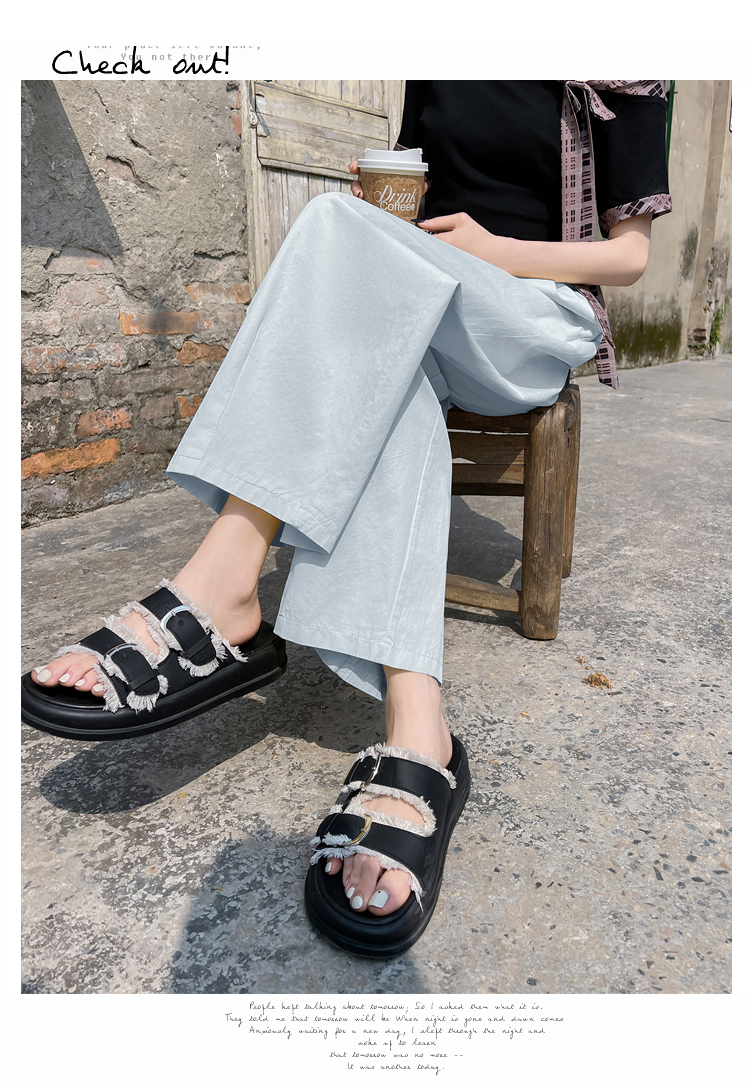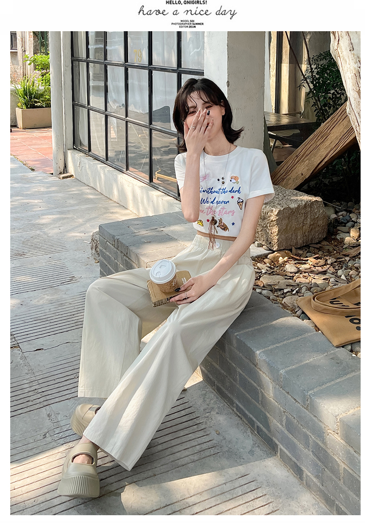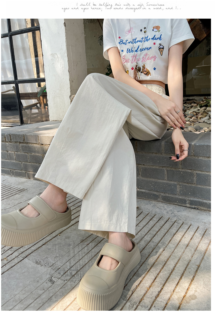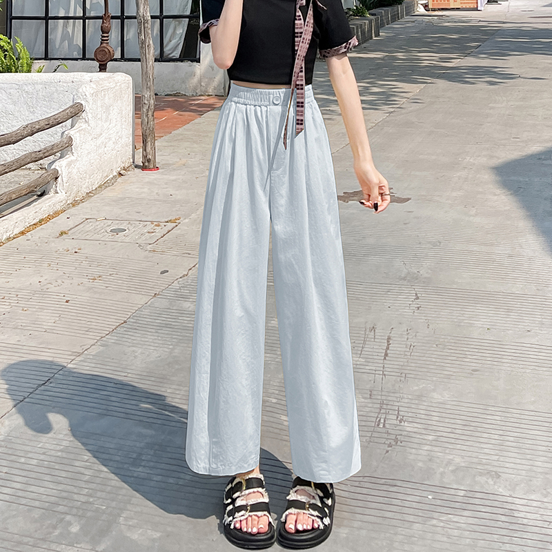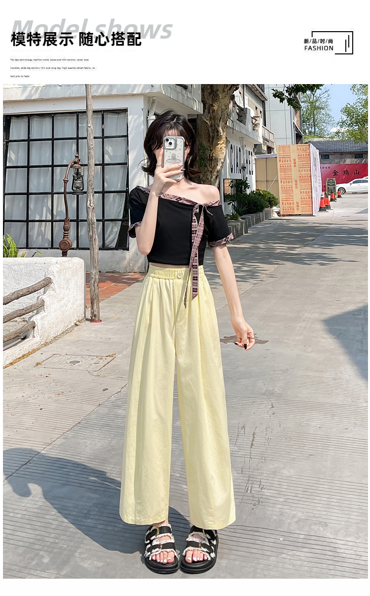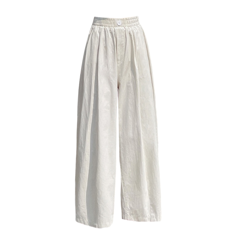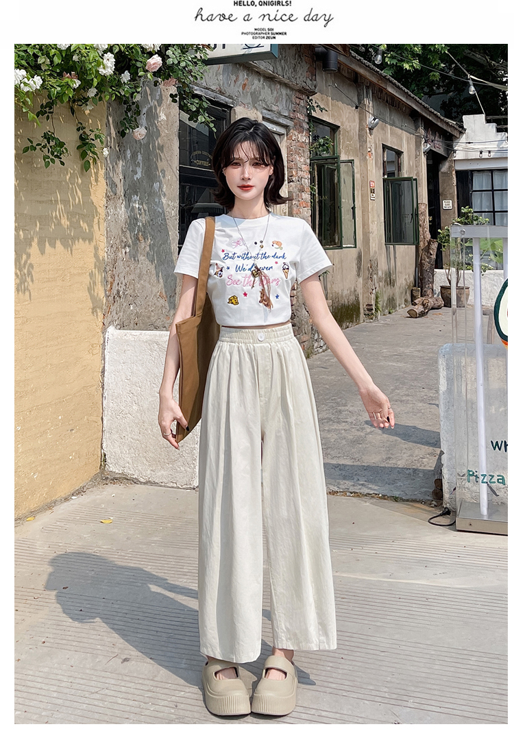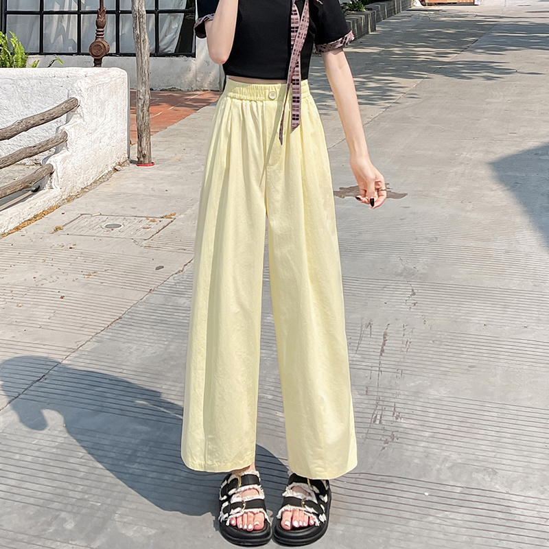 실사 여름 새로운 워시 물 면 밴딩 하이웨이스트 슬림해 보이는 루즈핏 캐주얼 스트레이트 도루 센스 와이드 레그 팬츠 9부 바지 여성