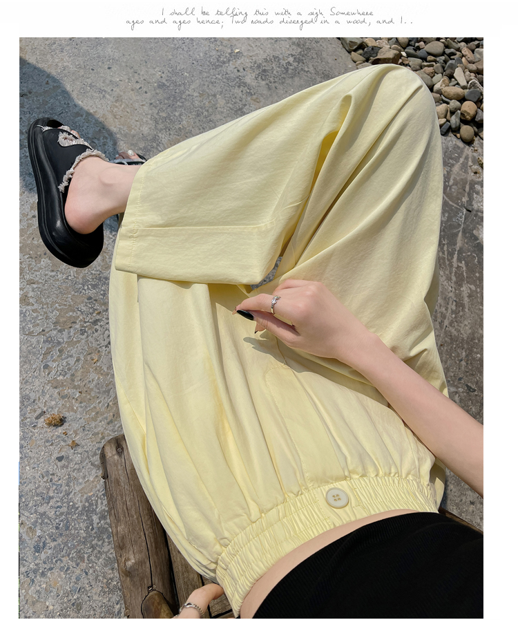 실사 여름 새로운 얇은 스타일 워시 물 면 풍선 바지 할란 스트레이트 속도 건조한 하이웨이스트 작은 키 캐주얼 바지 여성