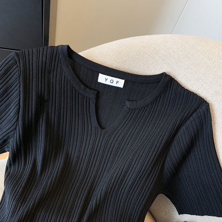 실사 대 물품 2026 여름 새로운 디자인 센스 라운드 넥 반팔 몸매 가꾸기 티셔츠 얇은 스타일 얼음 실크 니트 스웨터 여성
