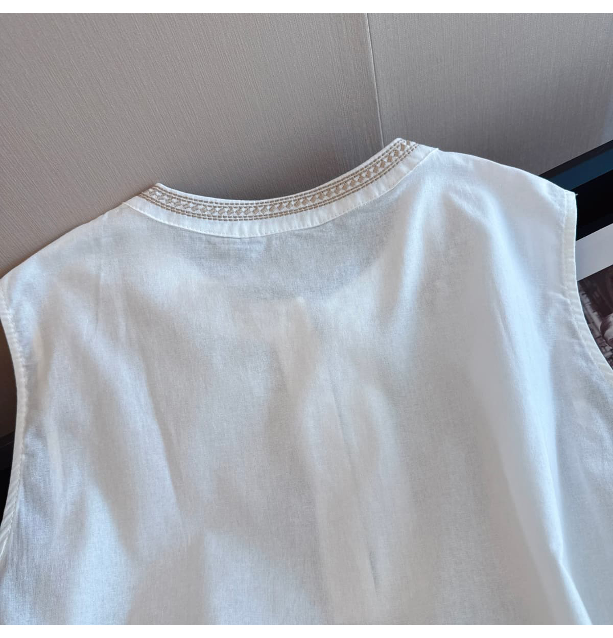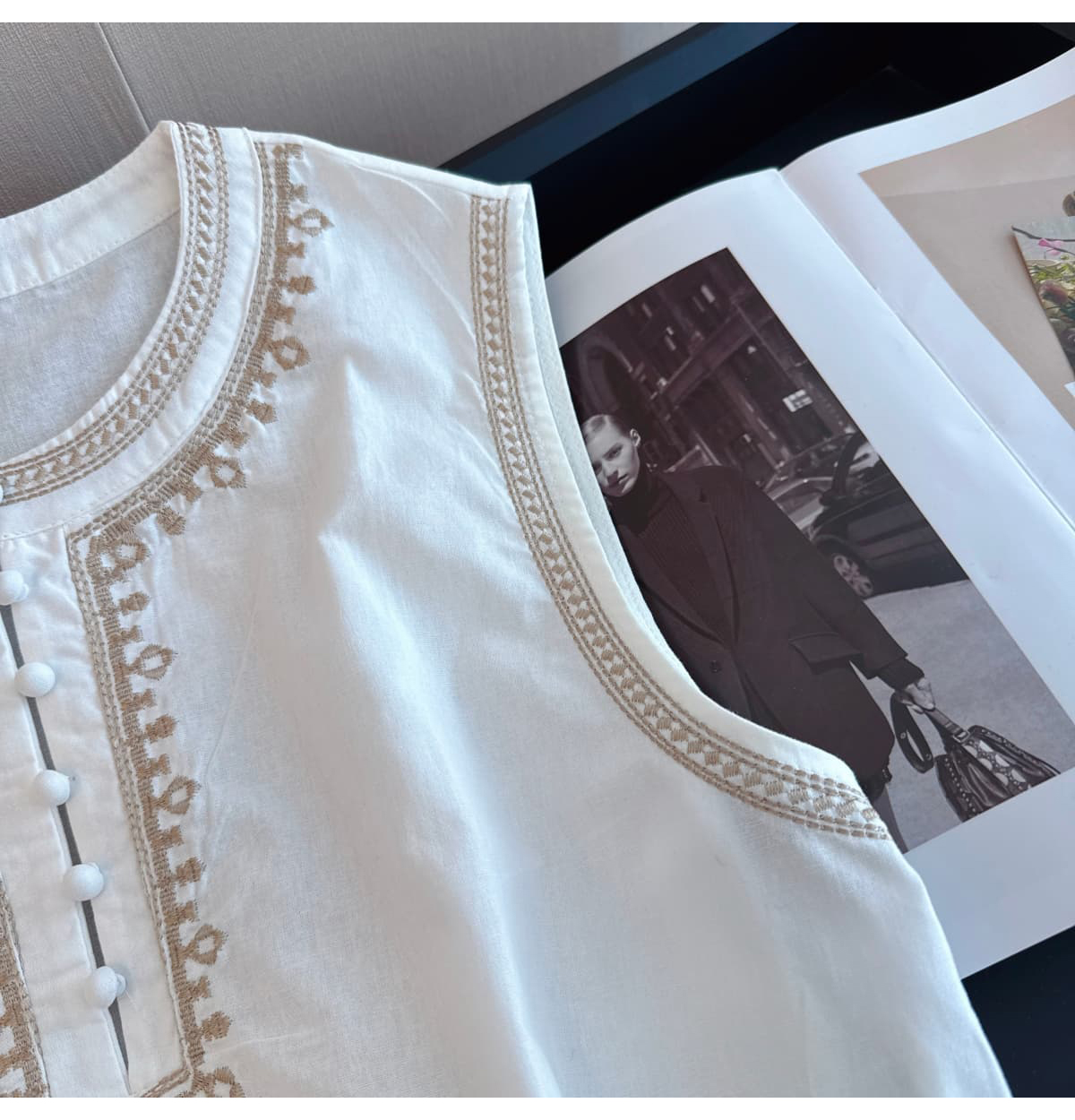 실사 오래된 돈 바람 자수 아마 조끼 여성 셔츠 외출용 프랑스식 작은 대중 맨위 얇고 가벼운 다용도 민소매 작은 셔츠