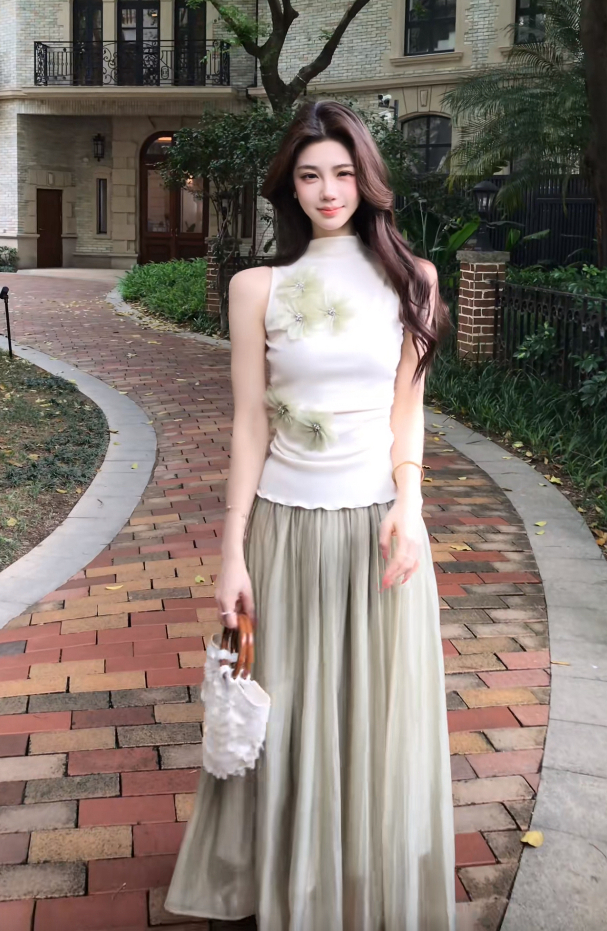 고유 한 아름다운 자이언트 잘 생긴 한 부서 착용 가져 가라. 전체 집합 ootd 슈퍼 화재 와이드 팬츠 세트 여성 여름 2026 새로운