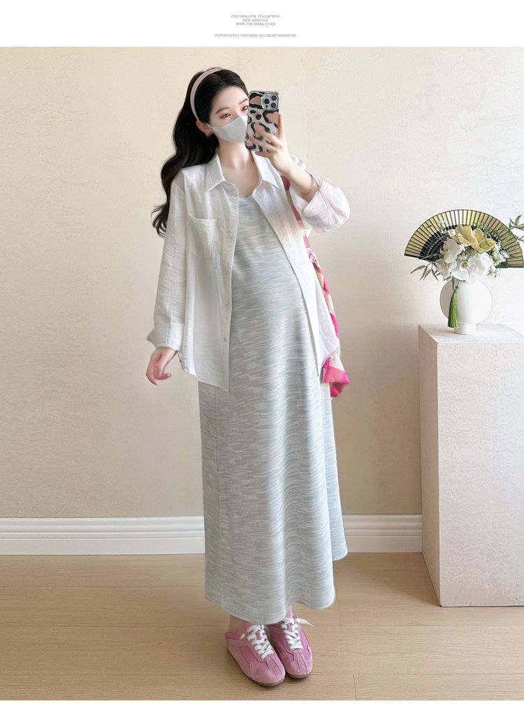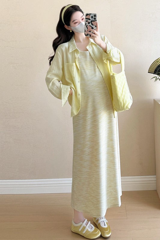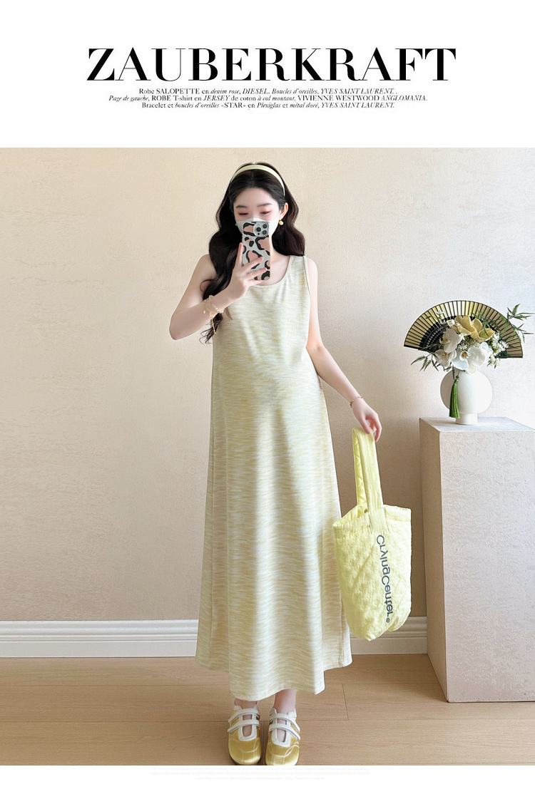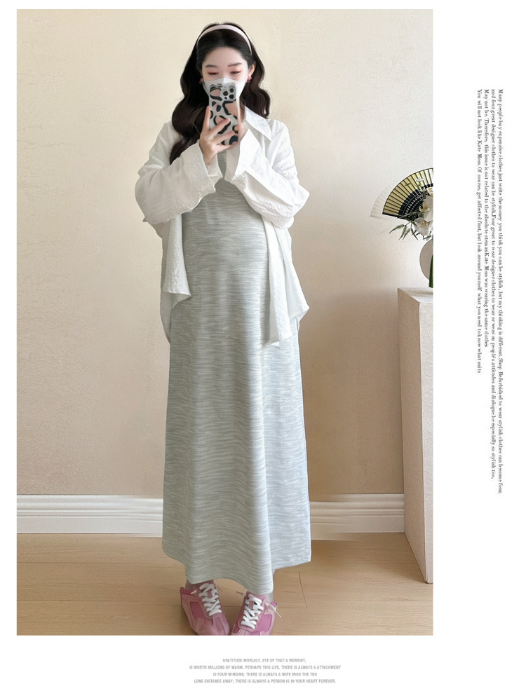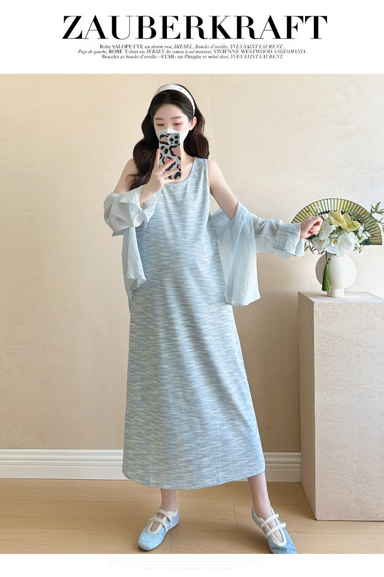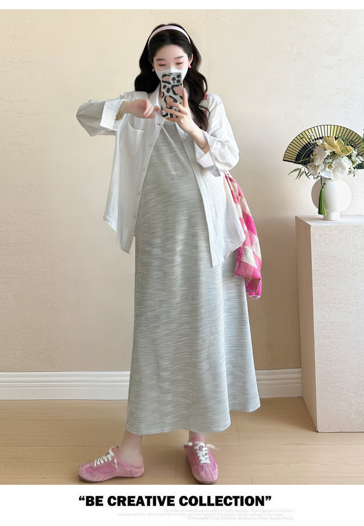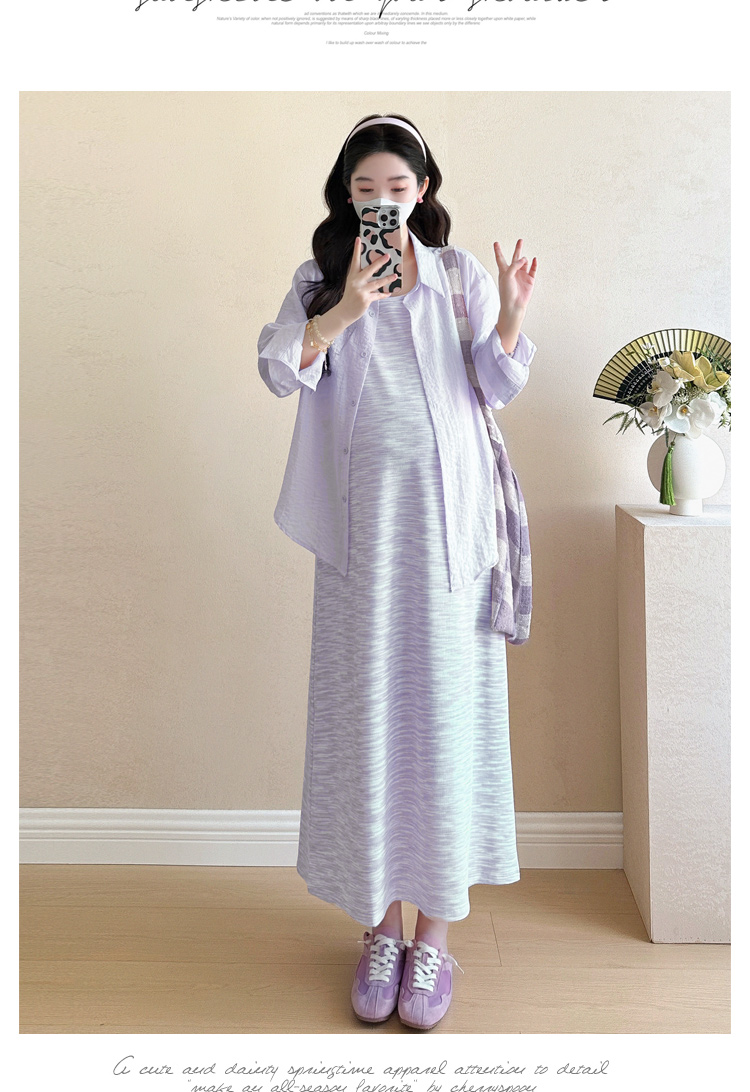 지금 실사 2026 임산부 여름 스트라이프 조끼 스커트 중간 소매 자외선 차단 셔츠 세트 슬림해 보이는 루즈핏 감기