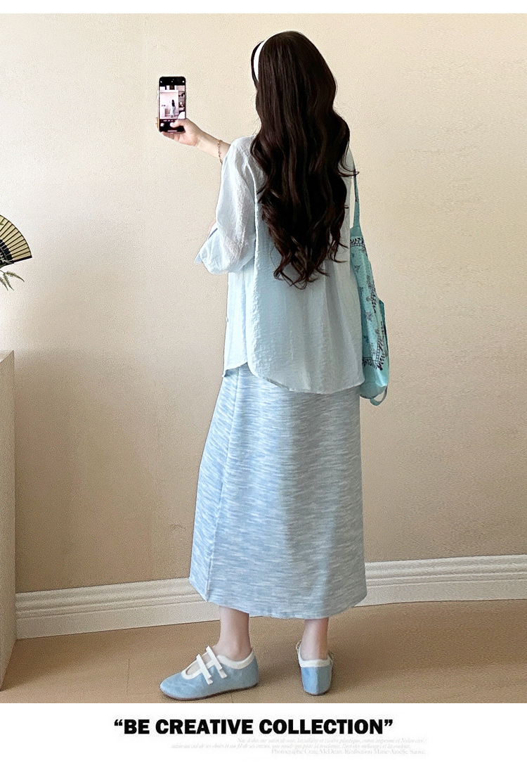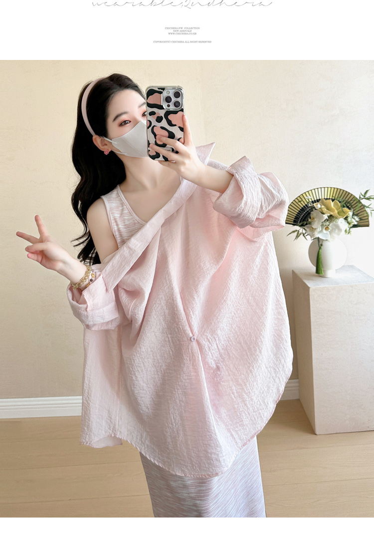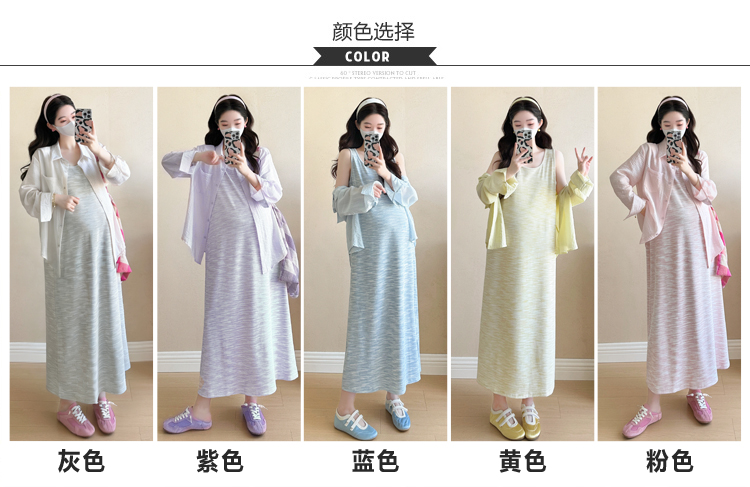 지금 지금 실사 2026 임산부 여름 홀치기 염색 색상 조끼 스커트 자외선 차단 셔츠 세트 슬림해 보이는 루즈핏 감기