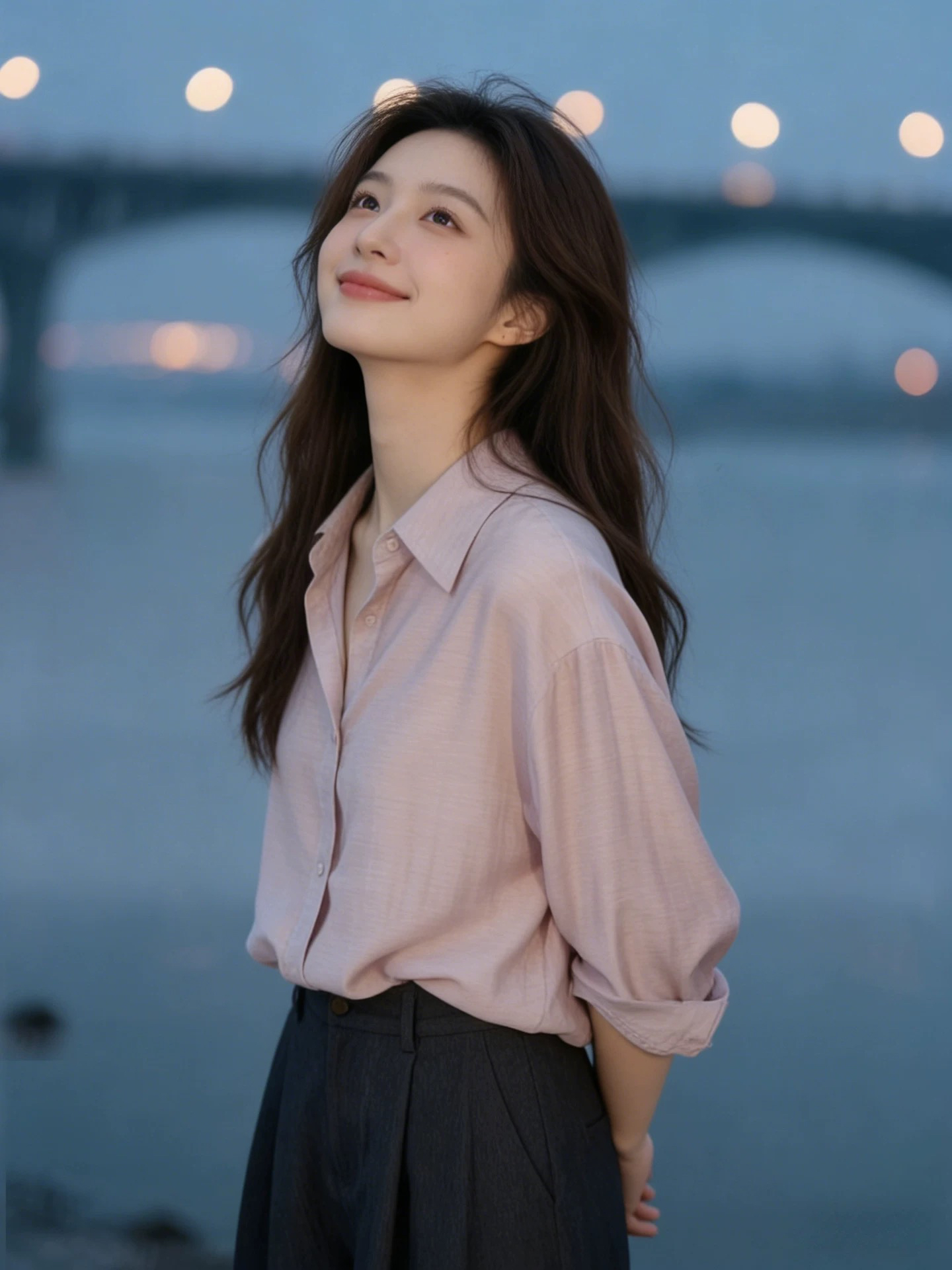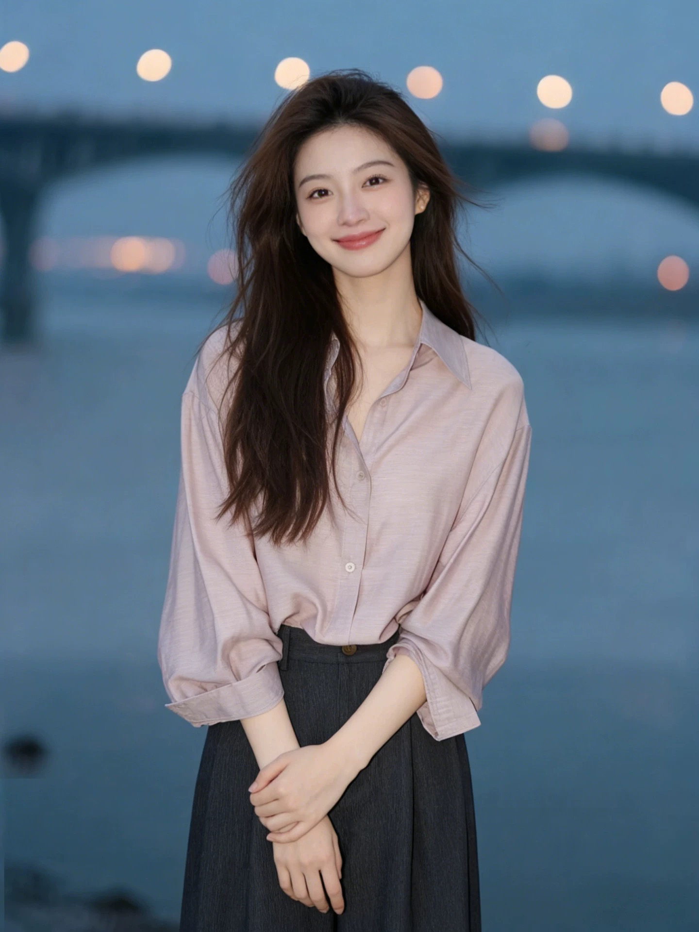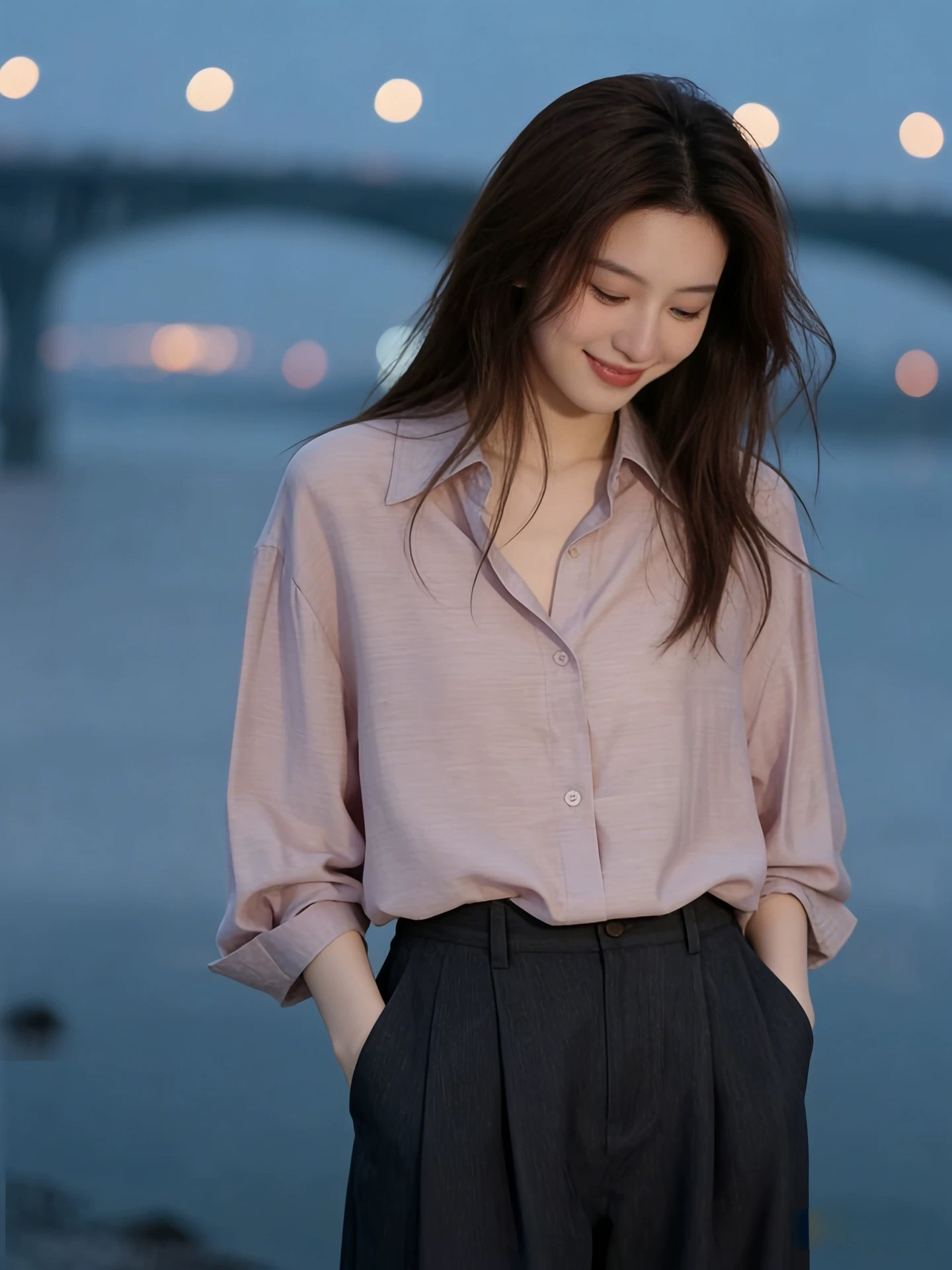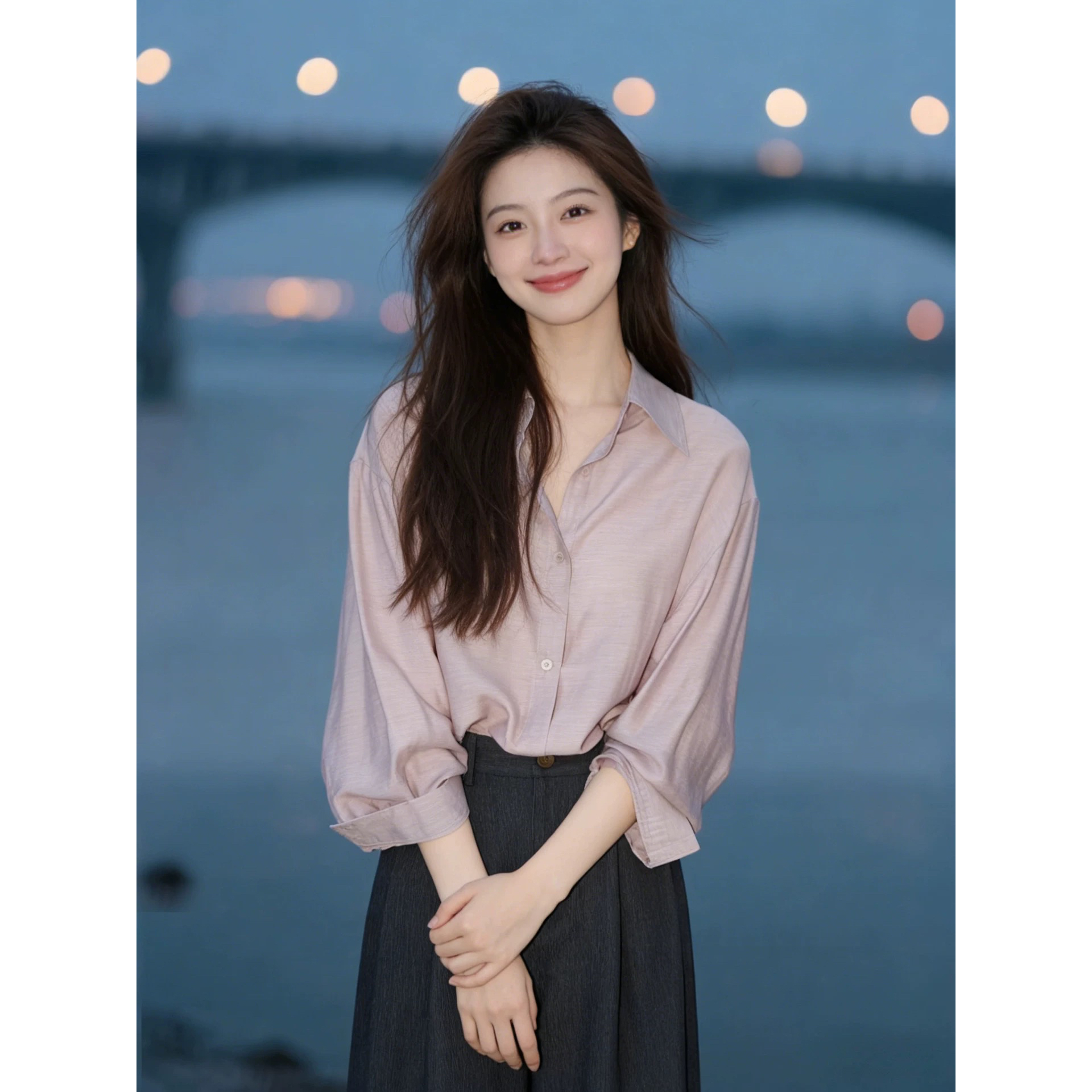 프랑스식 핑크색 레트로 폴로 칼라 단추 품격 부드러운 여성 셔츠 느긋한 루즈핏 슬림해 보이는 다용도 출퇴근 맨위