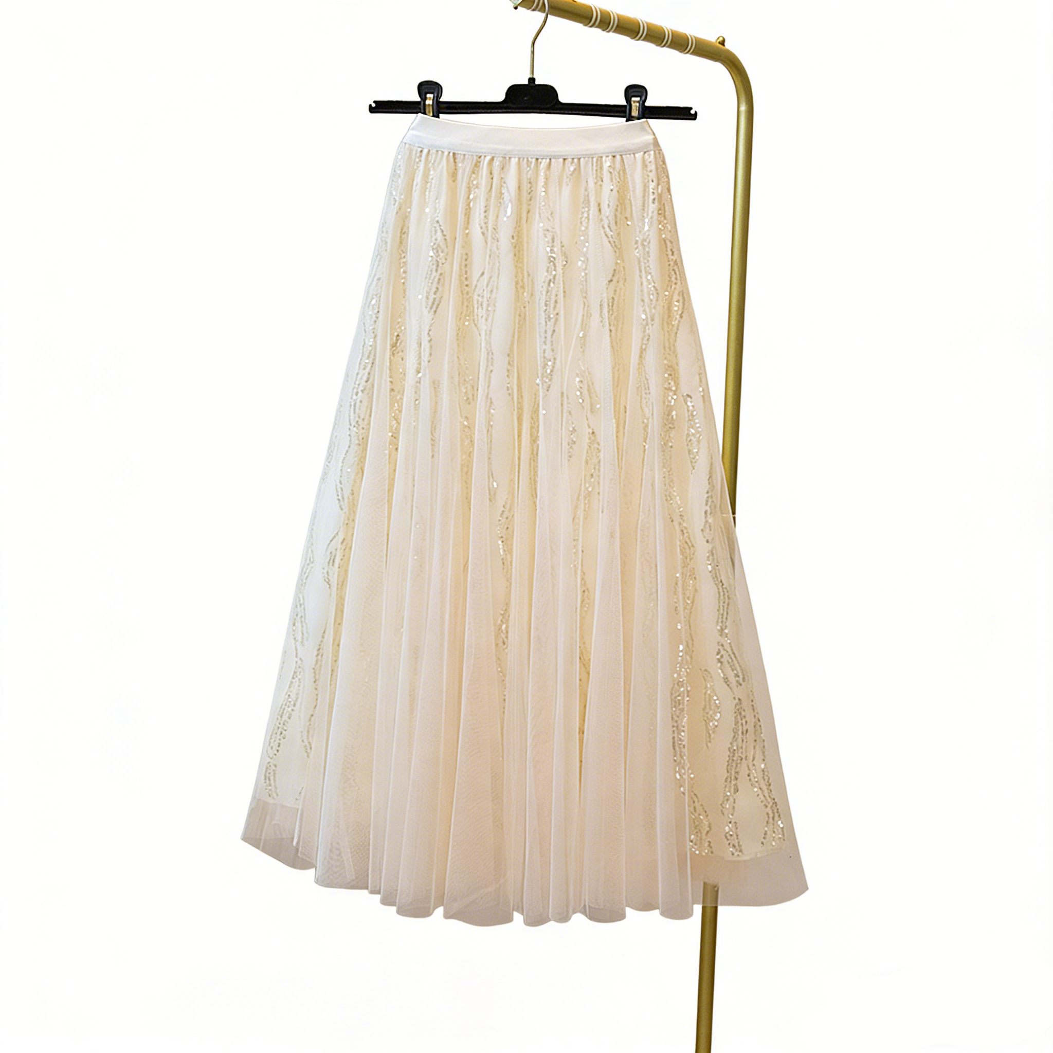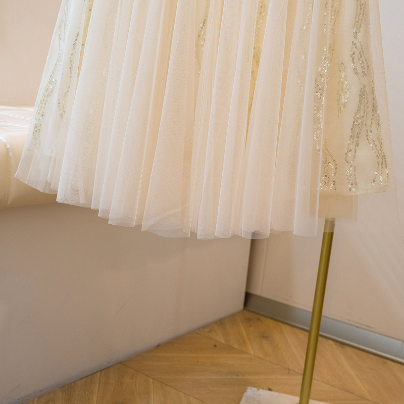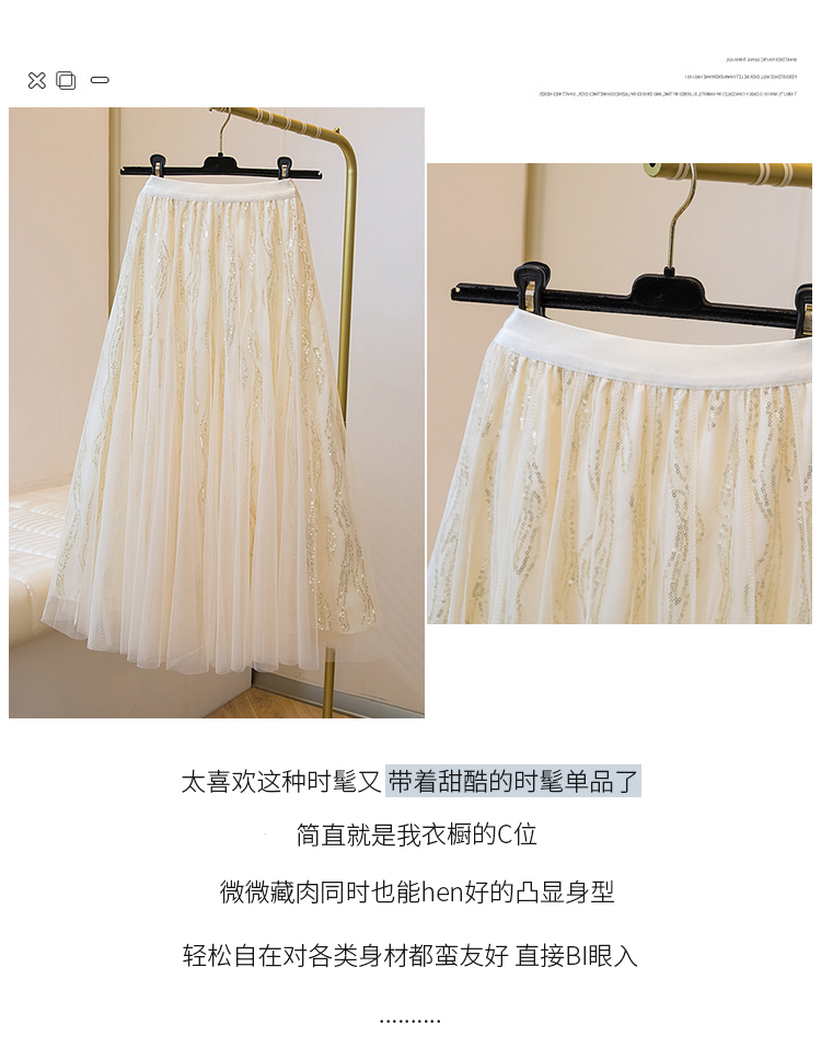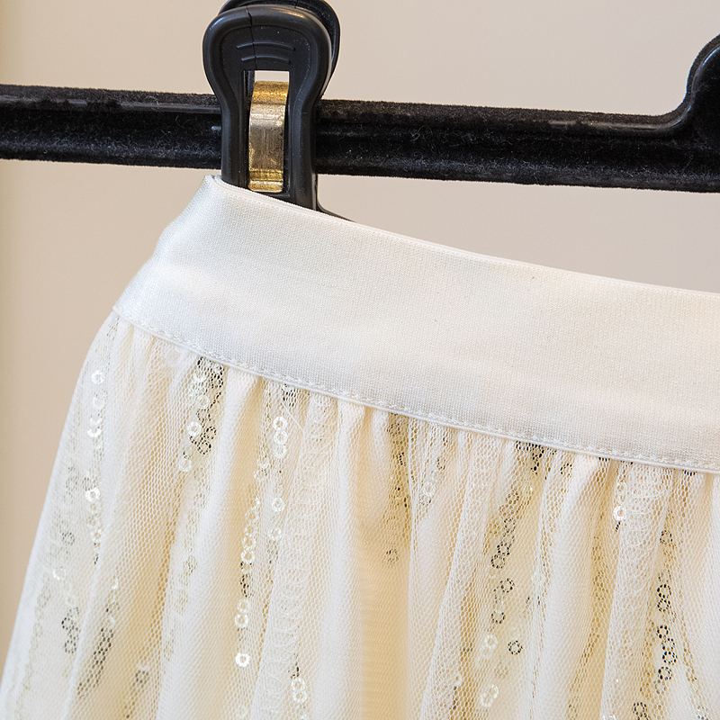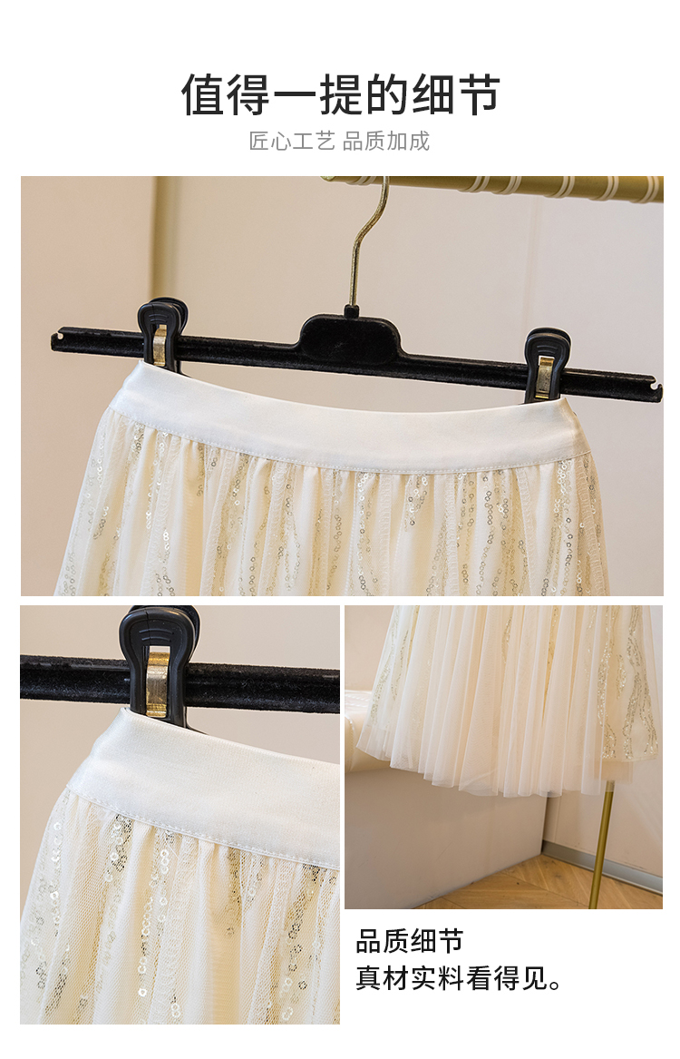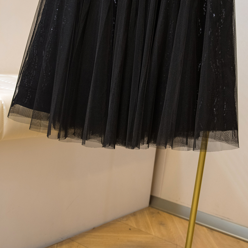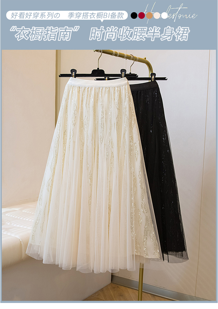 실사 여름 새로운 스팽글 망사 롱 코트 반신 스커트 자수 무거운 작업 빅 사이즈 반신 스커트