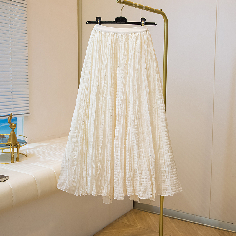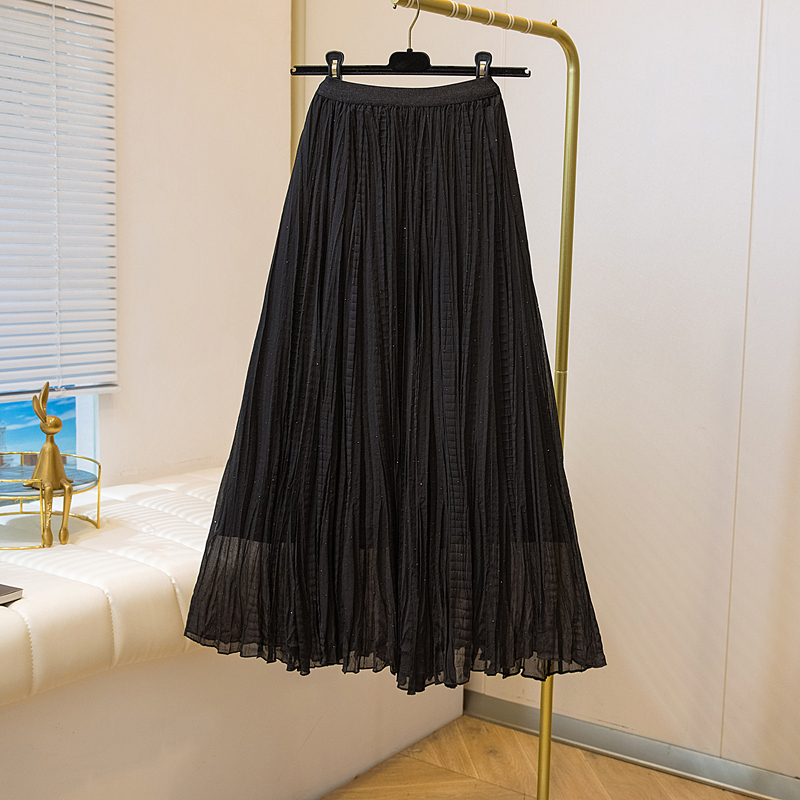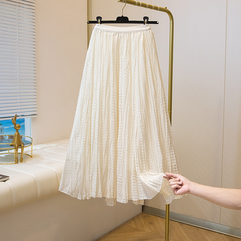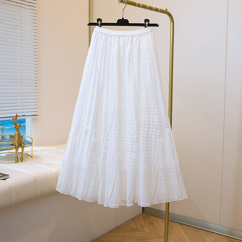 실사 여름 새로운 스팽글 망사 롱 코트 반신 스커트 자수 무거운 작업 빅 사이즈 반신 스커트