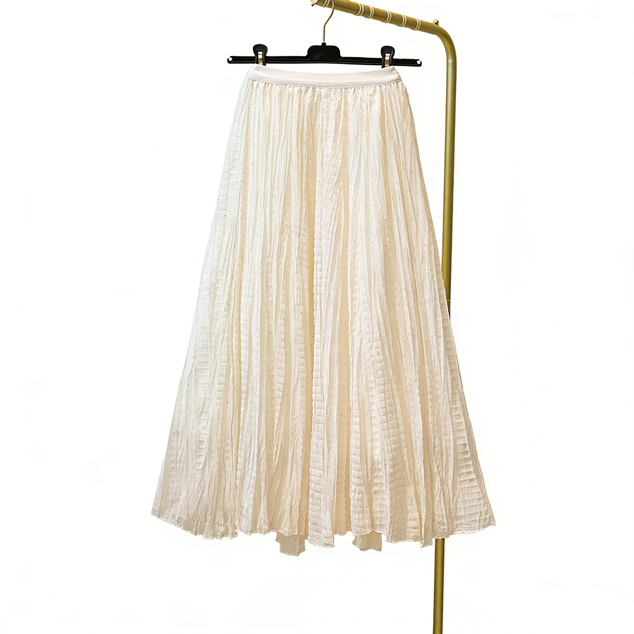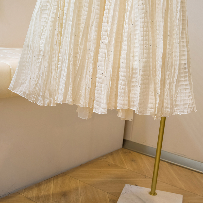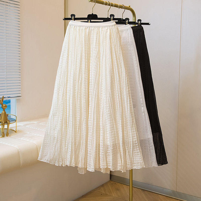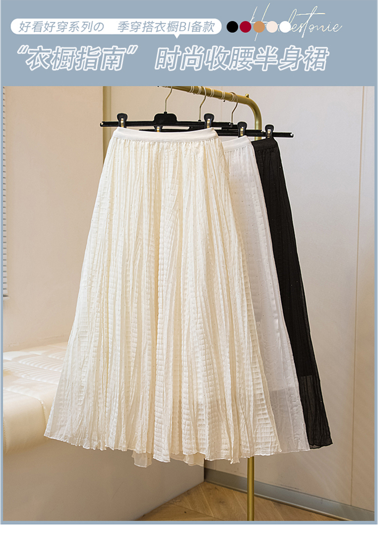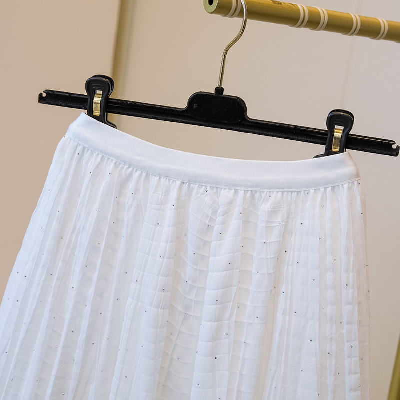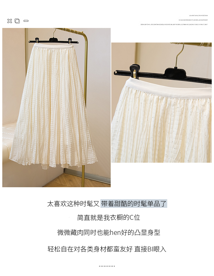 실사 빅 사이즈 여성 의류 여름 새로운 연령 감소 루즈핏 슬림해 보이는 도루 센스 망사 플리츠 반신 스커트 양성 및 음성 둘 착용